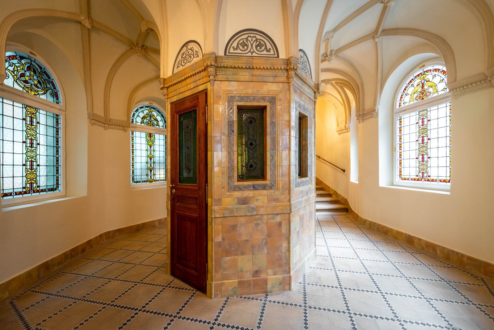 A fentieknek megfelelően a 2015 szeptemberében kezdett kivitelezésben csak a kerámia-helyreállítási munkák 85 000 órát vettek igénybe, és nagyságrendileg 100 szakértő bevonásával folytak. Közel 10 000 kerámiaelemmel pótolták a tönkrement darabokat. Nemcsak a historizáló és eklektikus építészeti motívumok rekonstruálása jelentett kihívást, hanem az esetenként speciális ismereteket igénylő, különleges anyagok is.