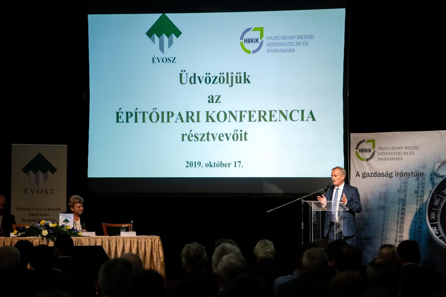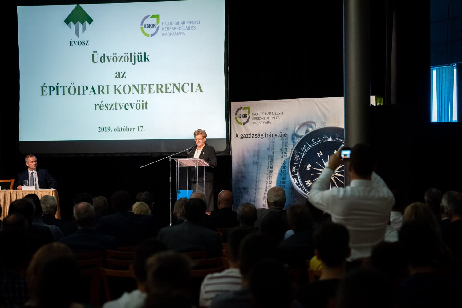 Tóth Istvánné, Hajdú-Bihar Megyei Kereskedelmi Iparkamara alelnöke beszédében az ágazat szerkezetére utalva emlékeztetett, mindössze 23 cég van az országban, ami nagyvállalatnak számít. Ugyanakkor a cégek 97 százaléka mikro, kis- és középvállalkozás. Ráadásul 2015 óta az építési vállalkozók száma 89 ezer főről 101 ezerre duzzadt. „Ez a folyamat szembe megy azzal az elvárással, hogy a versenyképes középvállalkozások alapozzák meg az ágazat termelékenységét” – hangsúlyozta. Hozzátette, a helyzetet az átalanyadózás negatívan befolyásolja, miután a vállalkozókat abban teszi érdekeltté, hogy egyszerre több céget működtessenek.