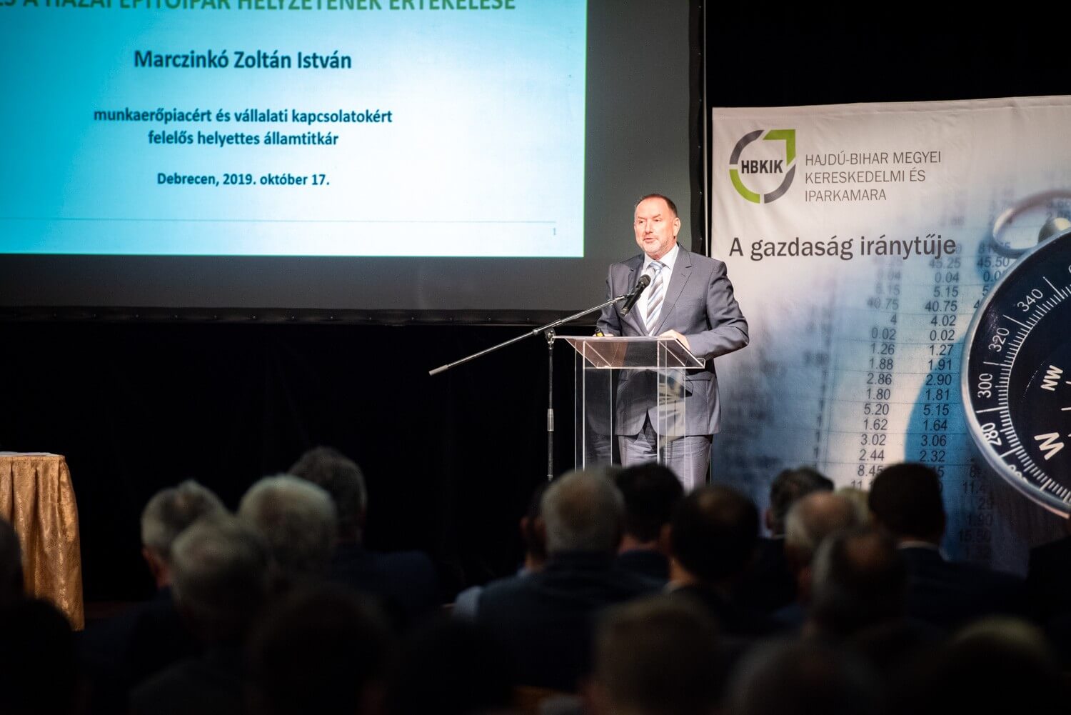 Záró előadóként az ITM munkaerőpiacért és vállalati kapcsolatokért felelős helyettes államtitkára, Marczinkó Zoltán a versenyképesség fenntarthatóságát munkaerőpiaci szempontból elemezte. Kiemelte, az építőipar növekedése idén is szép dinamikát mutat, ezzel együtt a többi gazdasági ágazat is jelentős növekedésben van. "A kormány célja az, hogy ezt a tempót a következő években is megőrizze, és a jó eredményekre alapozva tovább tudja csökkenteni az adóterheket."