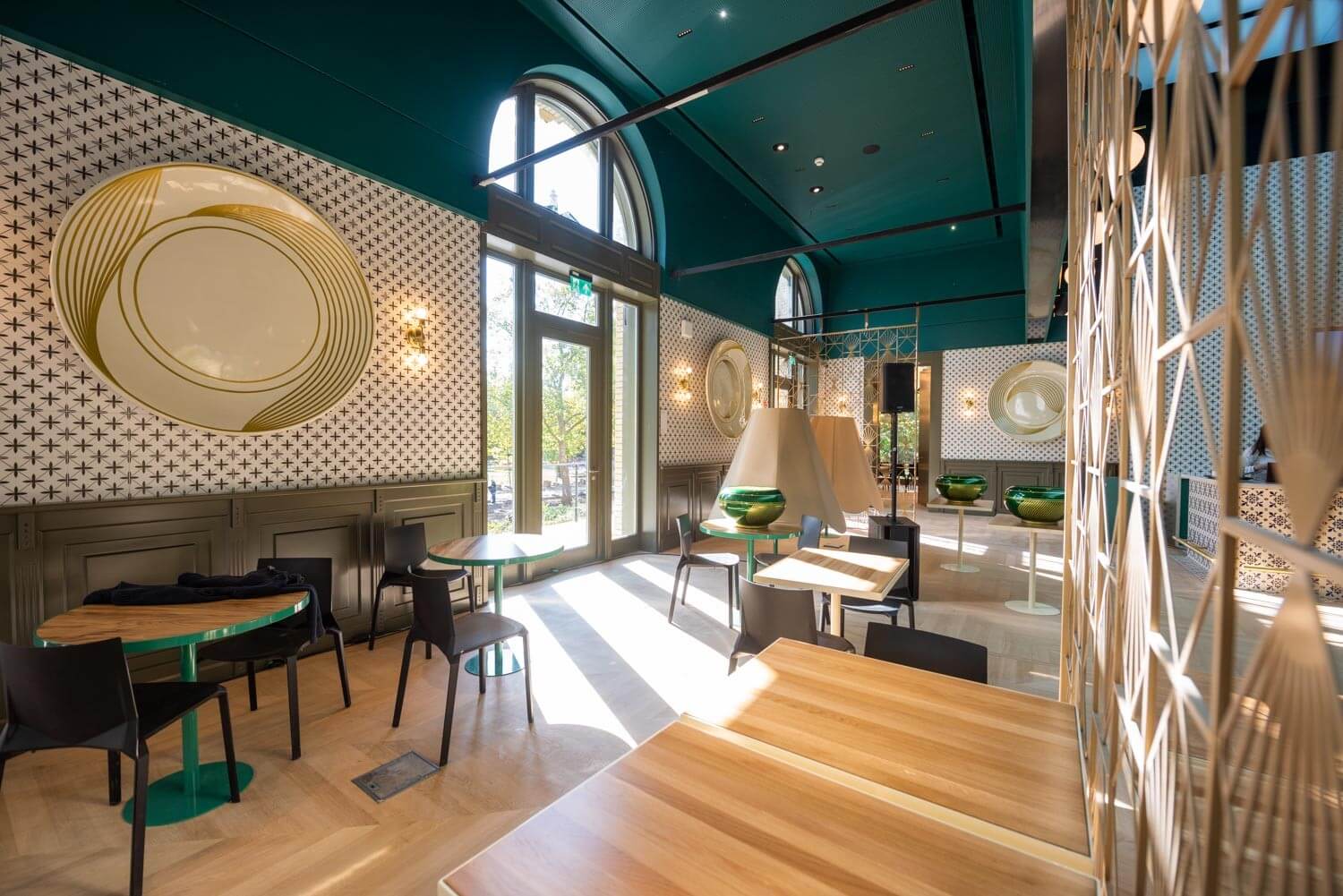 A homlokzaton több tucat restaurátor munkája nyomán újultak meg a gazdag Zsolnay díszítések - ezek ihlették a kávéház dekorációját -, a belsőépítészeti kialakítás során pedig elbontották az utólagos toldásokat, így visszaállítva az eredeti térszerkezetet. Elkészült az új tetőzet is, mely az épület két szárnya fölött hatalmas üvegfelületeket kapott, így természetes fény is bevilágítja a belső tereket. Az épület főbejárata visszakerült az eredeti, Hermina út felé néző oldalra.