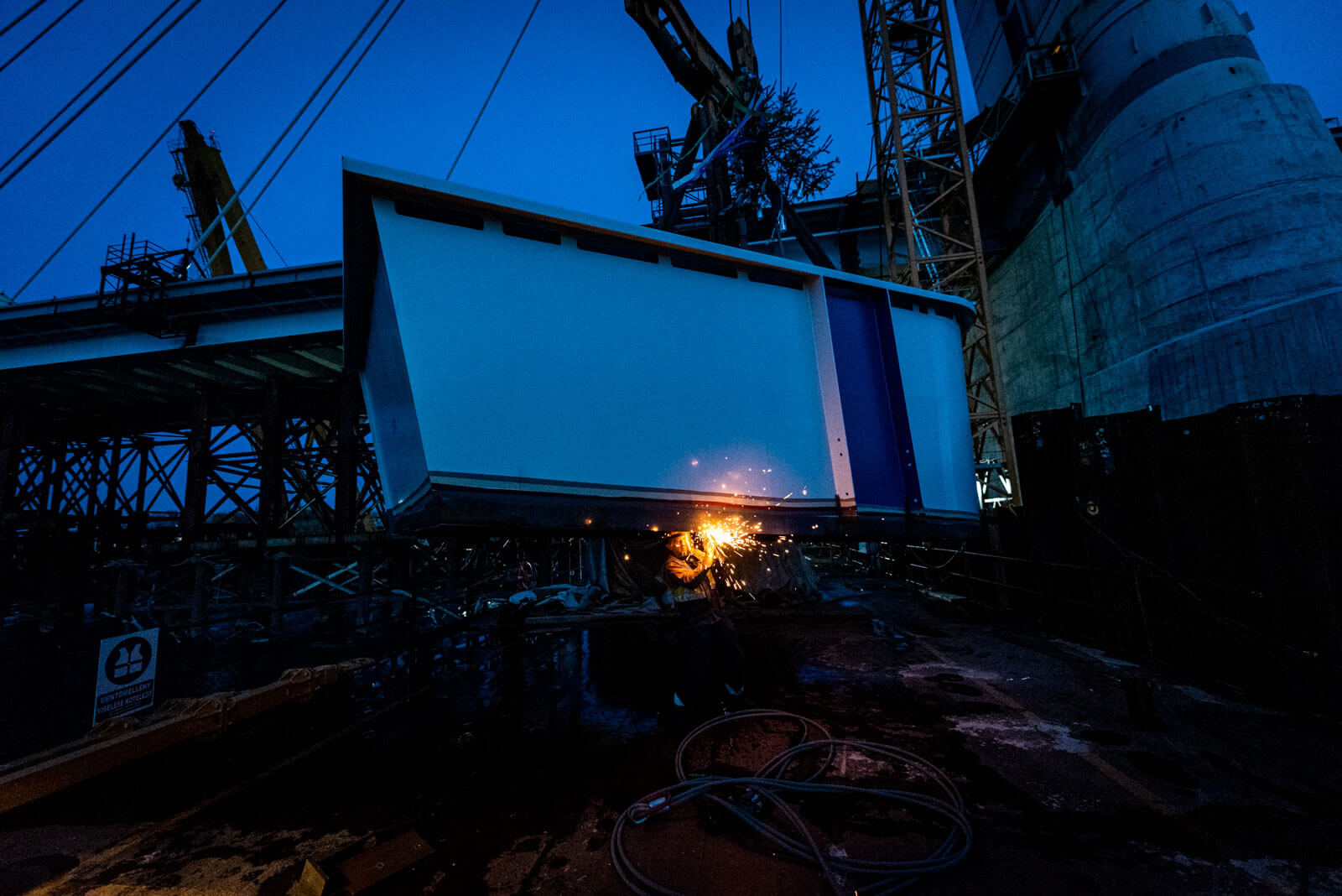 Az átkelő két vége már majdnem összeért Hídépítő, illetve a Mészáros és Mészáros fővállalkozásával, valamint a Hódút alvállalkozói közreműködésével zajló befektetésbe.