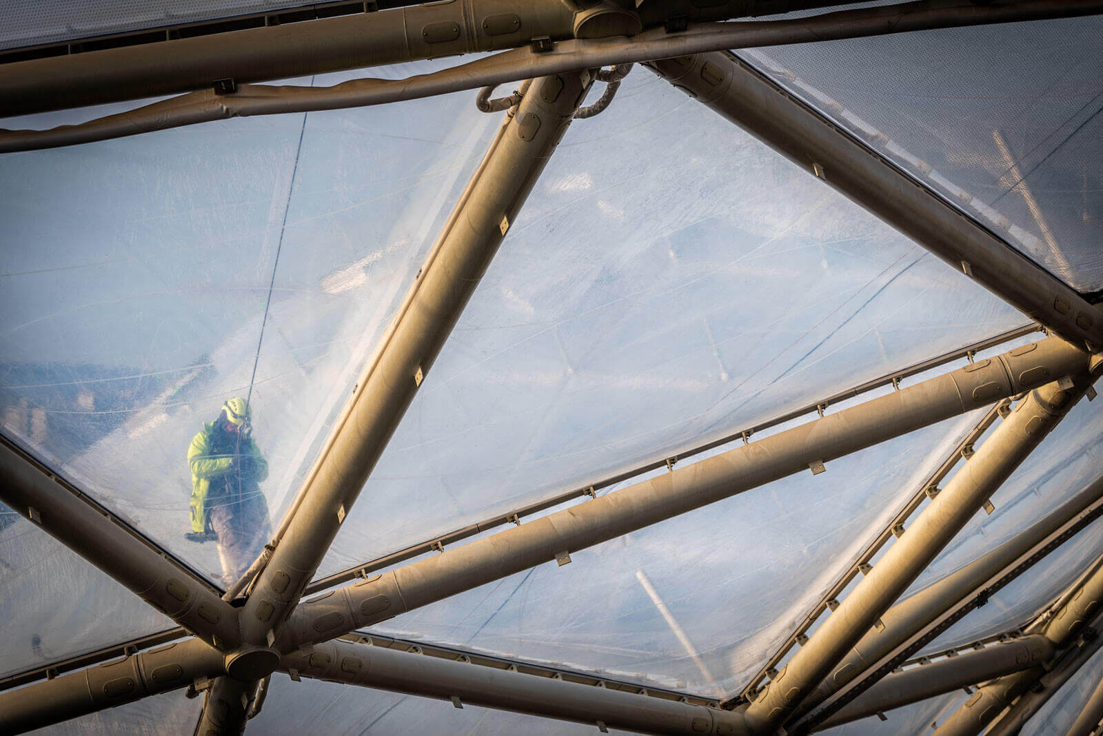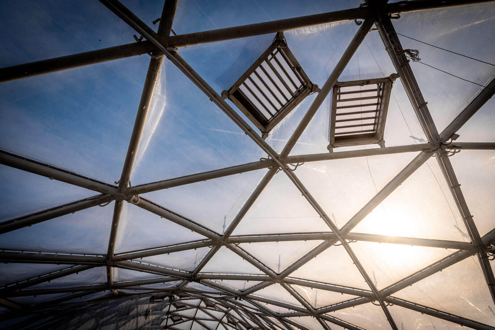 A felület egyedi térlefedést kapott egy Magyarországon eddig ritkán alkalmazott speciális, háromrétegű, teflonszerű fólia formájában.