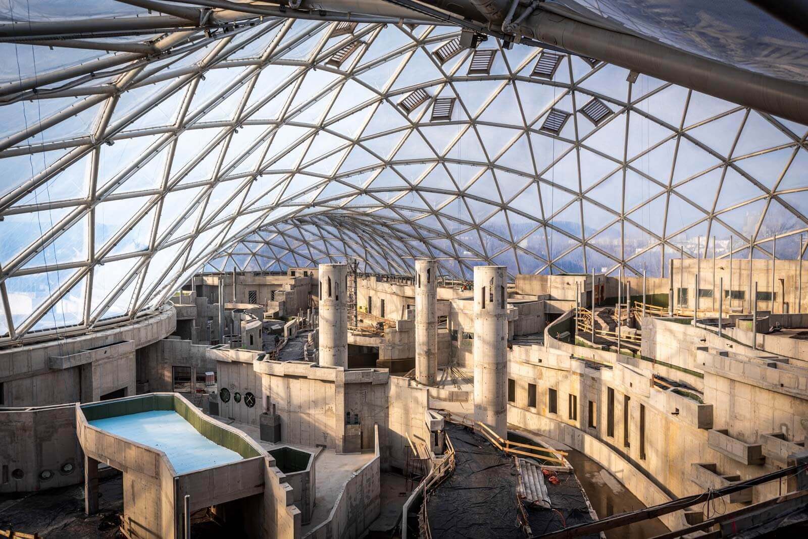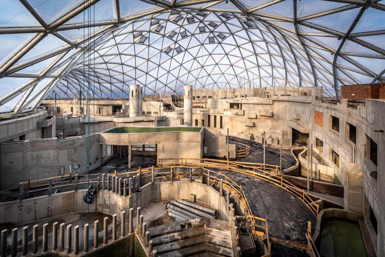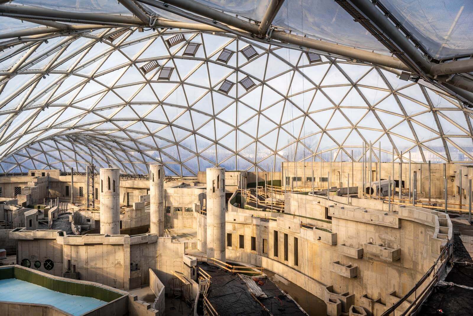 Ezt követően indulhattak az épület belső terében az állattartó terek, köztük az édesvízi és tengeri akváriumi medencék kialakítása, valamint a környező szabadtéri kifutók kiépítésével kapcsolatos munkálatok. A biodóm két fő részre lesz tagolható: egy akváriumi részre, illetve egy ősvadon részre.