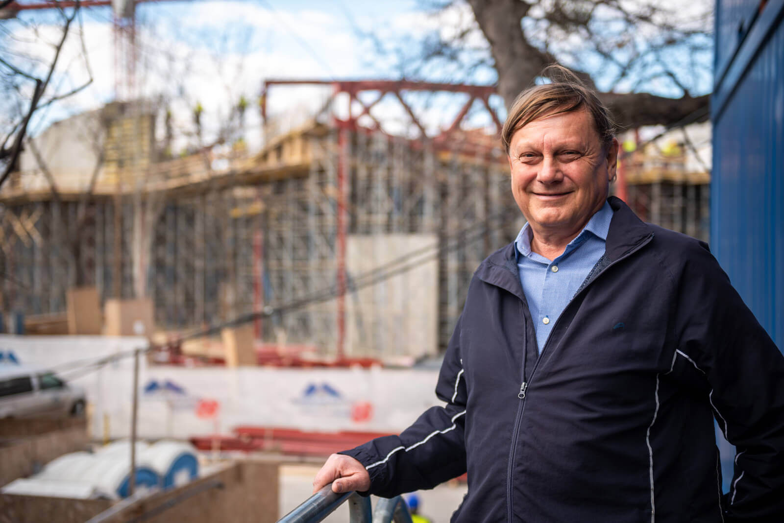 A közel félévszázados emlékek nem halványultak el benne, tisztán emlékszik az első projektjére. „A Volán Régi fóti úti telephelyén kiviteleztünk irodaházat, töltőállomást és javítócsarnokokat. A mi cégünket akkor még 21. számú építőipari vállalatnak hívták” – teszi hozzá a jelenleg a Zene Háza építését irányító szakember, akivel a városligeti projekt konténerirodájában beszélgetünk.