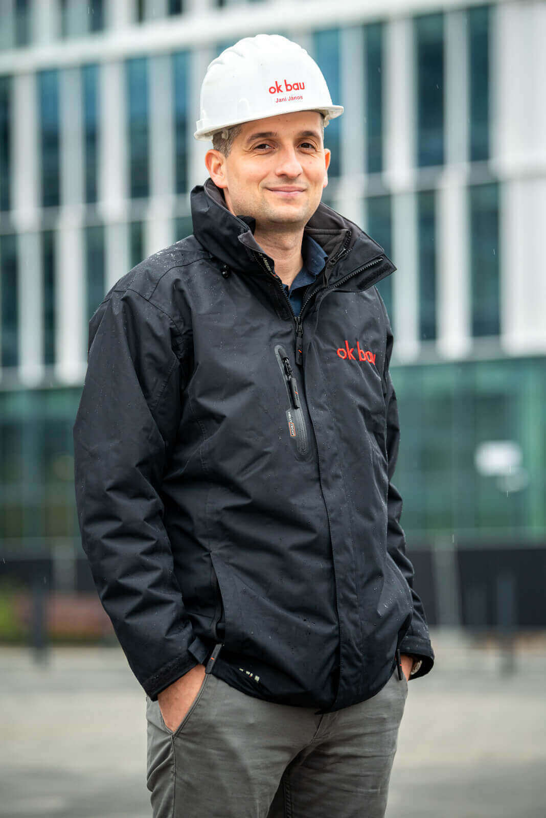 Jani János 2013-ban kivitelezés előkészítő szerepkörben kezdte az okbaunál. „Ez alapvetően irodai tevékenység, kiegészítve a helyszíni munkával. Az ártükrök képzése, az anyagkigyűjtések, a szerződéselőkészítés és az összes többi előkészítés a feladata. Az olyan döntésekben, mint az alvállalkozók kiválasztása vagy a nagyértékű beszerzések az előkészítő kolléga támogatást kap.” Hozzáteszi, más cégeknél ezt a munkakört munkahelyi mérnöknek nevezik, de az is előfordul, hogy az építésvezető látja el ezeket a feladatokat. „Nálunk ez a kolléga folyamatosan tanul, tapasztalatot szerez, eközben műszakilag az építésvezető fogja a kezét, a nagyobb pénzügyi döntésekben pedig a projektvezető segíti.”