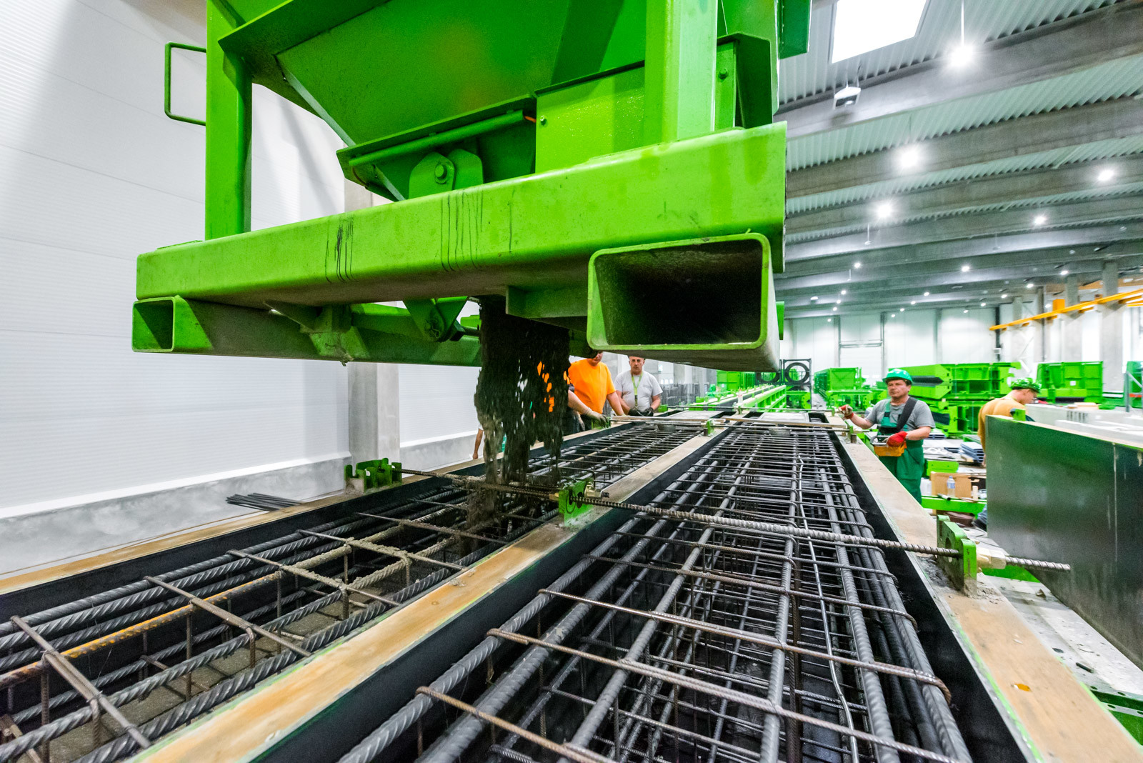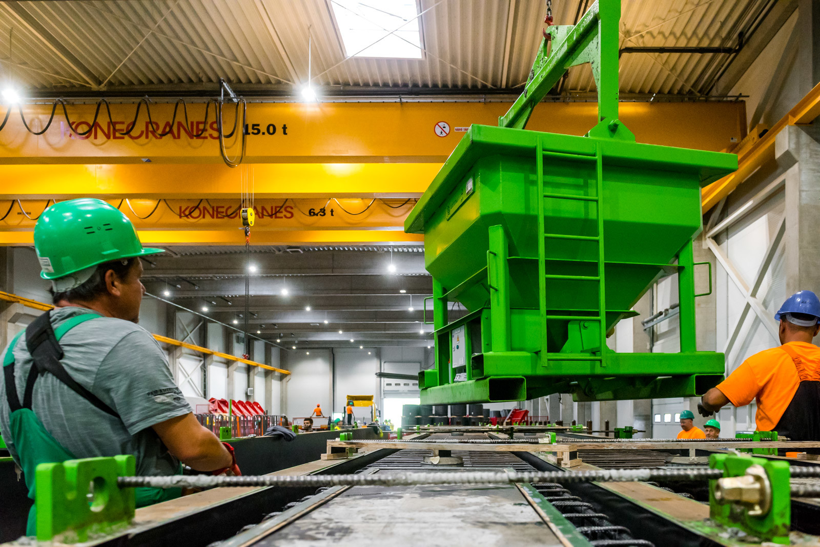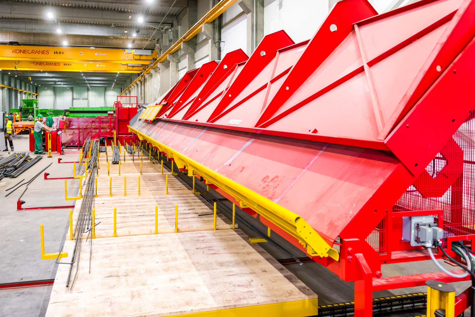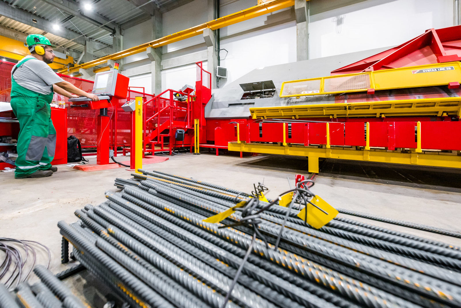Csukás Zoltán fontos elemként jelölte meg, hogy a projektben egy betonacél megmunkáló üzem is megépült. „Három teljesen automata gép áll rendelkezésünkre, melyekkel szintén nagyon speciális formákat tudunk meghajlítani és megmunkálni, például 3D-s, ovális vagy spirál kengyelt. Ezek szintén nem feltétlenül alapeszközök egy előregyártó üzemben.” Az előregyártás egyik kulcspontja a vasszerelés gyorsítása, amihez betonacélháló megmunkáló gépeket szereztek be: egy vágó, illetve egy hajlító gépet. Ezekkel hajlítják és vágják egyedi méretre a vásárolt hálókat.