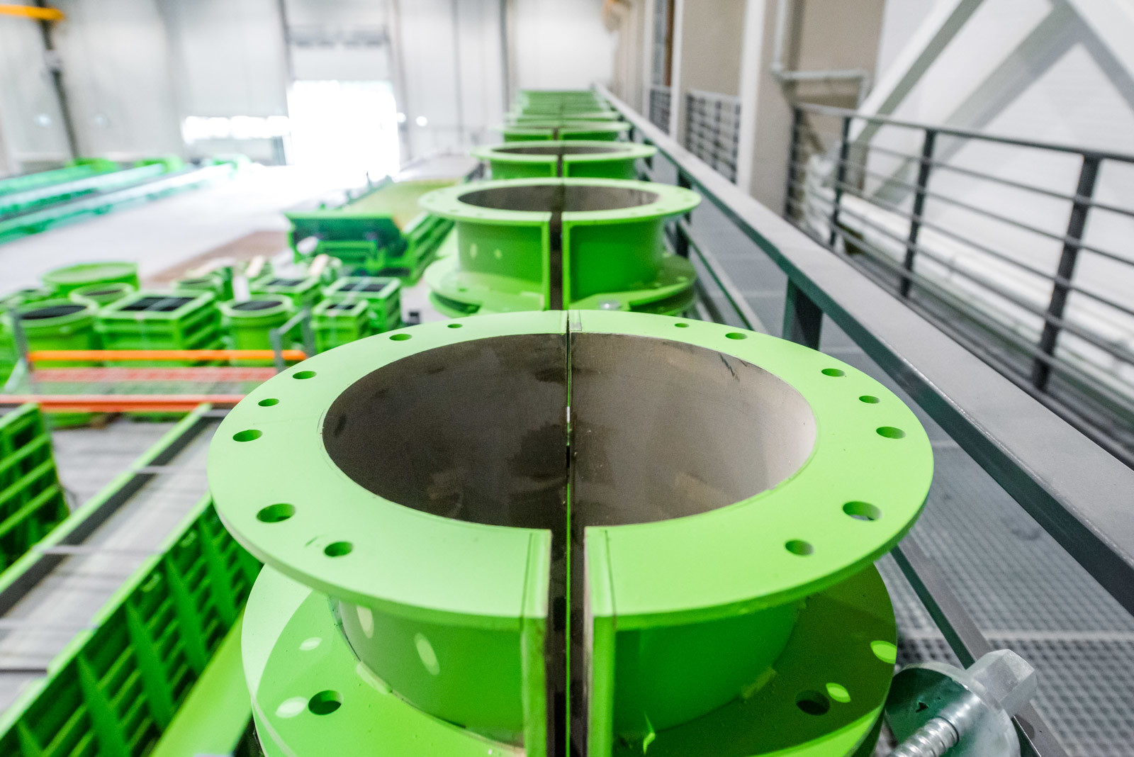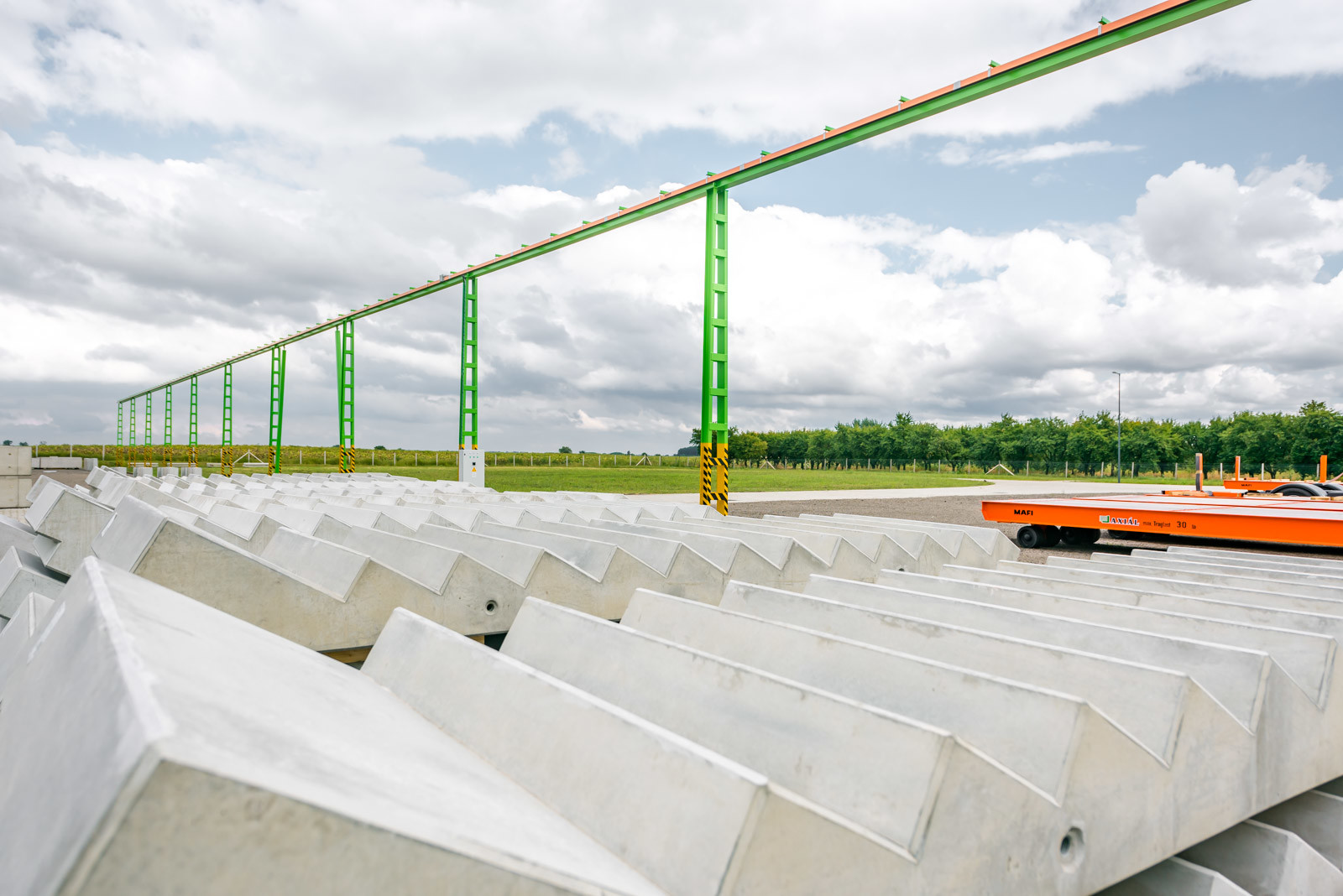 A cég egyik sajátossága, hogy az üzemében viszonylag sok terméket fognak öntömörödő betonból gyártani. „Ez azt is magával hozza, hogy bizonyos termékeket más irányból készítünk: egy lábazati falpanelt, vagy kisebb pillért például nem fektetve, hanem állítva gyártunk le” – árulja el lapunknak a vezető. „Ezáltal már szóba jöhetnek olyan keresztmetszetek, mint a kör keresztmetszet vagy az ovális keresztmetszet.”