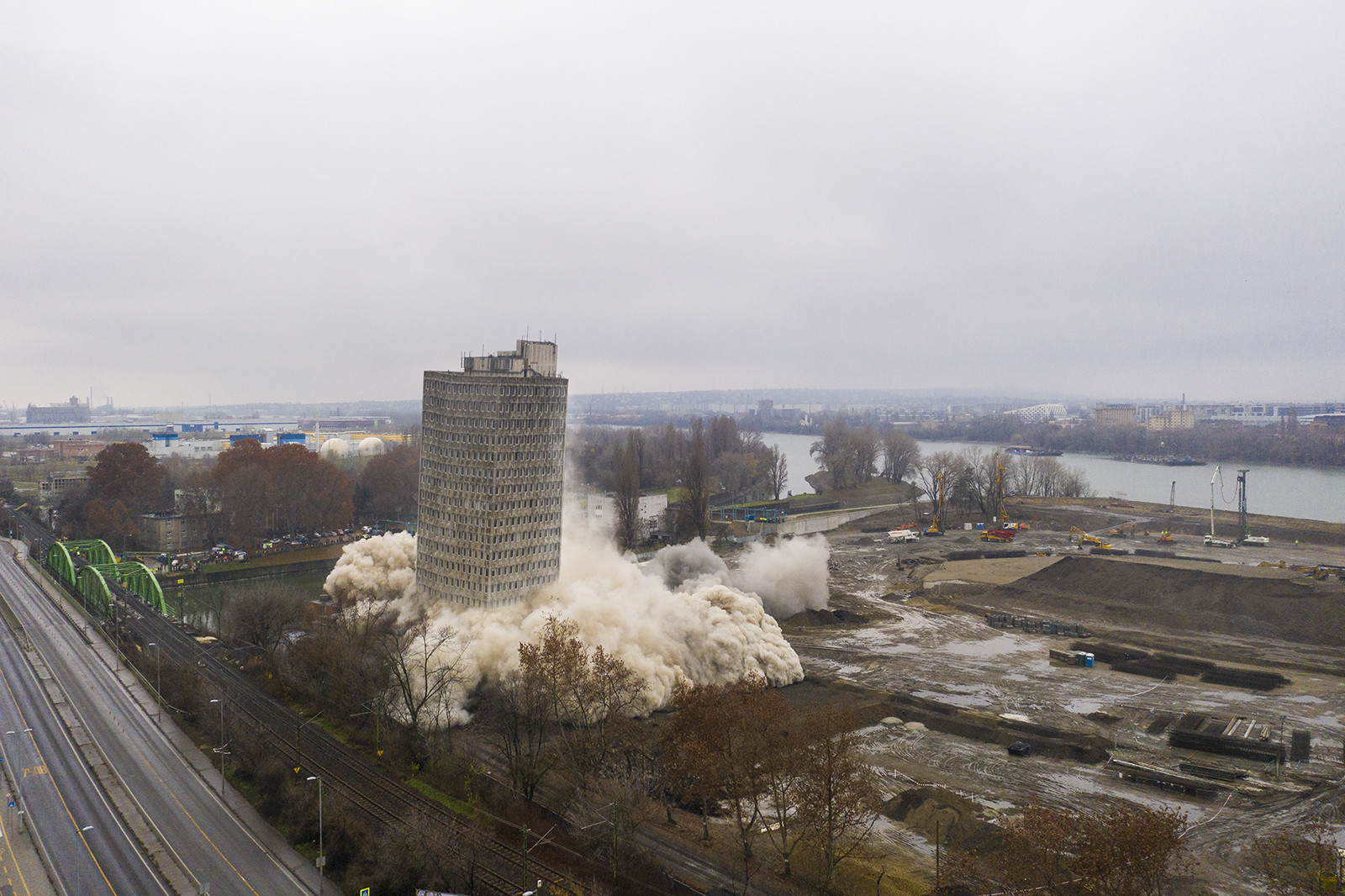 A kivitelező konzorcium a hierarchikus bontási technológia helyett a jelentős időmegtakarítást eredményező robbantásos technológiát választotta. Elsőként a torony belső szakipari bontási munkái zajlottak le, majd december 10-én sikeresen lezajlott a robbantás is.