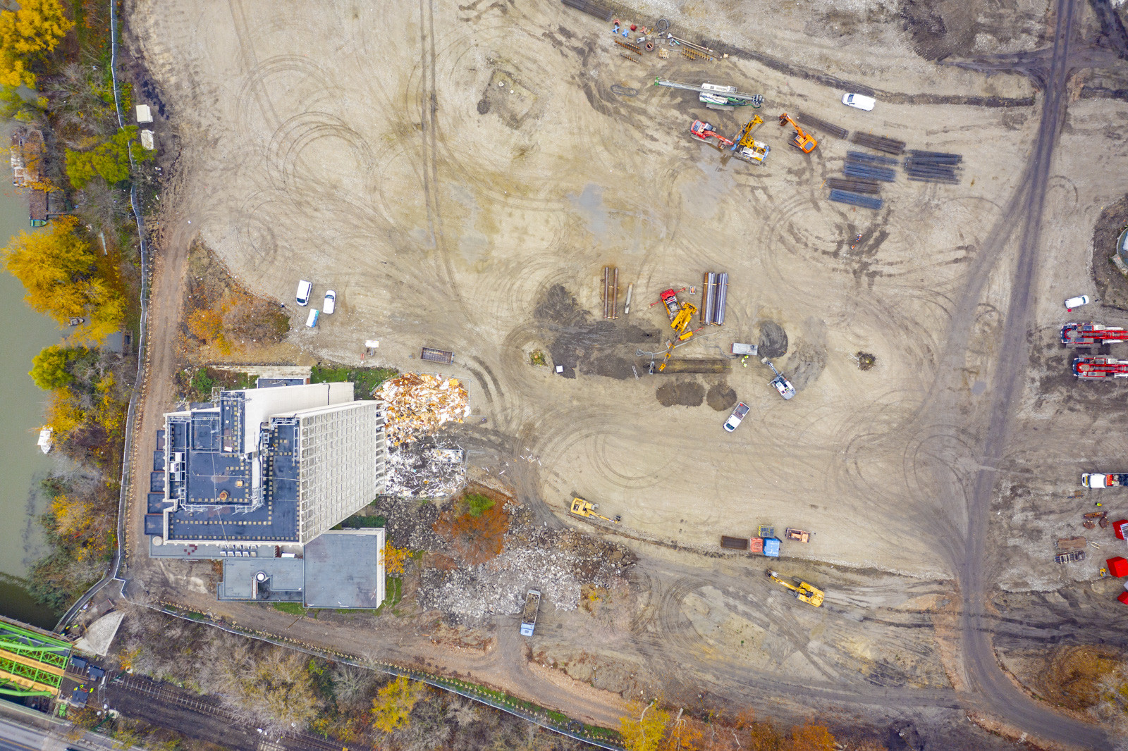 A beruházás egyik fontos eleme az épülő komplexum területén található torony felszámolása. A Vízgazdálkodási és Kutató Intézet (VITUKI) toronyházát 1976-be építették, vízgazdálkodási és környezetvédelmi szerepet töltött be. Az 57 méter magas épületben a VITUKI később megszüntette tevékenységét, így az több éve üresen állt.