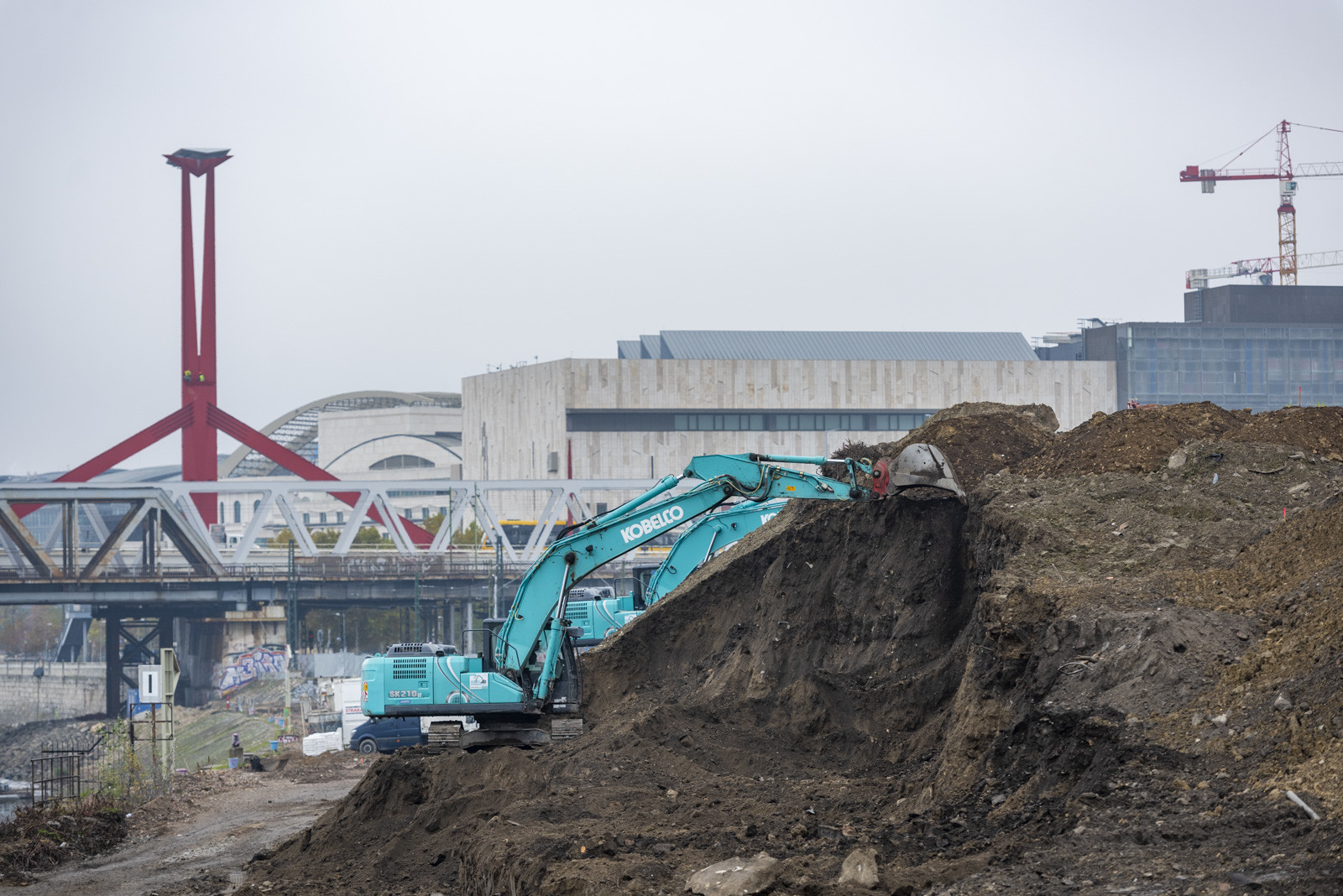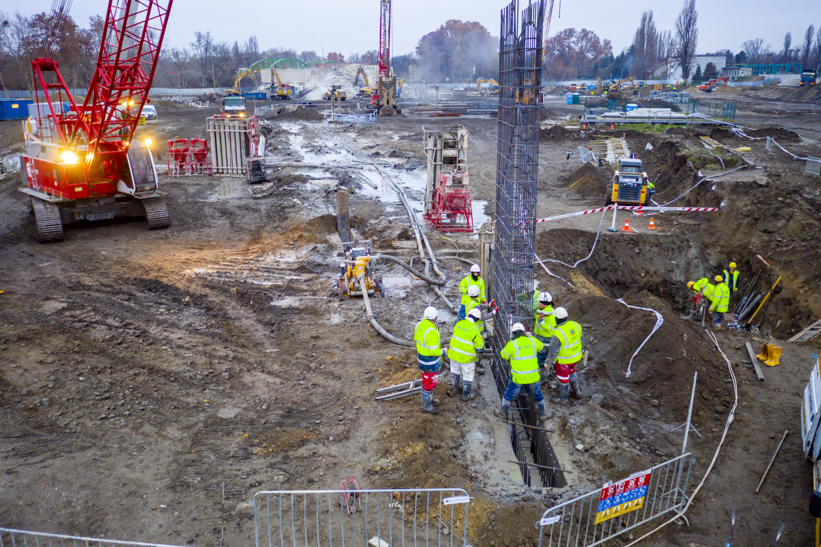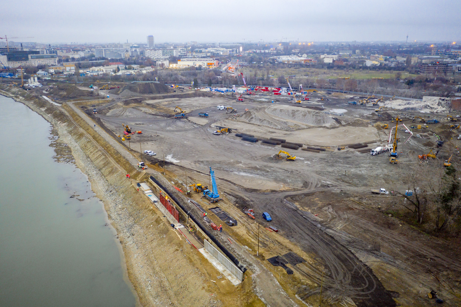 A Duna partján épülő stadion területén a vízzárást biztosító résfalépítés is folyamatban van. A fővészkiömlőnél a résvezető gerenda kompletten elkészült zsaluzással, vasalással, betonozással, itt a réselés 55 százalékos készültségig jutott. Az északi oldalon építendő résfalnál a résvezető gerenda 40 százalékban készült el zsaluzással, vasalással, betonozással; a réselés megkezdődött.