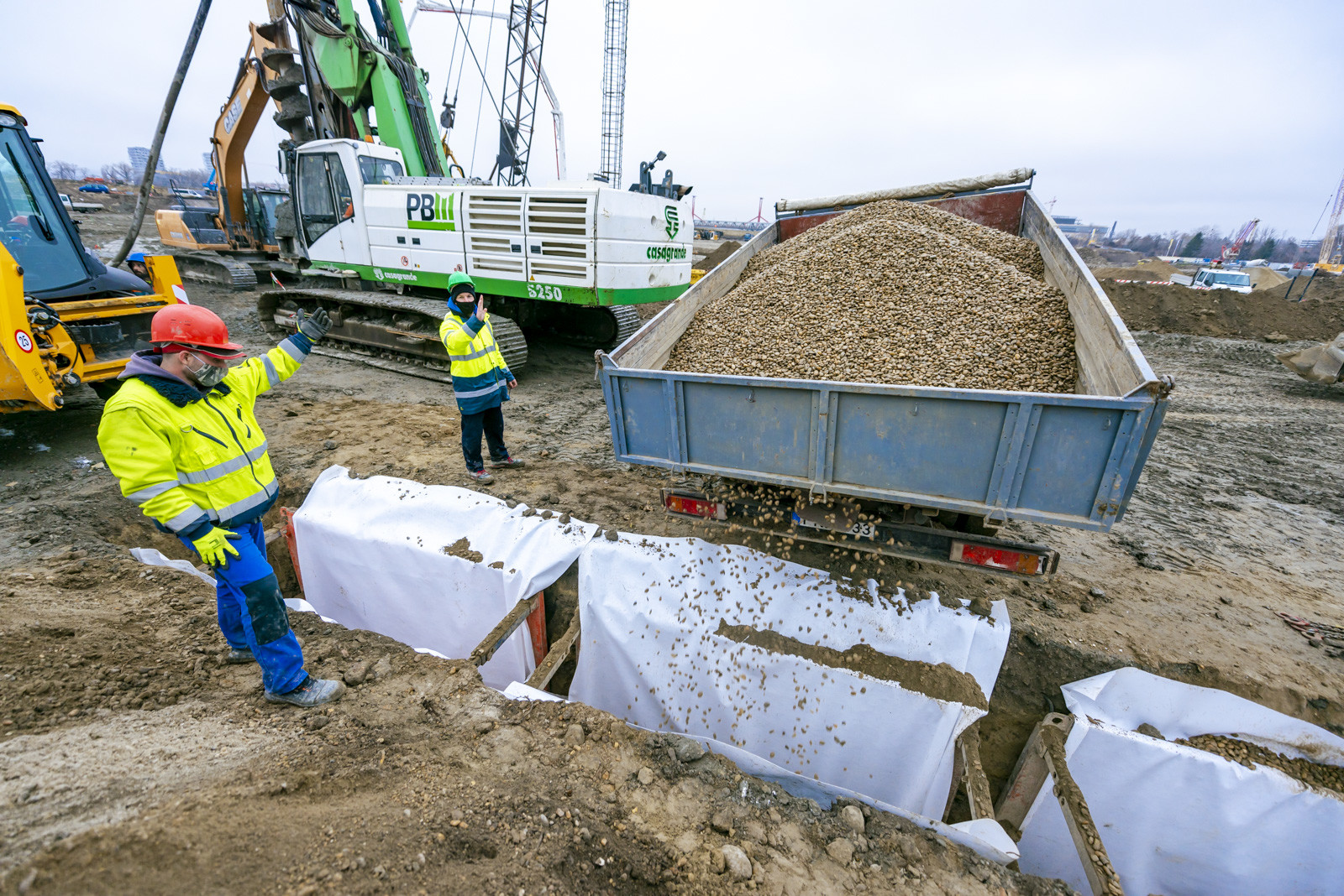 A Rákóczi híd és a Csepel-sziget északi csücske közötti területen épülő létesítmény 9 - 10. dilatációjában a cölöpözési munkák is befejeződtek, ennek során 750 cölöpöt fúrtak le. A stadion területén a cölöpözési munkák után megkezdődtek a gerendarács alatt található mélyszivárgó, gépészeti vezetékrendszerek építési munkái is.
