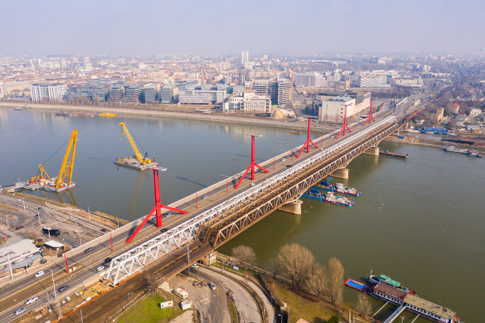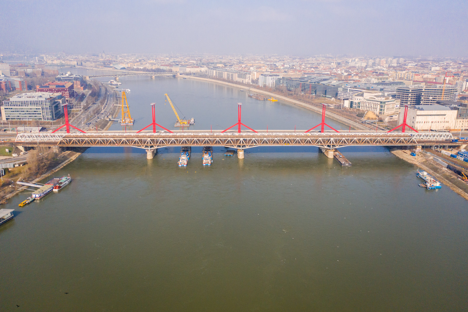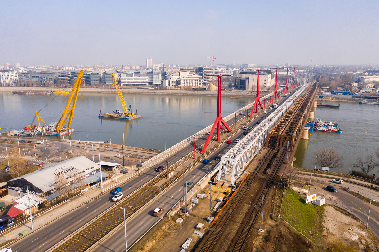A Clark Ádám és a Hebo lift-8 úszódarukat mostantól gyakrabban lehet majd mozgásban látni az Összekötő vasúti híd környékén, ugyanis az építés mellett a bontásban is főszerepet játszanak. Mindez azért szükséges,