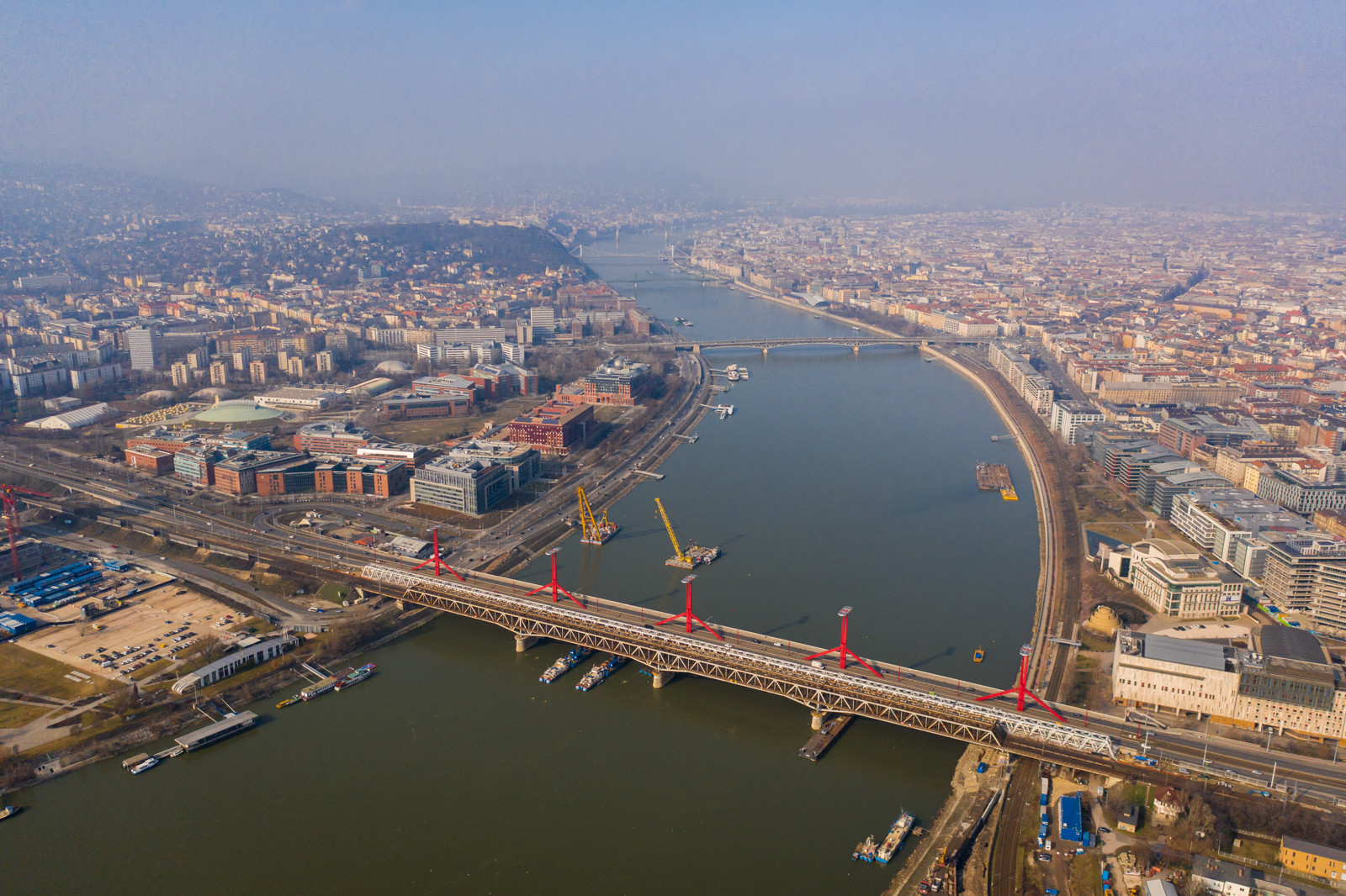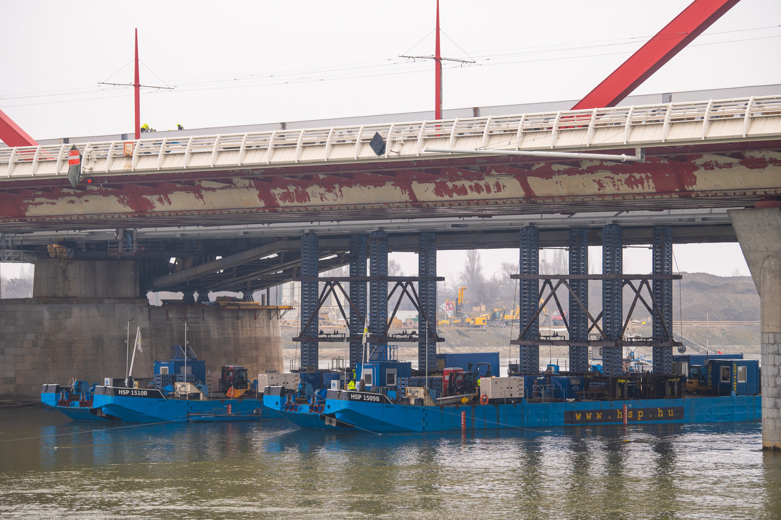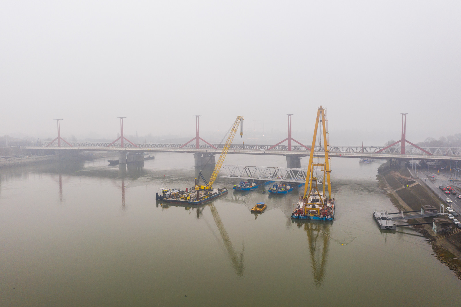 A Clark Ádám és a Hebo lift-8 úszódarukat mostantól gyakrabban lehet majd mozgásban látni az Összekötő vasúti híd környékén, ugyanis az építés mellett a bontásban is főszerepet játszanak. Mindez azért szükséges,