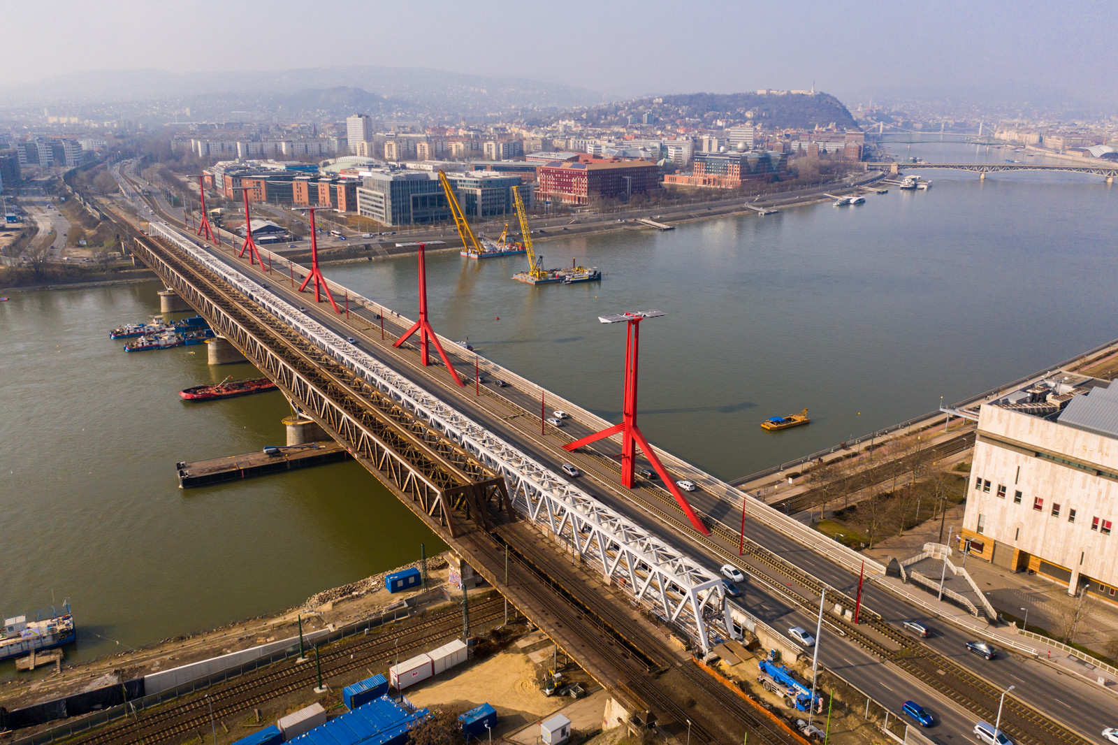 A még hátralévő munkálatok – a hídtartozékok szerelése, a korrózióvédelem tökéletesítése, valamint a vasúti szakági munkák – már csupán az utolsó simítások ahhoz, hogy az új vasúti híd teljes értékűen hozzájárulhasson a dunai látképhez is, kiegészítve a Rákóczi híd sziluettjét a belváros felől.