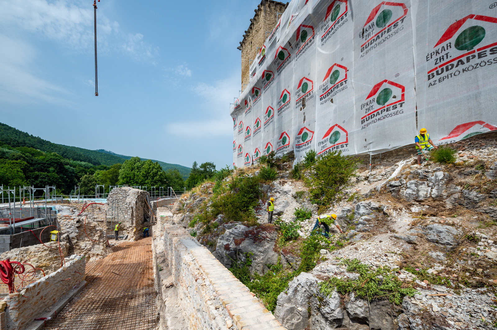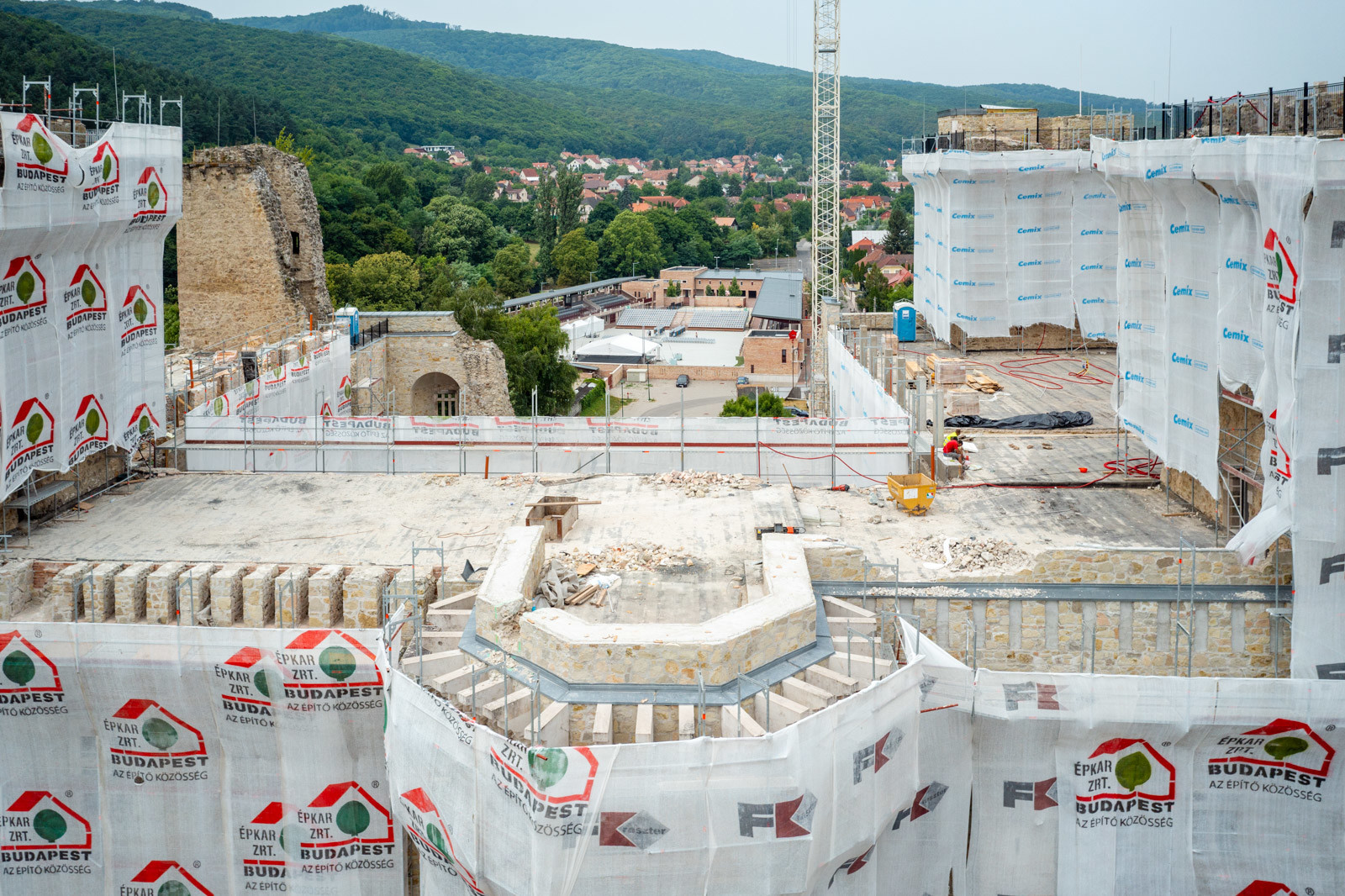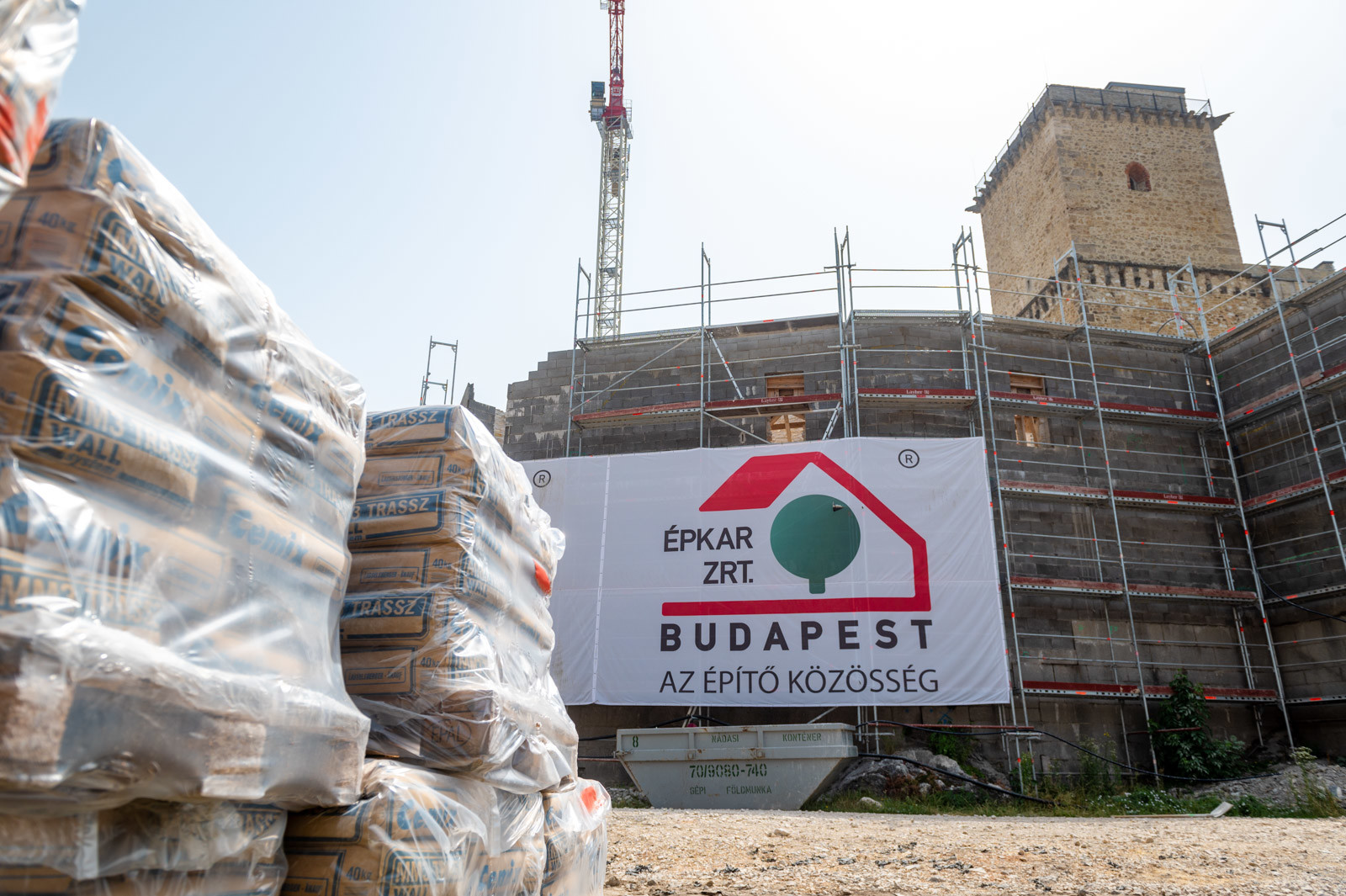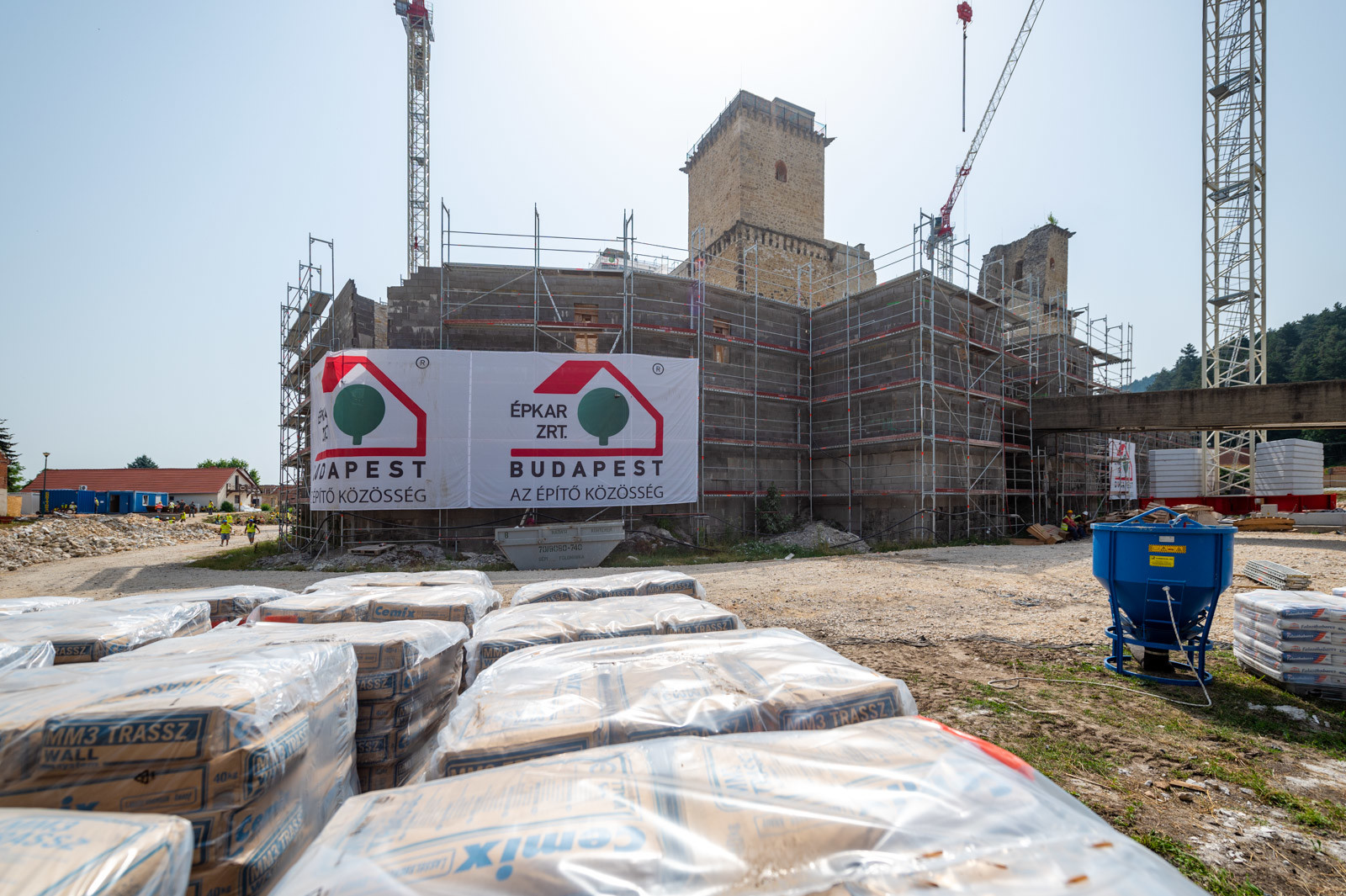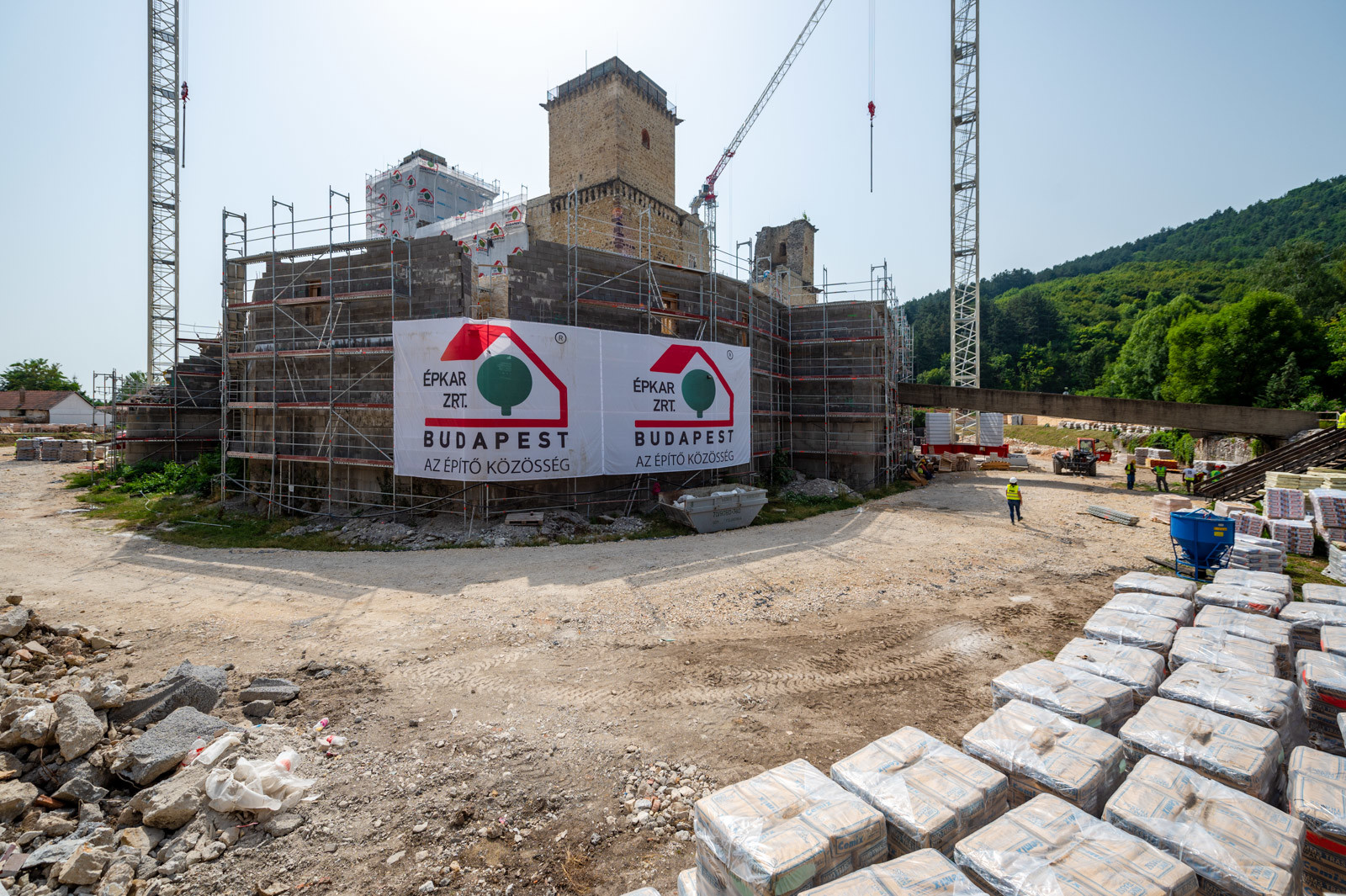 A külső vár falazásával terv szerinti ütemben haladnak. Ugyanakkor a vár udvarán a toronypárok földszinti része már elkészült, a kazamata szinten már a körbejárható 1. emeleti teraszokat építjük. „A vár szinte teljes kerületén megtörtént az állványzat elhelyezése a bontási és építési munkálatokhoz” – hangsúlyozta Mersits Ádám.