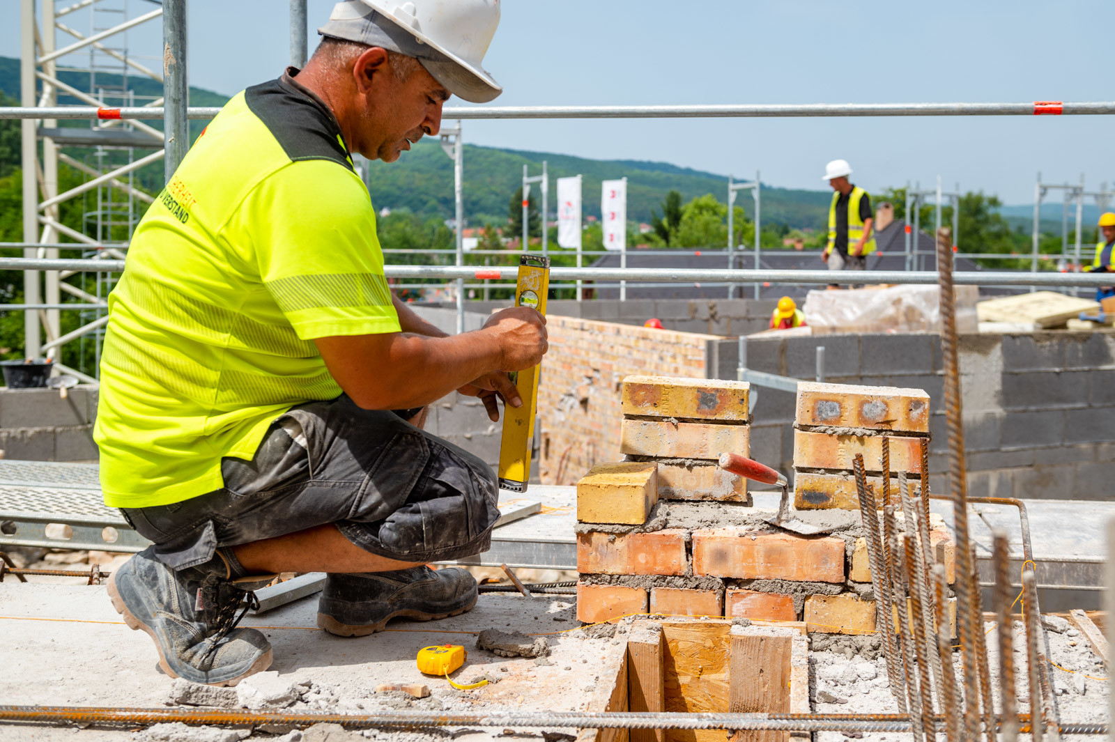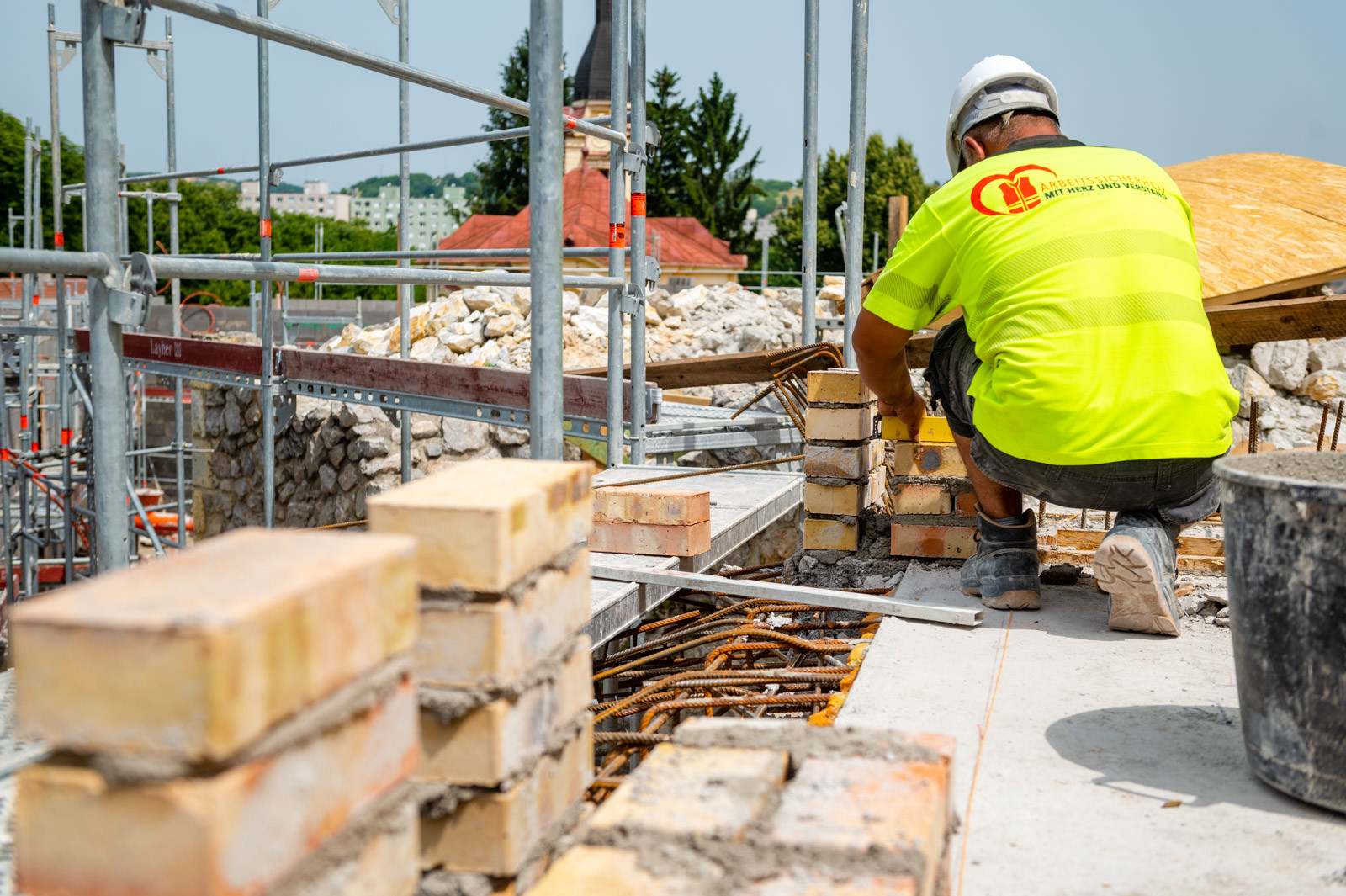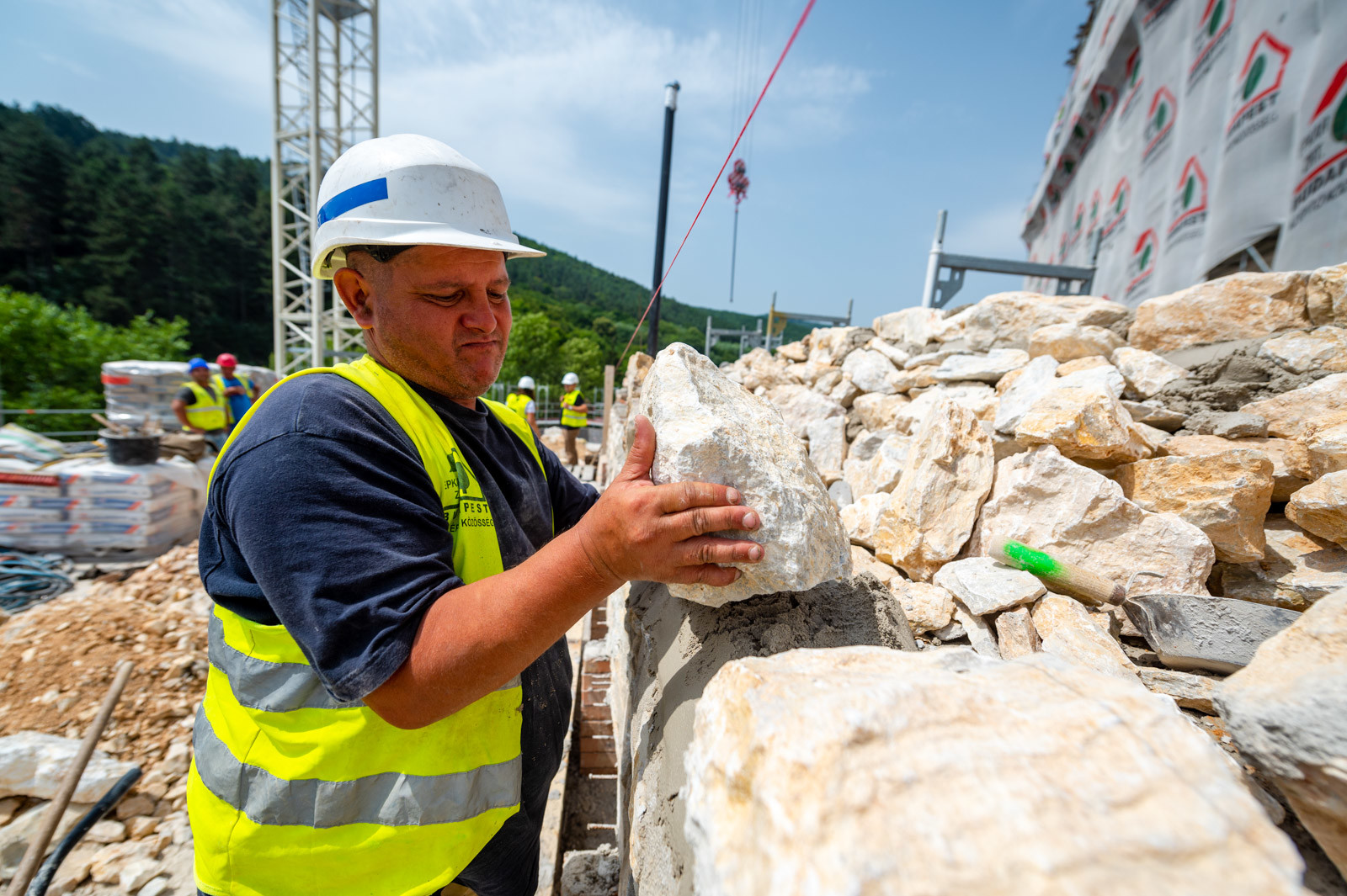 További jelentős kihívás, hogy napi szinten egyszerre 100-120 munkatárs végzi a falazást, ami szintén páratlan mennyiség.