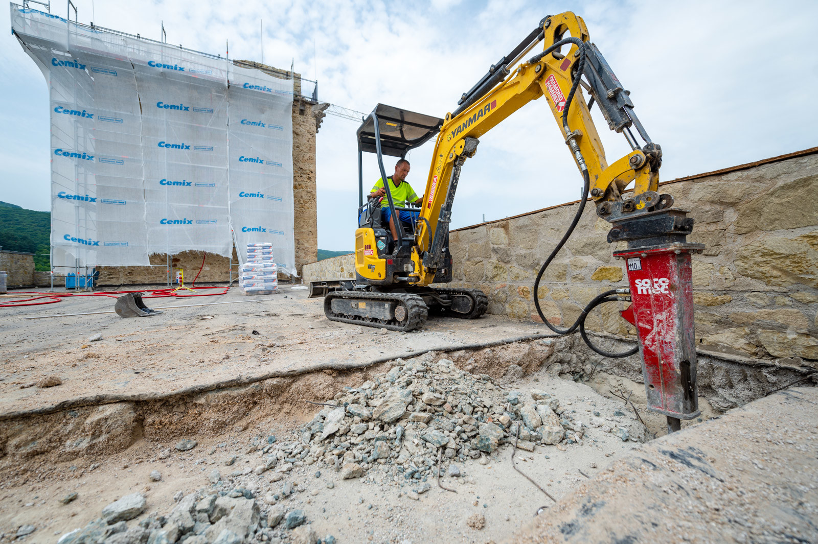 Az idén februárban elkezdett munkálatok állásáról Mersits Ádám, építésvezető számolt be lapunknak. Szavaiból kiderült, jelenleg a vár statikai megerősítése, a külső vár falazási munkálatai, valamint a belső vár építést megelőző bontása zajlik. „Utóbbi során nagy hangsúlyt fektetünk a belső terek védelmére” – tette hozzá.