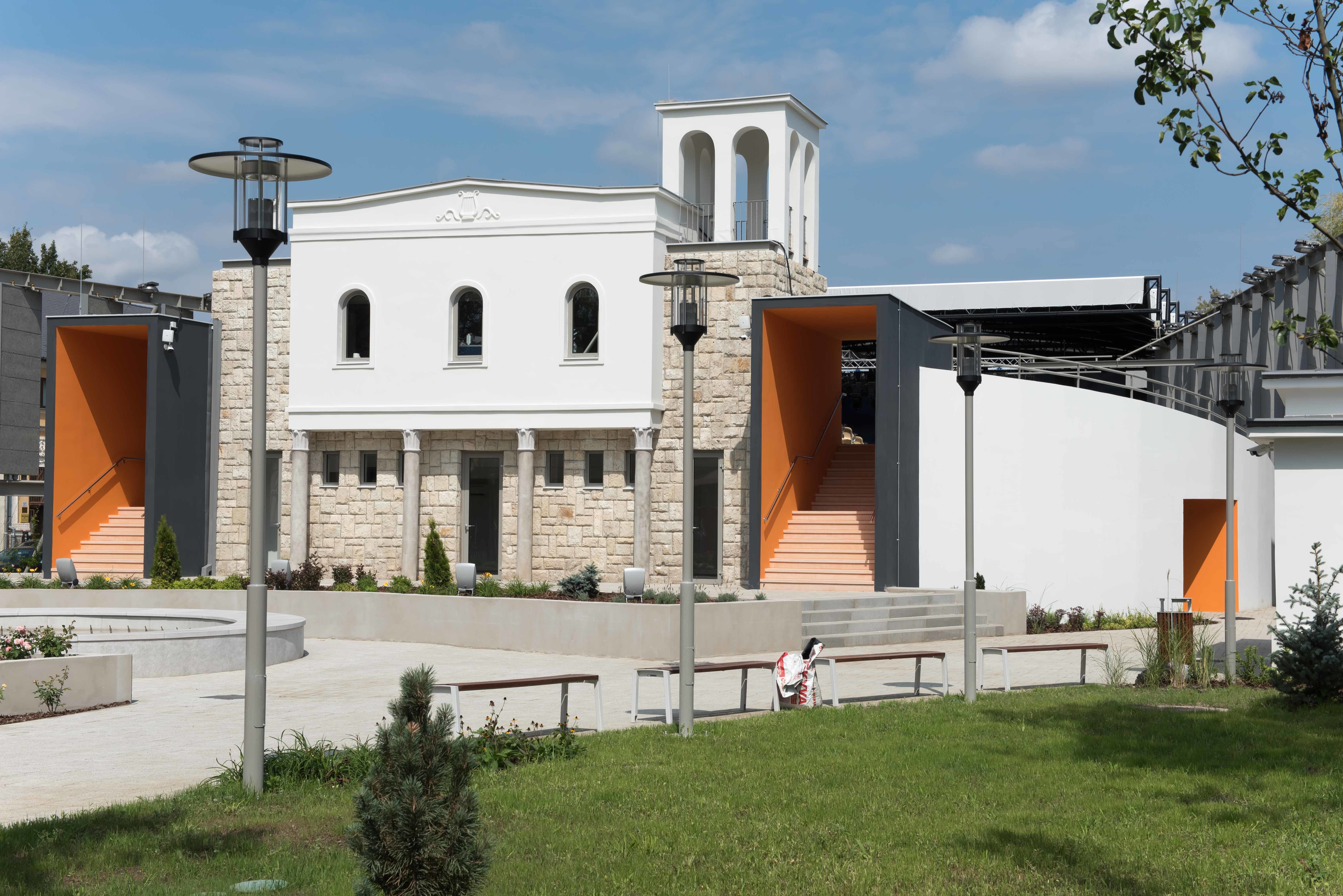 „A rekonstrukció során elvégeztük a meglévő büfé épületek, pénztár épületek és vezérlő épület teljes felújítását. A színpadot, a nézőteret és a kiszolgáló épületet elbontottuk és az alapozástól kezdve újjáépítettük. A mai kor igényeinek megfelelően készült el a színpad: színpad padlóval, mozgatható fedéssel, mozgatható oldalsó akusztikai panelekkel, jelmezraktárral. A nézőtérre formatervezett egyedi székek kerültek, illetve mozgatható oldalsó akusztikai panelek biztosítják a környező területek zajvédelmét.”