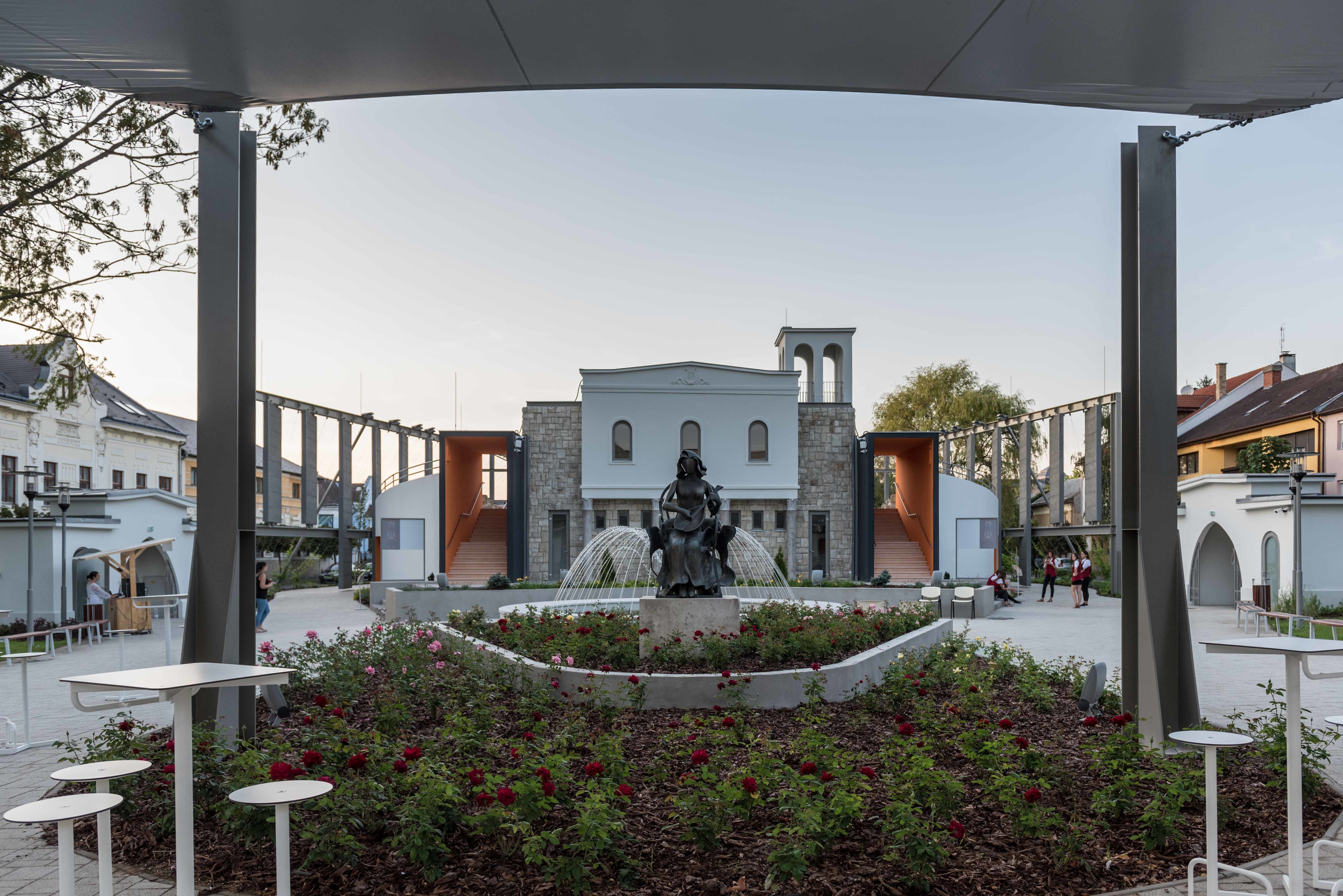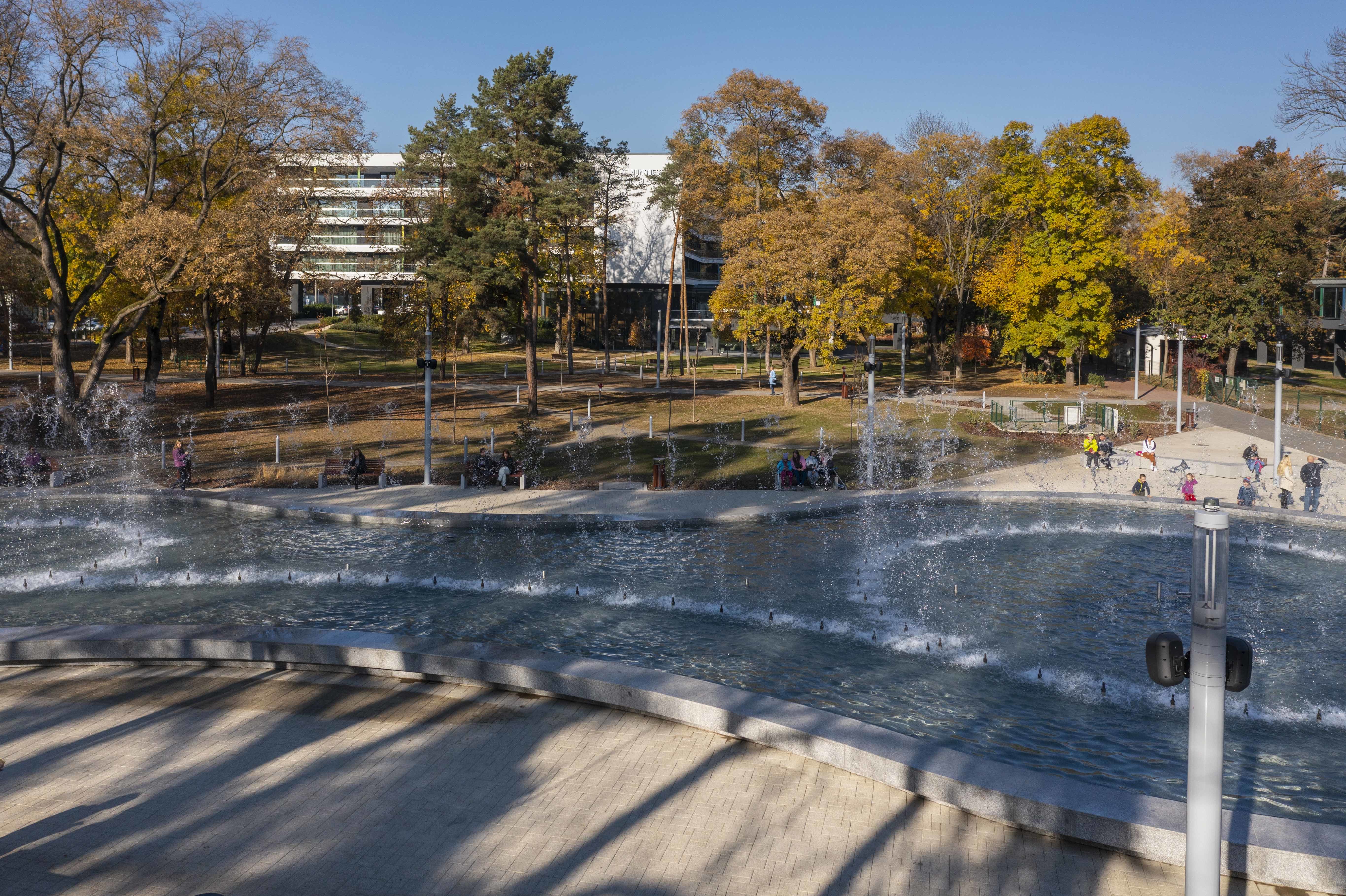 „A közösségi területen, a vezérlőépület mögött a meglévő szökőkút helyére új épült egyedi vízképpel, emellett a rózsakert megújult, melynek közepére visszakerült a "Mandolinos hölgy " szobor. Az épület egyediségét az acélszerkezetre kifeszített növényfuttató háló és az arra felfuttatott lilaakác adja” – foglalta össze a projektet Héver Gábor.