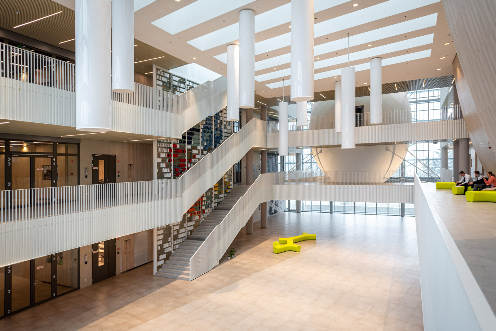 „Beépítettünk közel 17 ezer köbméter betont, 2200 tonna betonacélt, és körülbelül 10 kilométernyi cölöpöt fúrtunk le az épület alaptesteinek. Hat darab liftet készítettünk, 4500 négyzetméter a körülöttünk lévő hőszigetelt függönyfal felülete, amely 3300 négyzetméter homlokzati lamellás intelligens árnyékoló rendszert kapott. A felettünk lévő tőzsdetojás össztömege közel 80 tonna, amiből az acélszerkezet 36.7 tonnát tesz ki. A nagyelőadóba 4000 négyzetméter akusztikai falburkolat készült, az épület fűtési és hűtési energiaigényét víz-víz hőszivattyúval oldottuk meg, amelyeknek az energiaforrását talajszondáról tápláljuk meg” – fejtette ki.