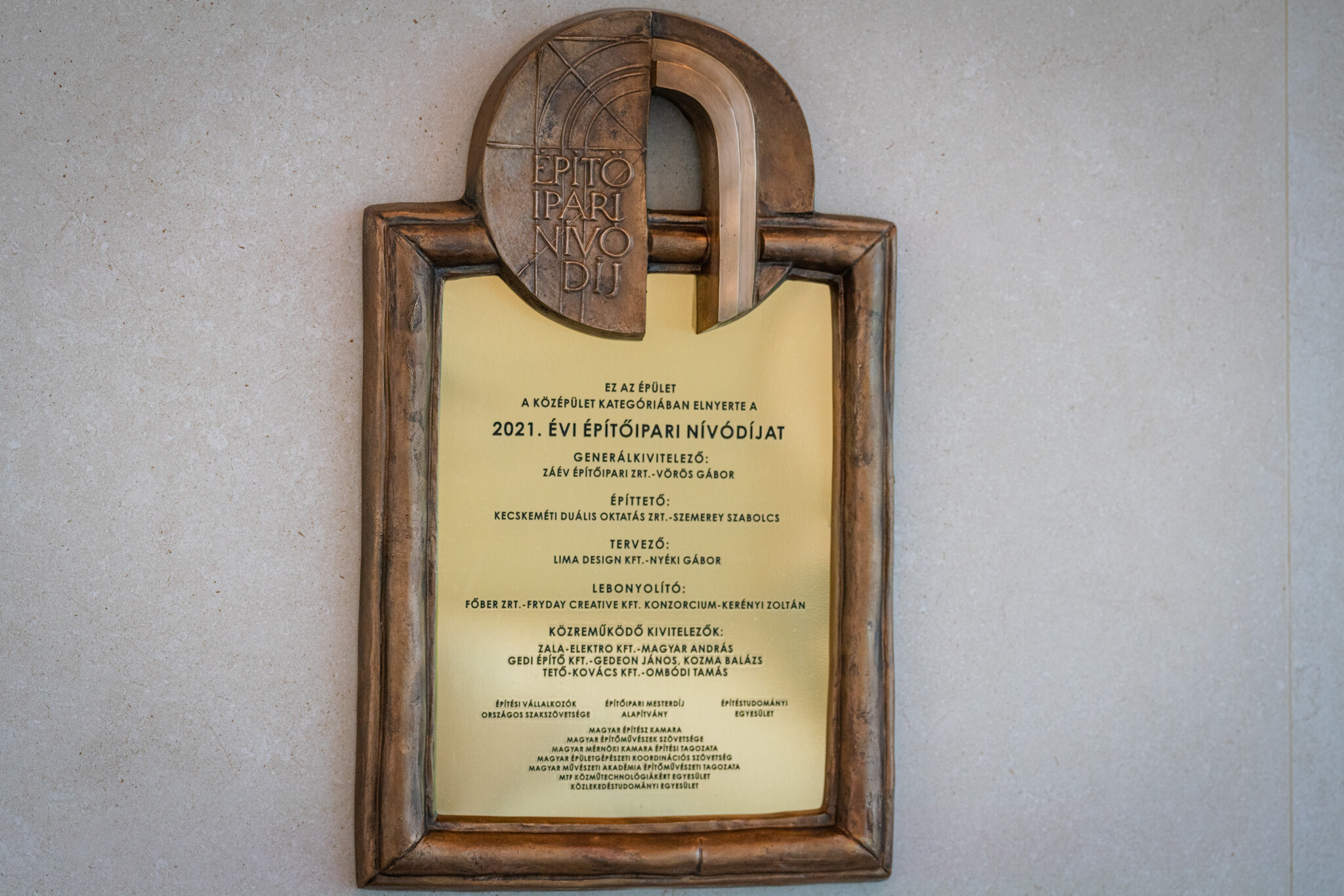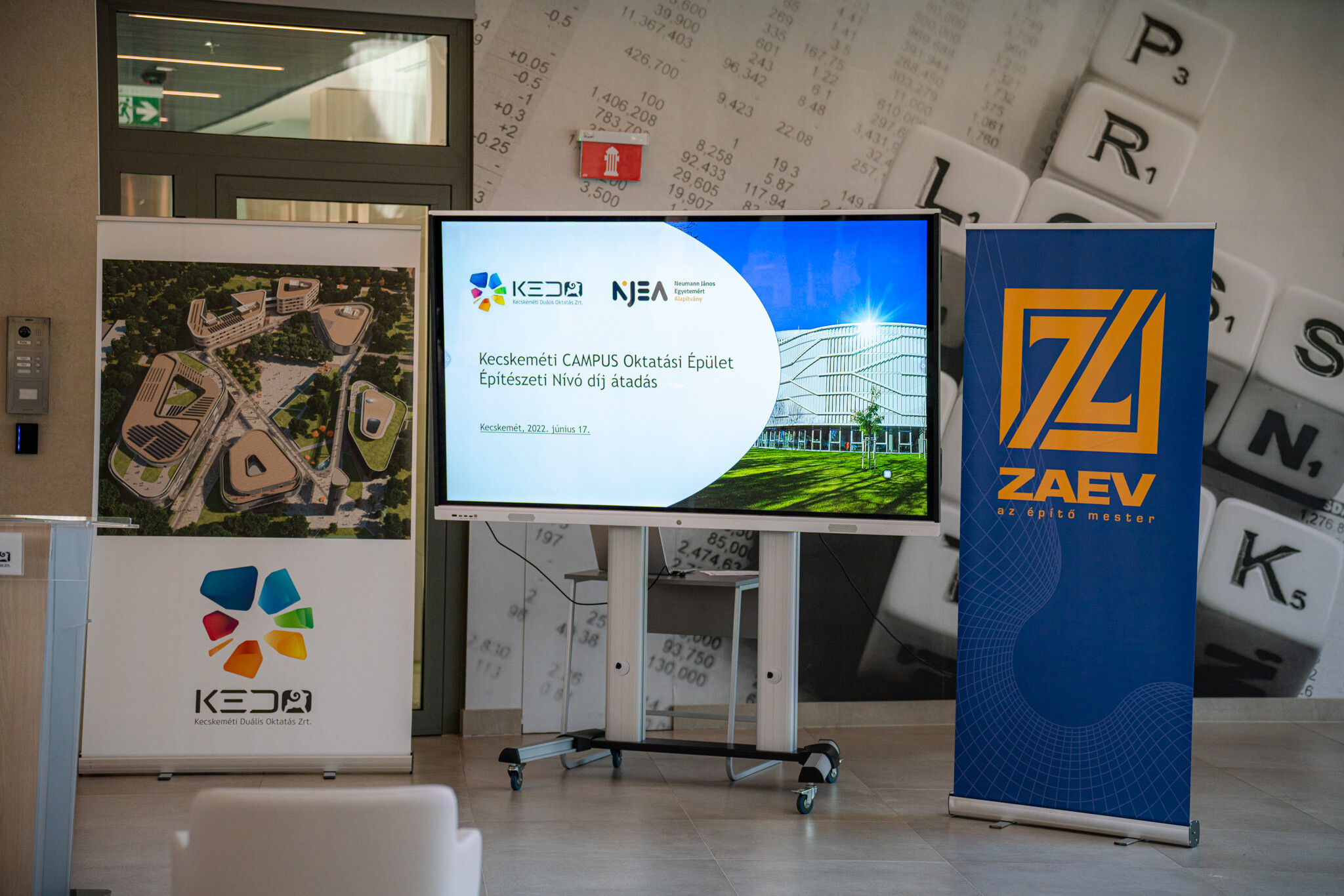 Az esemény keretében a meghívott díszvendégek és a KEDO Zrt. vezetősége közösen leplezte le az Építőipari Nívódíj emléktábláját. Az ünnepség egy kisfilm megtekintésével vette kezdetét, amely megmutatta, hogyan nőtt ki a földből a világszínvonalú oktatási intézmény az egykori megyei kórház helyén.