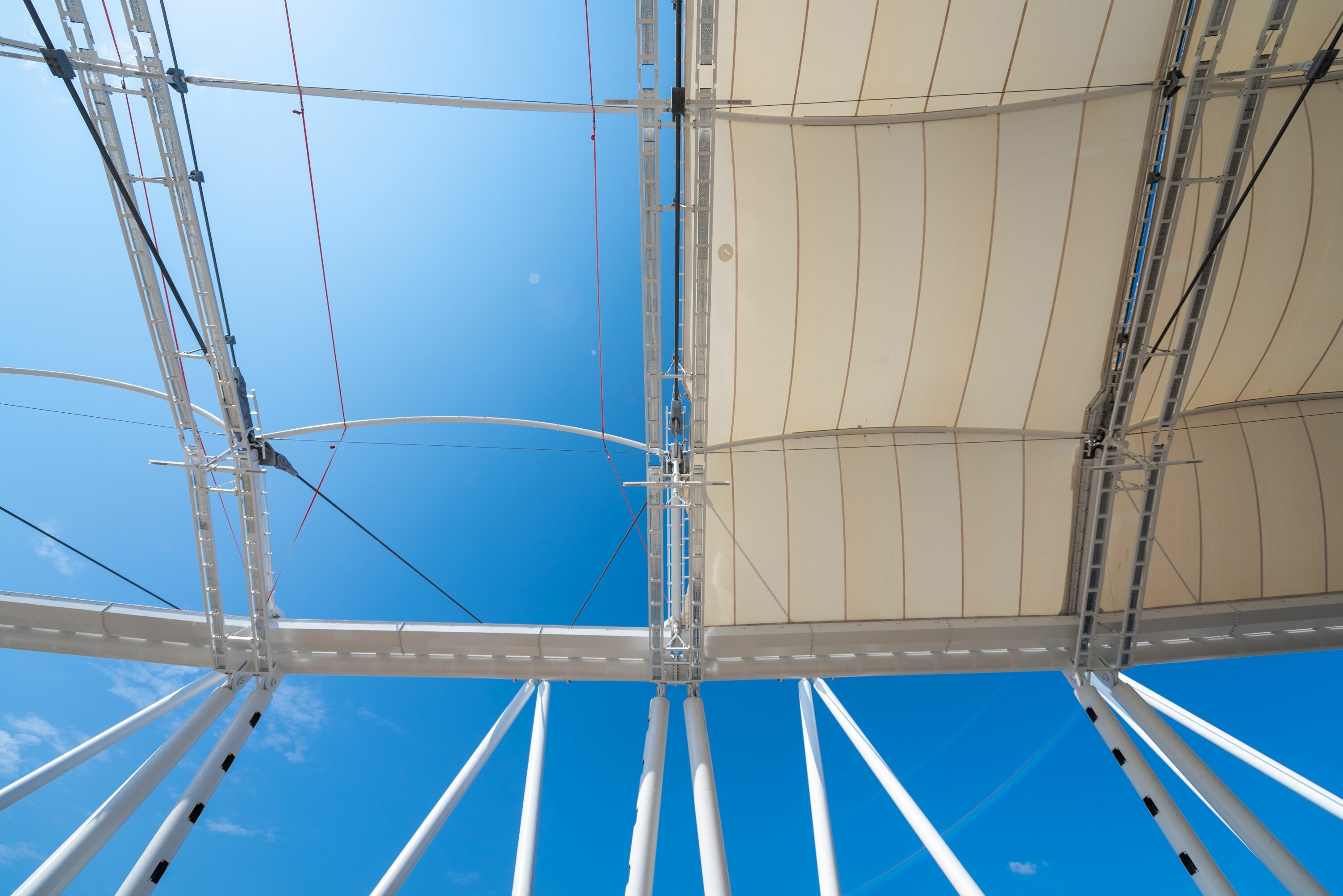 Varga Tamás kiemelte, ez a tetőmembrán a méretét megnövelő szétfeszítés után nyeri el teljes teherbírását: „Ezáltal elbírja a havat, a szelet és az időjárás viszontagságait és akár járni is lehet rajta.” Hozzátette, ezeket a paneleket a szerelés előtt másfél évvel elkezdték gyártani. „Emiatt nagyon fontos volt, hogy az acélszerkezet és a drótkötélszerkezet olyan feszültségállapottal és geometriával bírjon, amivel mi másfél évvel ezelőtt számoltunk.” Szavaiból az is kiderült, a szintén előregyártott drótkötélszerkezetnél is kalkulálni kellett az anyag nyúlásával, amelynek mértékét pontos számításokkal előre meghatározták.
