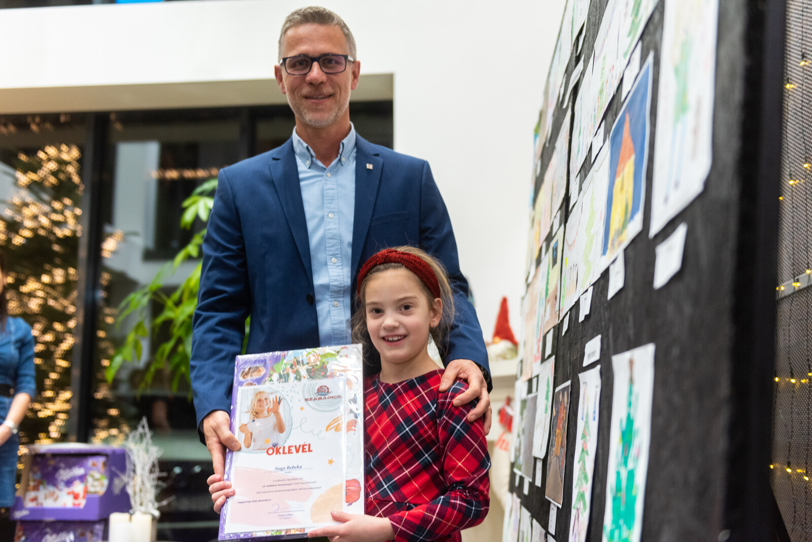 „A tavalyihoz hasonló módon idén is elindítottuk munkatársaink gyermekei körében a karácsonyi rajzpályázatunkat, ahol óvodás, alsó és felső tagozatos korcsoportokban jelentkezhettek az érdeklődők. Míg tavaly az „Én is szeretnék az építőiparban dolgozni” témában vártuk az alkotásokat, az idén „A családom Karácsonya” tematikában érkeztek a pályaművek” – osztotta meg lapunkkal az eseményen László Zoltán, a Szabadics Zrt. vezérigazgatója.