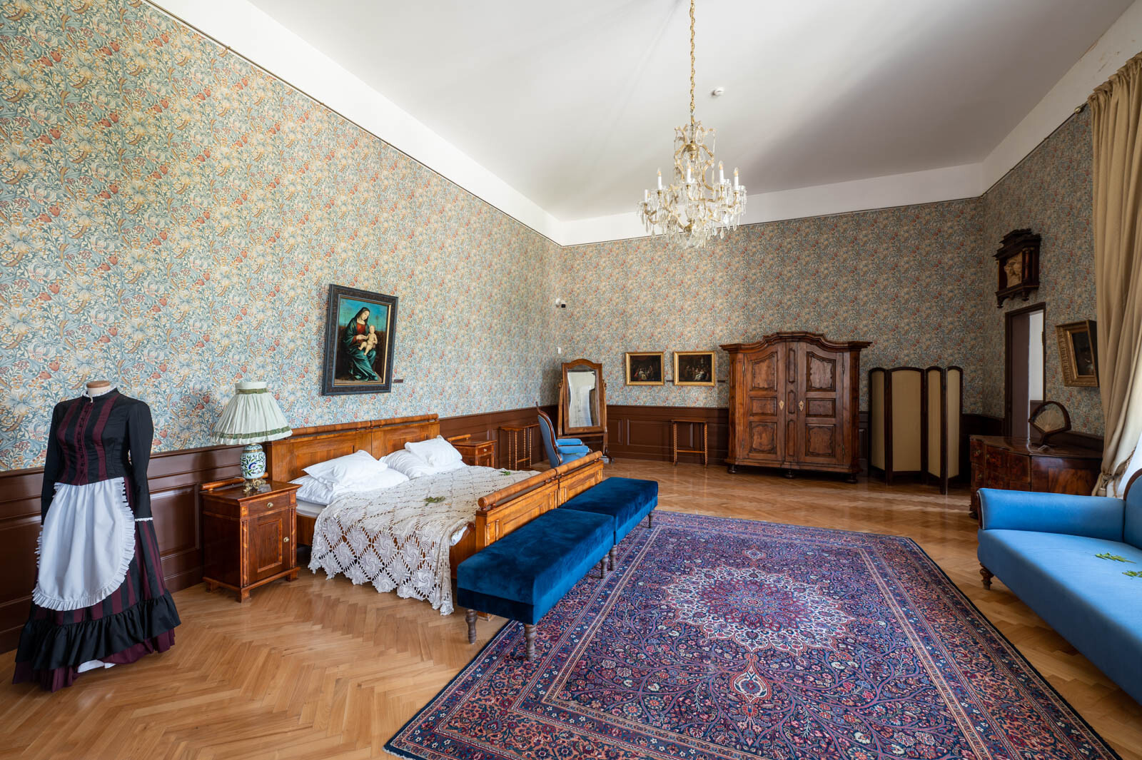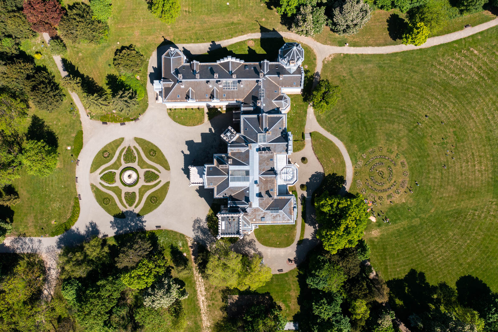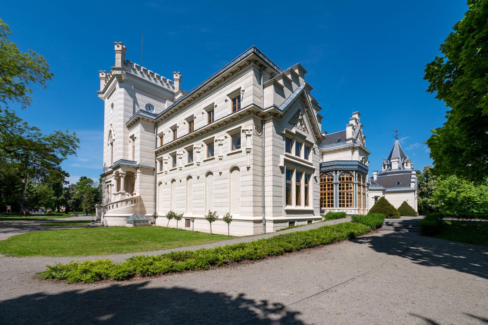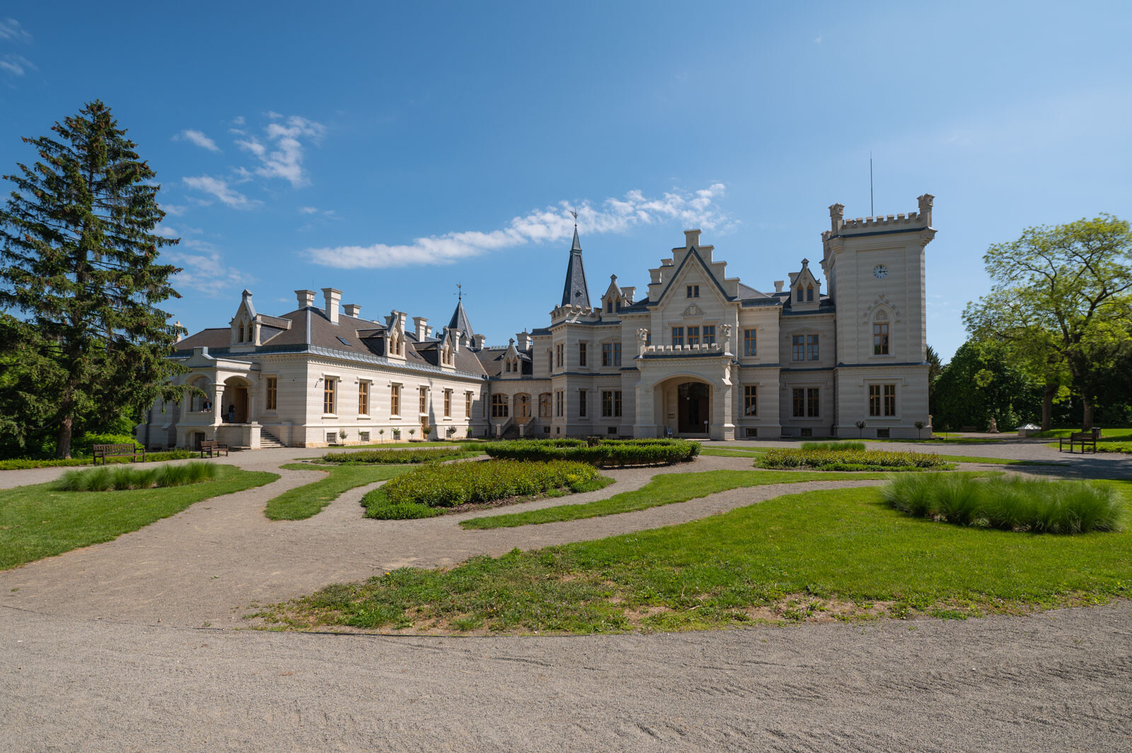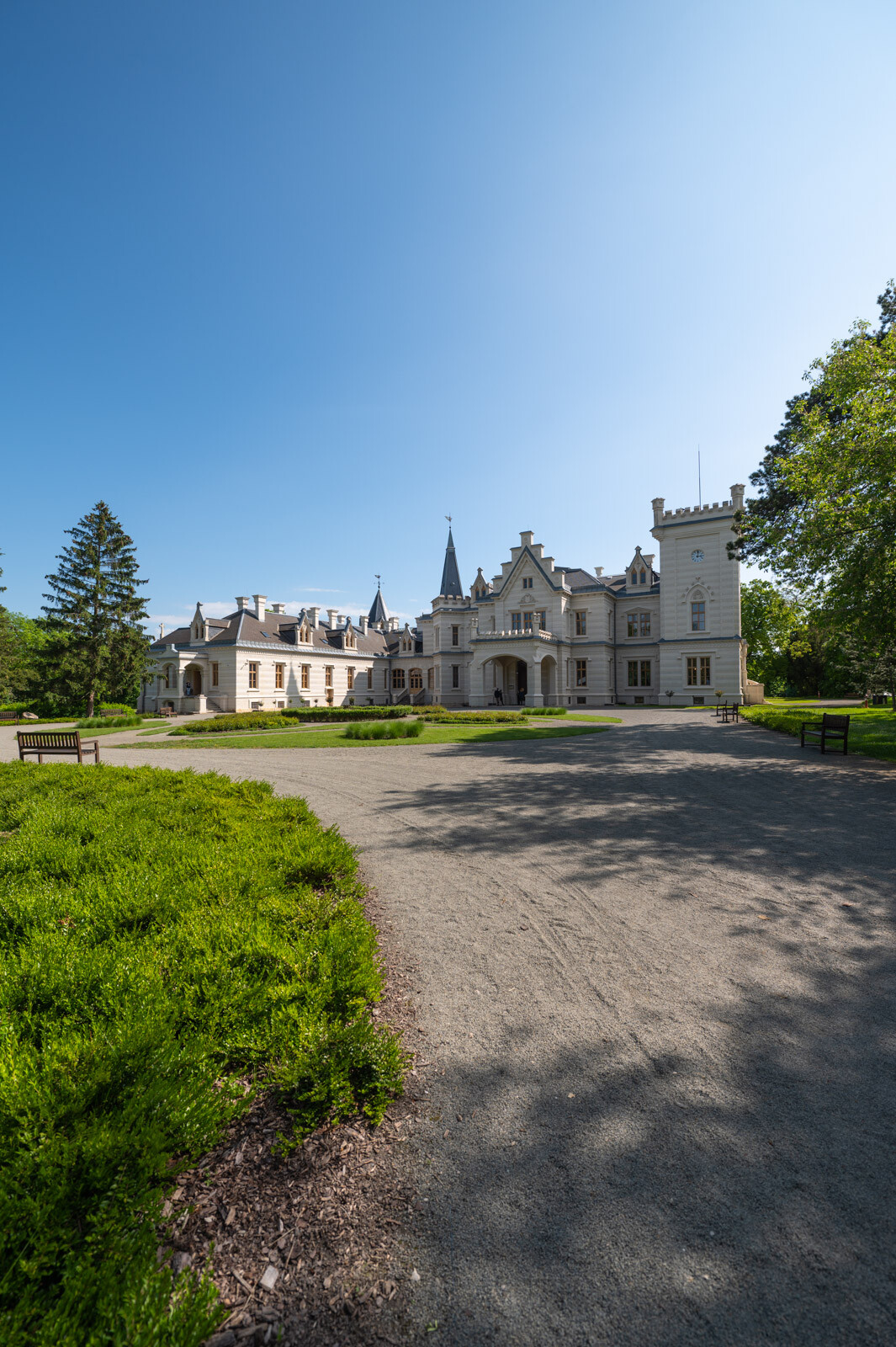 Az 1876-ban átadott kastély Tudor-stílusú, romantikus épületegyüttes, amely korának legkorszerűbb műszaki megoldásaival, neves mesterek közreműködésével jött létre. A többek közt gázvilágítással, telefonnal, csatornahálózattal, tőzegkazánnal ellátott kastélyhoz angol stílusú parkot alakítottak ki. Érdekesség, hogy kastélyon kívül felépített konyhából az ételeket a föld alatt kiépült síneken juttatták be az épületbe.