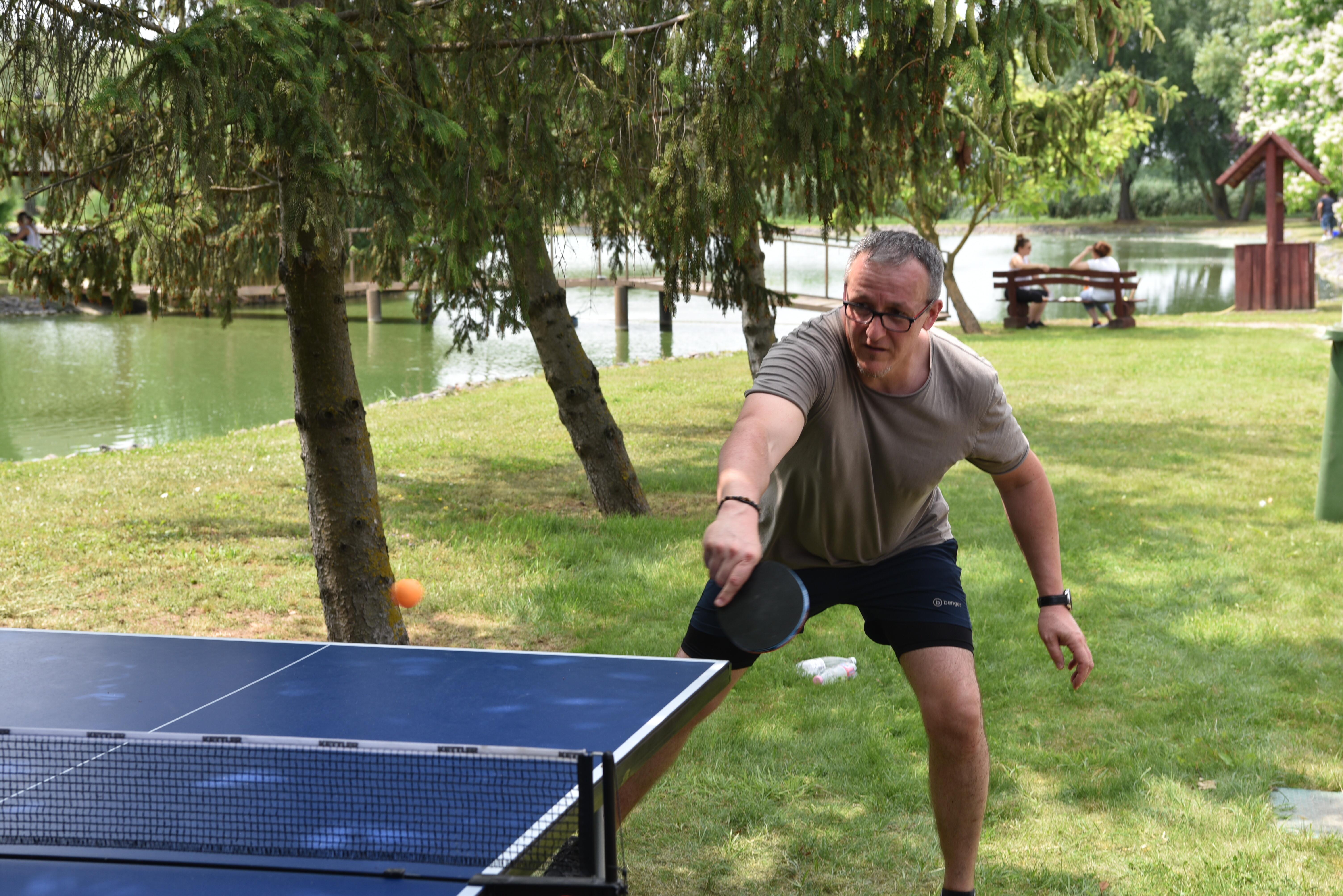 „Remek volt minden! Ahogy mondják: a foglalkozás elérte a célját. Lehetett horgászni, sportolni, vagy csak beszélgetni, ezúttal nem a munkaterületen a szakmáról, hanem szabadon bármiről, igazán kellemes környezetben. Én természetesen nem hagytam ki a focit és az asztaliteniszben is több meccset játszottam. A felszolgált ételekkel úgy gondolom mindenki elégedett volt és mivel lehetőség volt leöblíteni a finom falatokat így a hangulatra sem lehet senkinek panasza” – ismertette az élményt Szakolczai Zsolt.