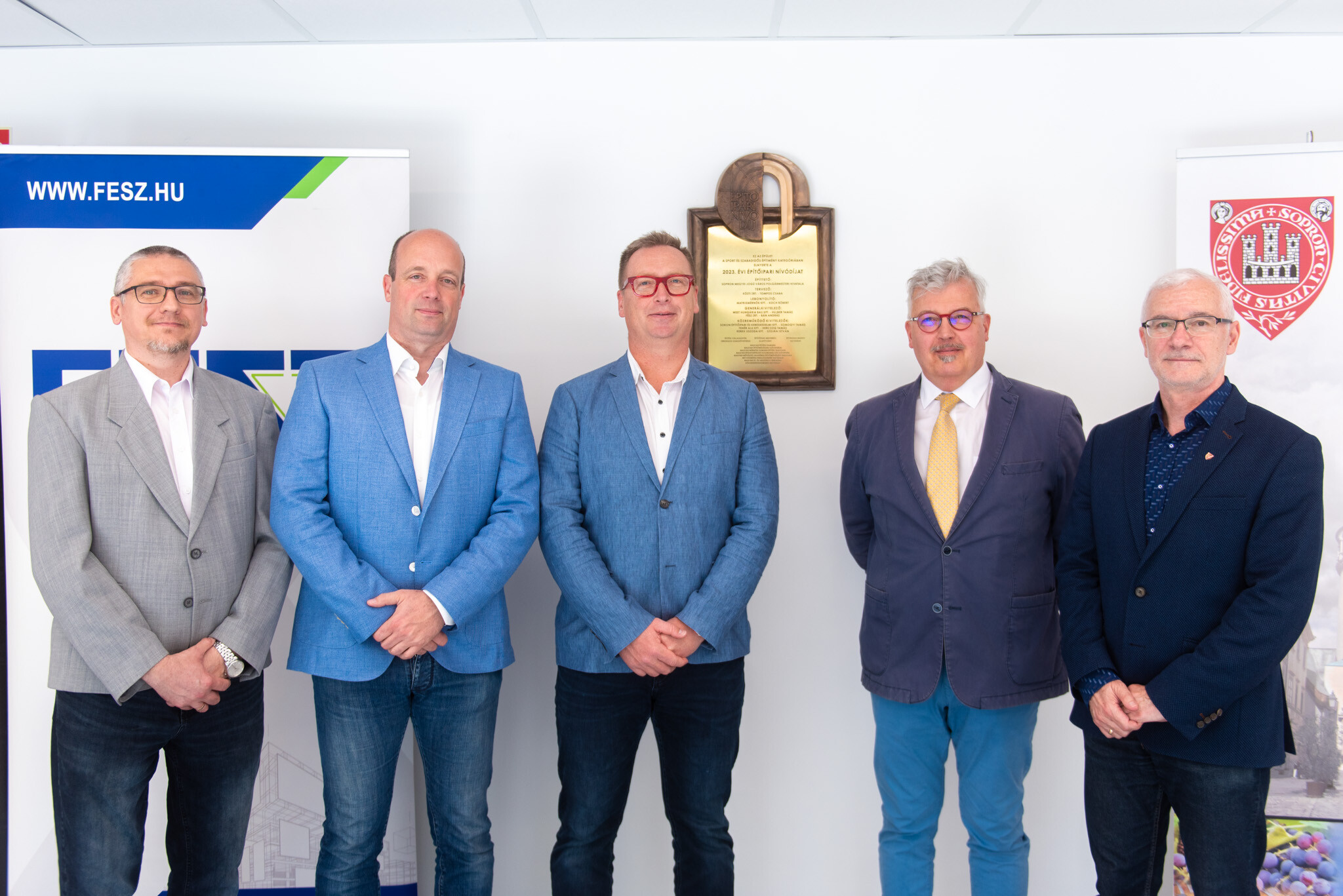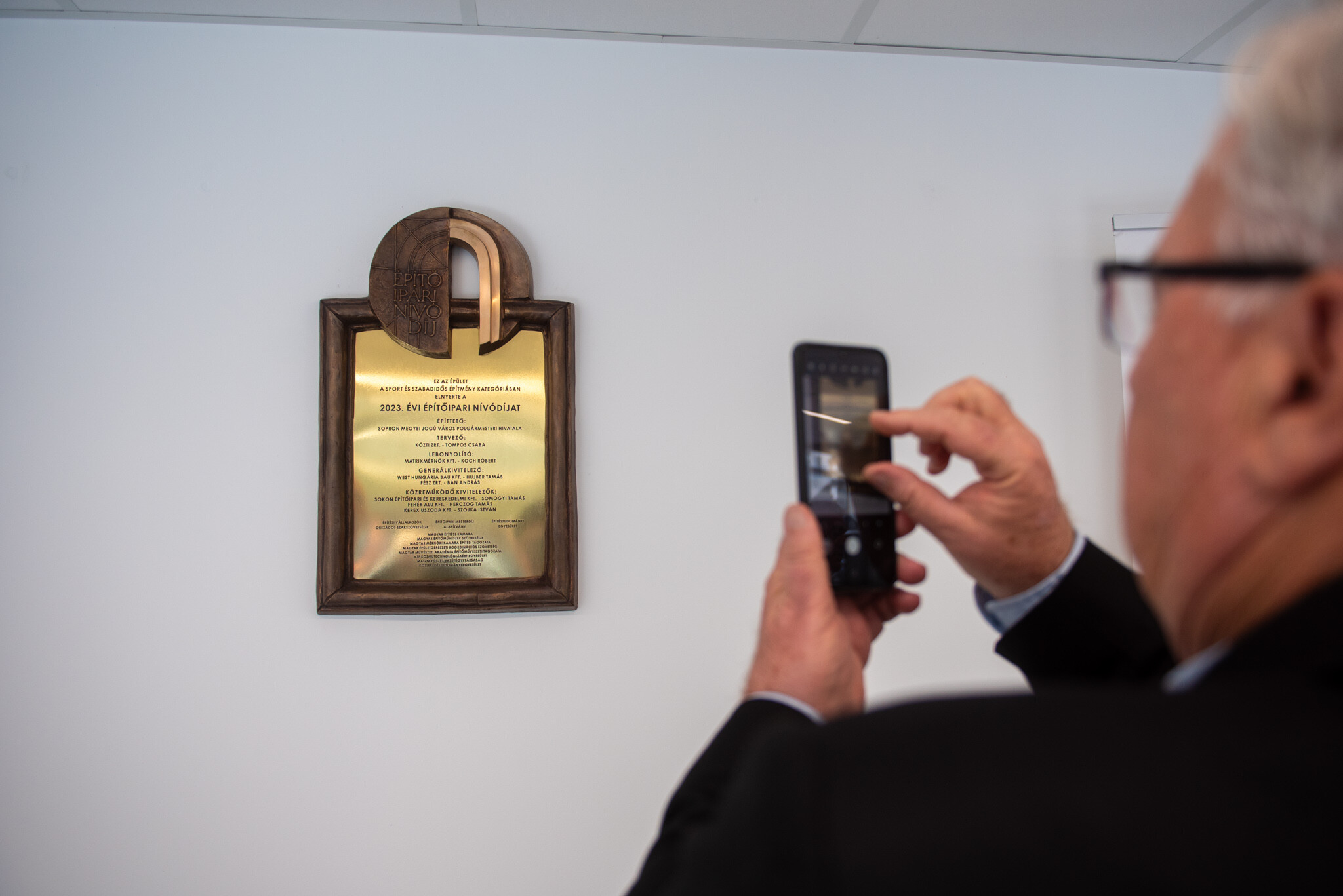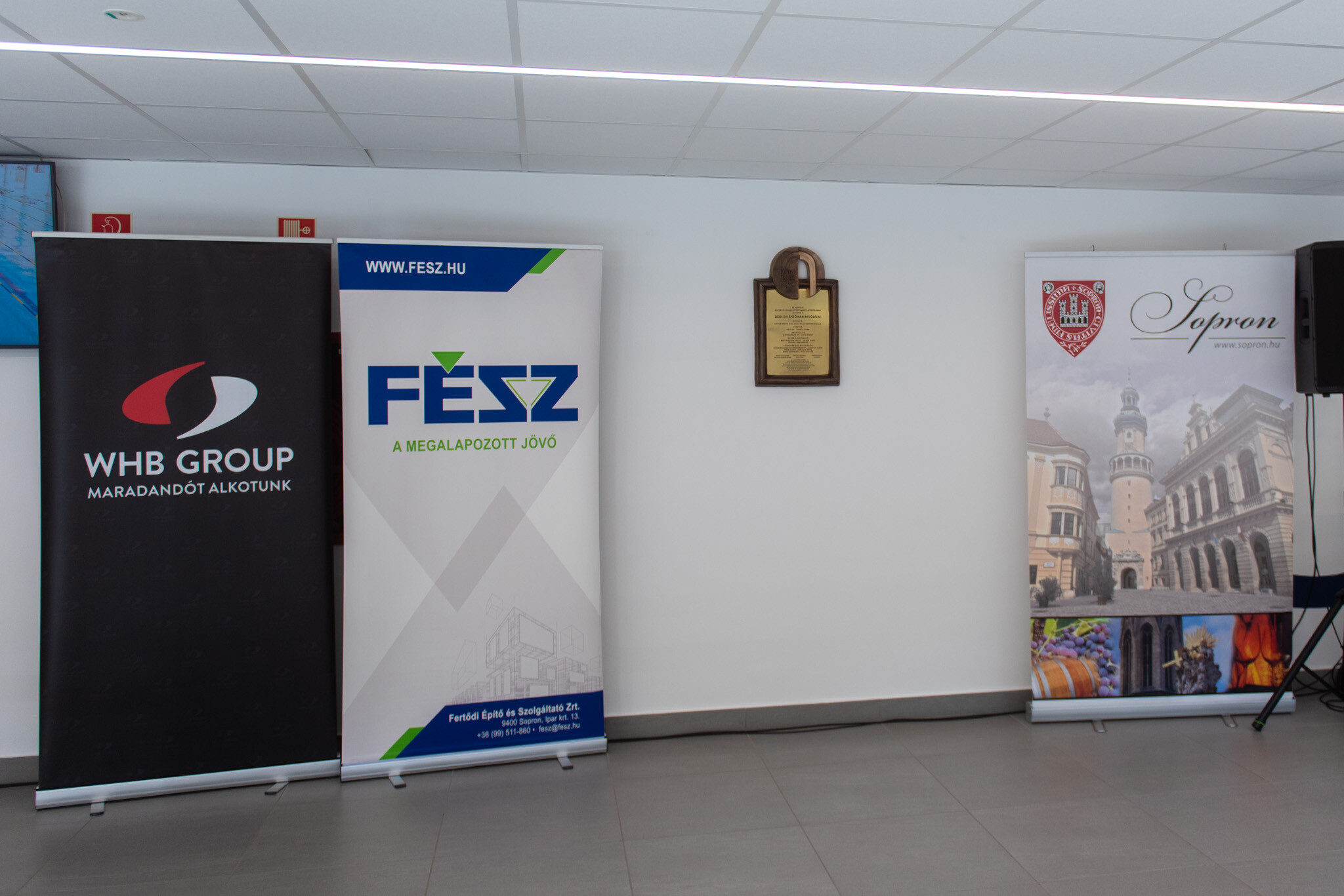 A WHB és a FÉSZ konzorciuma által kivitelezett soproni uszodában immár tábla hirdeti az építési projekt minden szempontból sikeres megvalósítását.