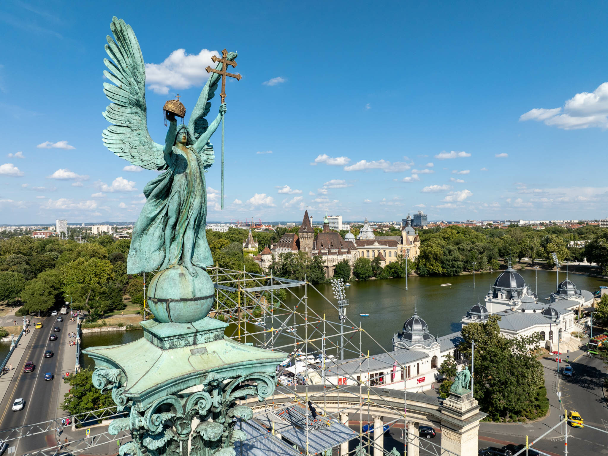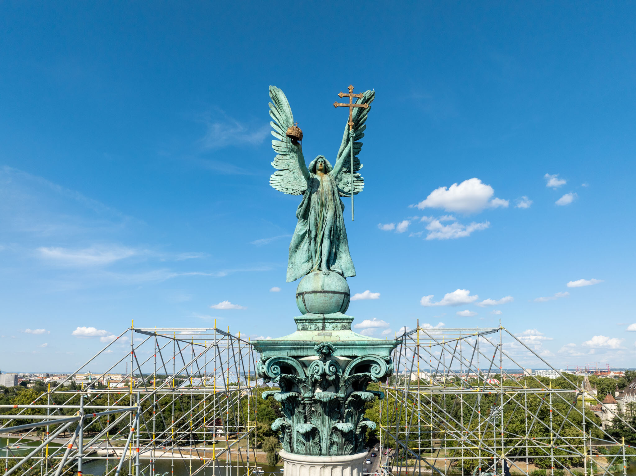 124 éve őrködik hazánk felett Zala György szobra, amelyet 1900-ban történt felállítása óta első ízben emelnek le helyéről. Gábriel arkangyal szobrát a Városliget Zrt. és a Nemzeti Örökség Intézete megbízásából restaurálják. Layher állványzatot emeltek 34 méter magasságig a Belvárosi Építő Kft. kivitelezésében, a Museum Complex Kft. megbízásából.