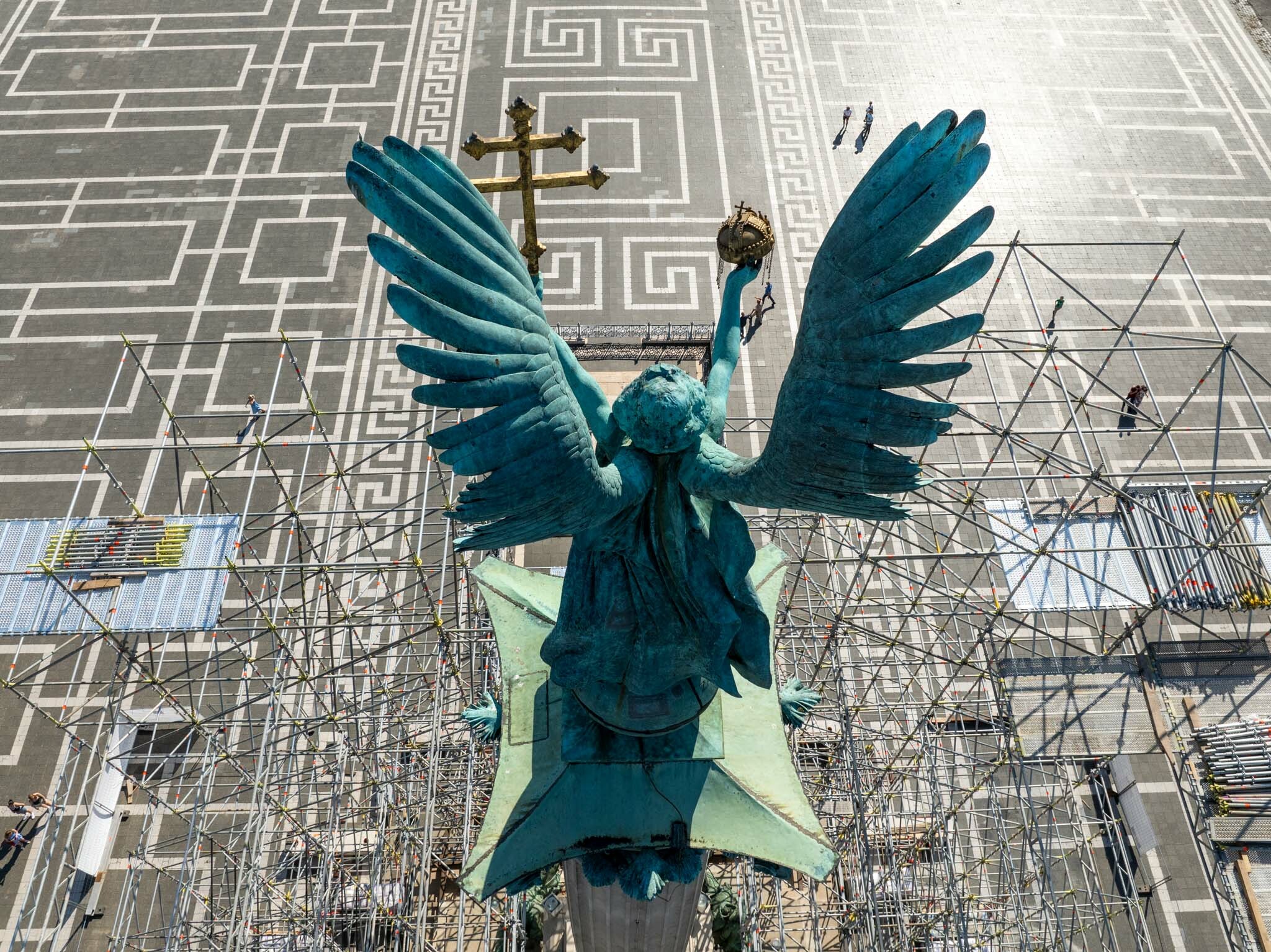 Amint Pruzsinszki Gusztáv, az állványzatot tervező mérnök (Pruzsinszki Terv Kft.) tájékoztatta lapunkat: egy olyan állvány építésére kaptak megbízást a Belvárosi Építő Kft. munkatársaival, amelyről Gábriel arkangyal szobra megközelíthető.