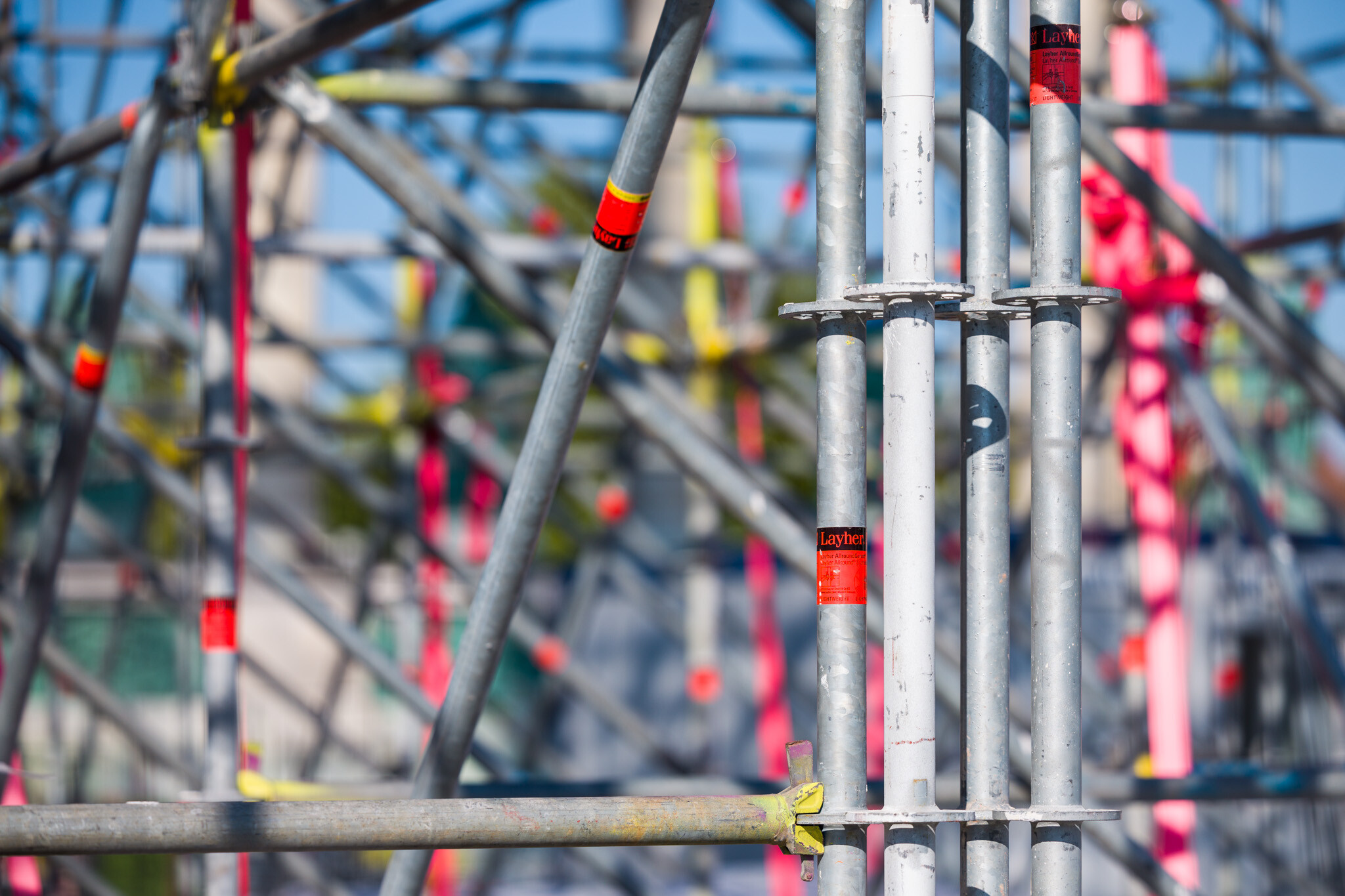 Az állványzat magassága közel 34 méter, alaprajzi befoglaló mérete pedig 22 x 27 méter. A feljutást egy GEDA felvonó biztosítja, ehhez készült egy menekülő útvonal is létrás feljáró elemekből.