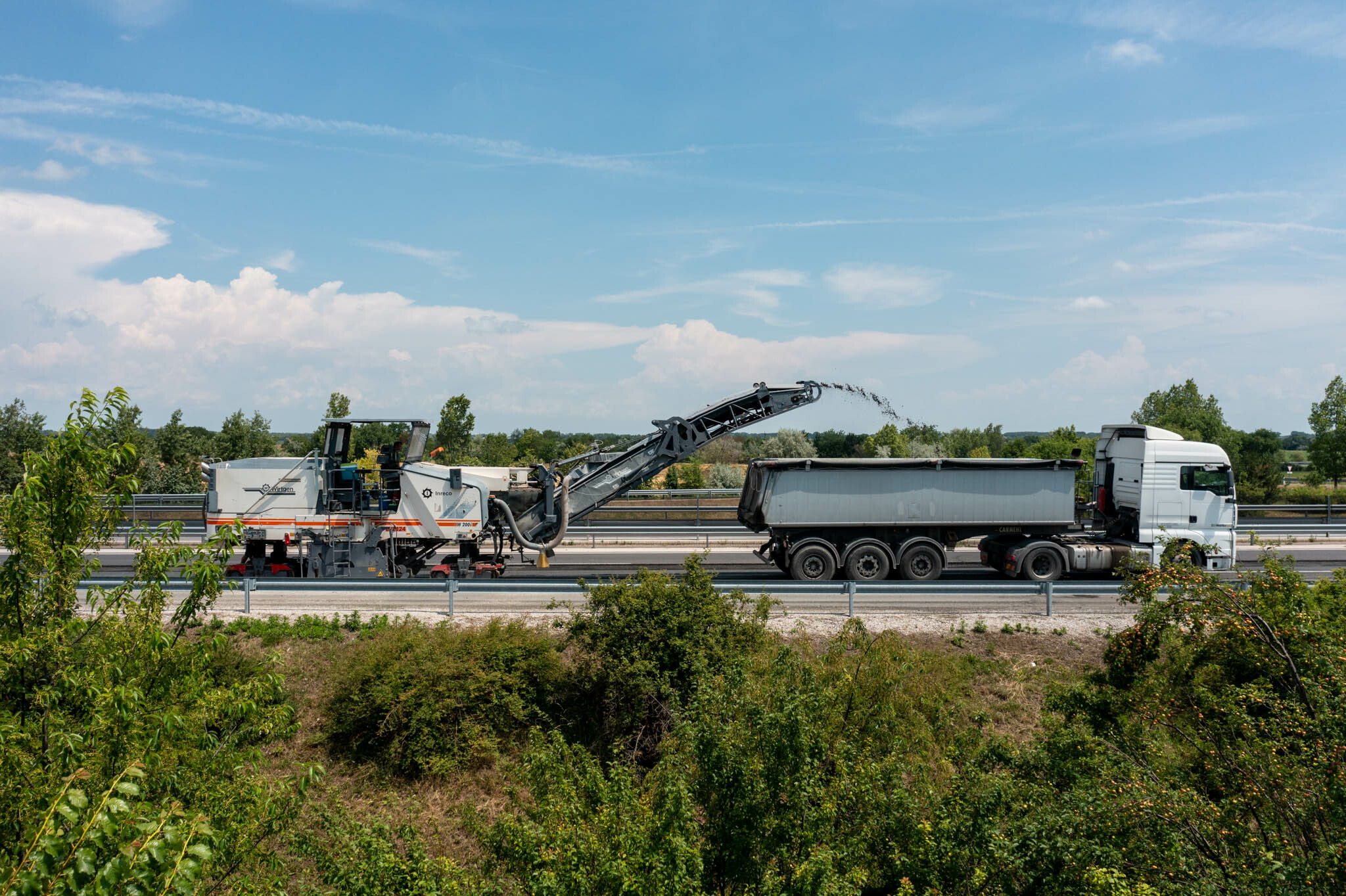 A másik kiemelkedő tulajdonsága az új üzemnek az újrahasznosításhoz kapcsolódik. „Az eszköz képes a mart aszfalt visszaadagolására a jelenlegi előírásoknak megfelelő mértékben, de műszakilag alkalmas akár 35-40 %-os recicling anyag felhasználására megfelelő előkészítés esetén.”