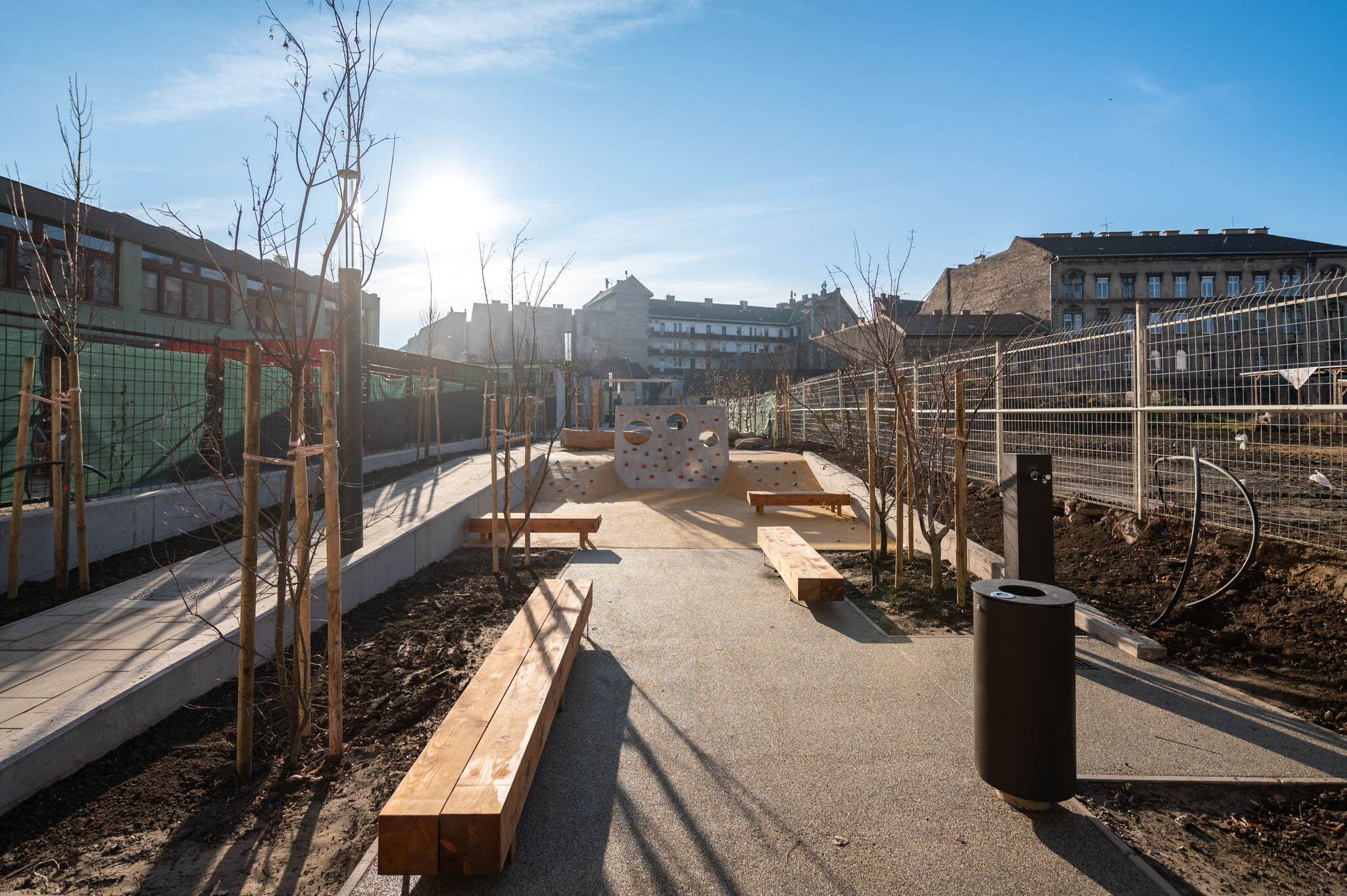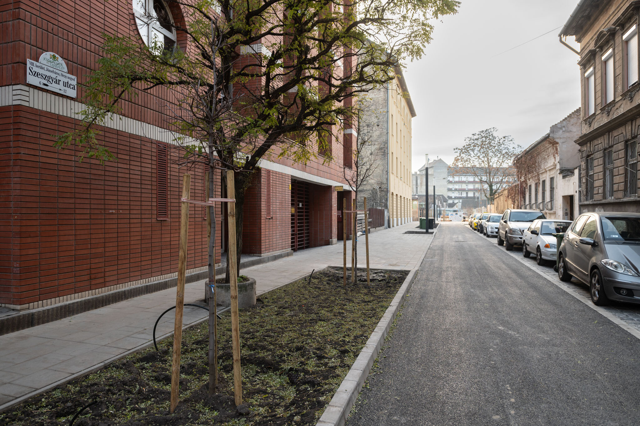 a projektben a Szeszgyár köz (Visi Imre utca és Kőris utca közötti közterület) korábban kihasználatlan területén egy zöld sétányt hoztak létre, ahol mászófal, trambulin és padok várják majd a városlakókat. A Szeszgyár utcában (Baross utca és Visi Imre utca közötti terület) pedig új fasort telepítettek, valamint megújult az útpálya és a járda is.