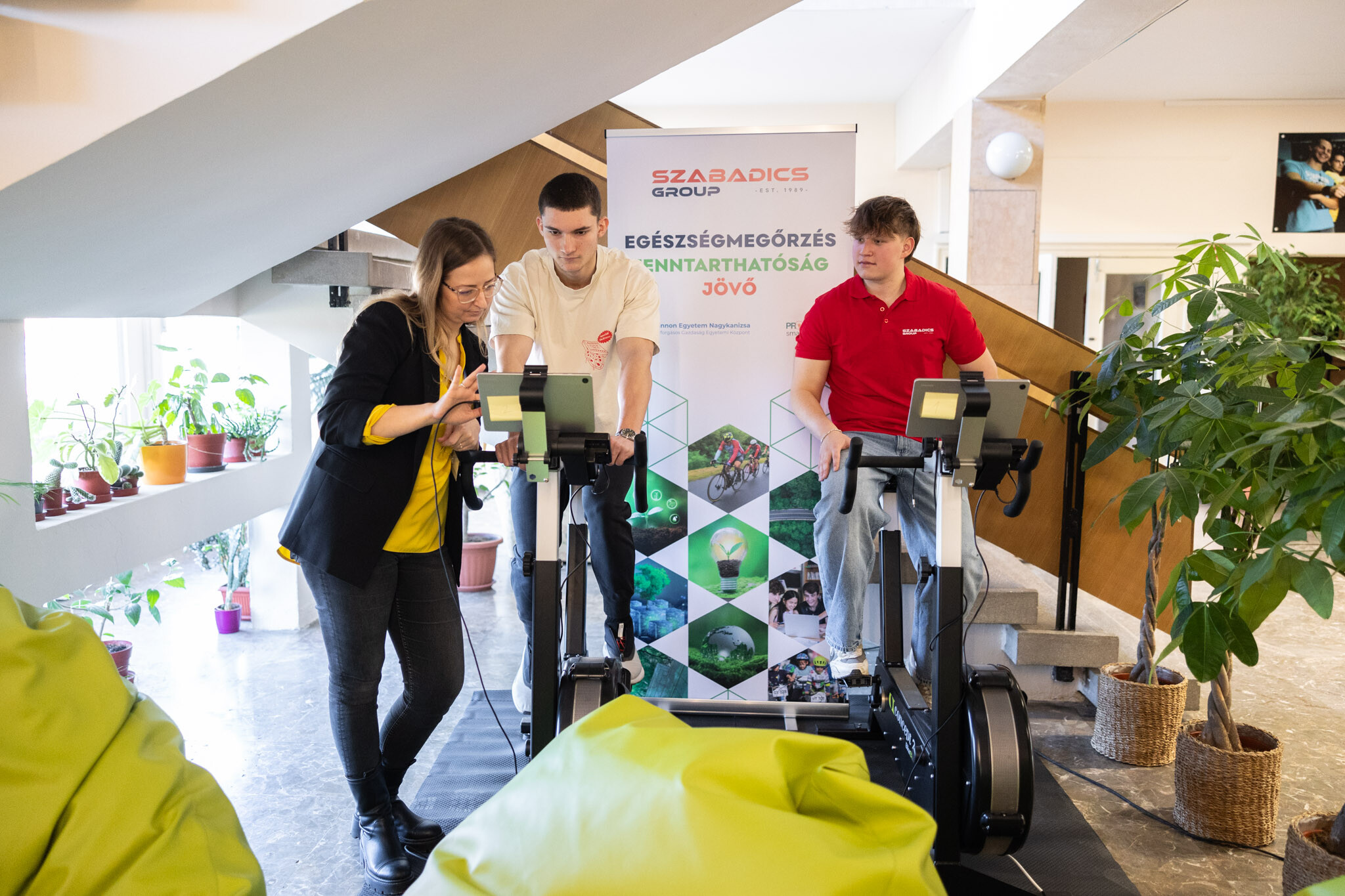 – mesélte az operatív igazgató. A kerékpárok azóta is a kampuszon állnak; az egyetem pedig fejlesztést is társított a biciklikhez: olyan alkalmazást hoztak létre, amelyek a megtett kalóriát energiává alakítja át és a fenntarthatóságot előtérbe helyezve megmutatja, mennyit kell tekerni például egy izzó felkapcsolásához.