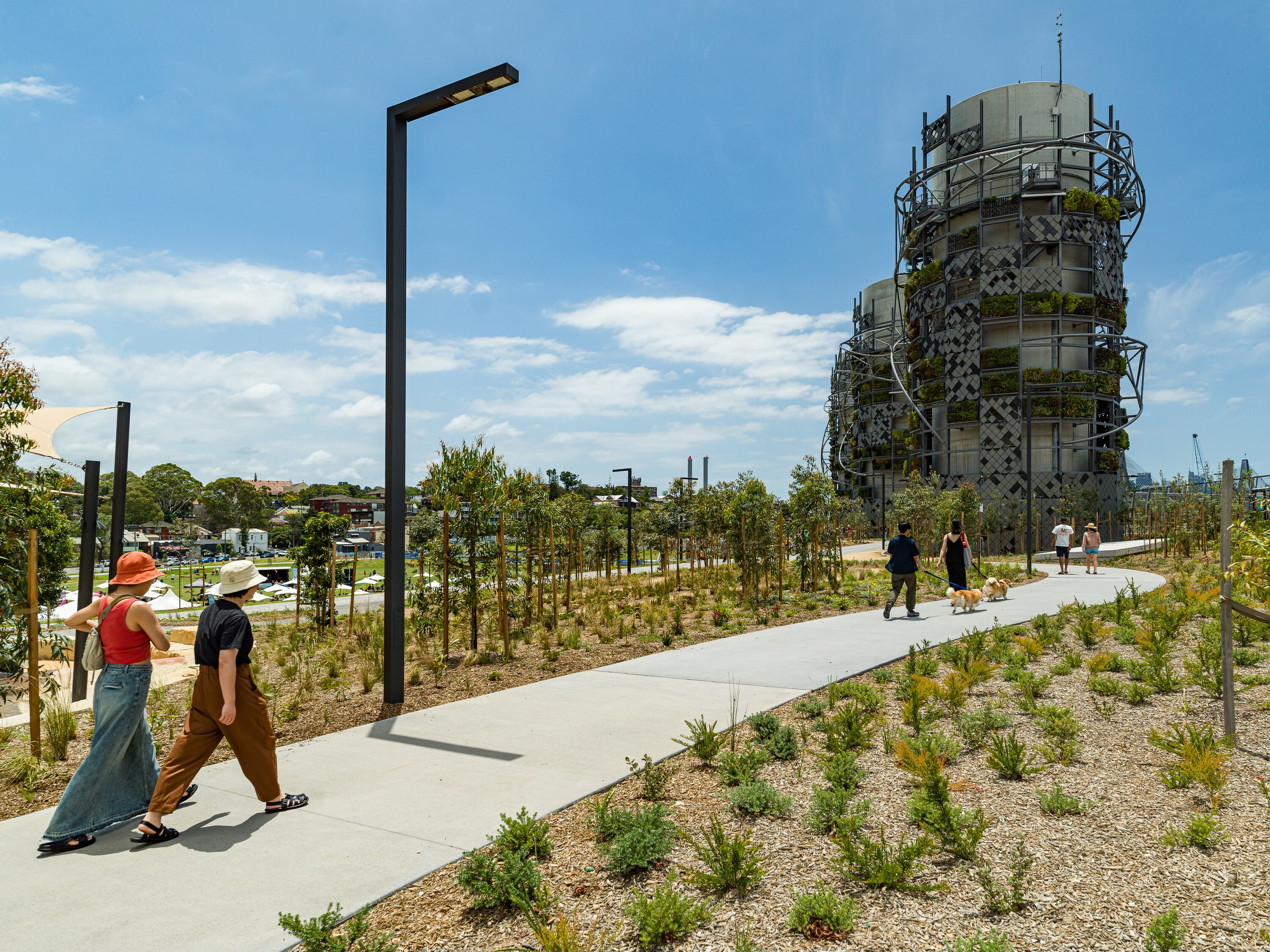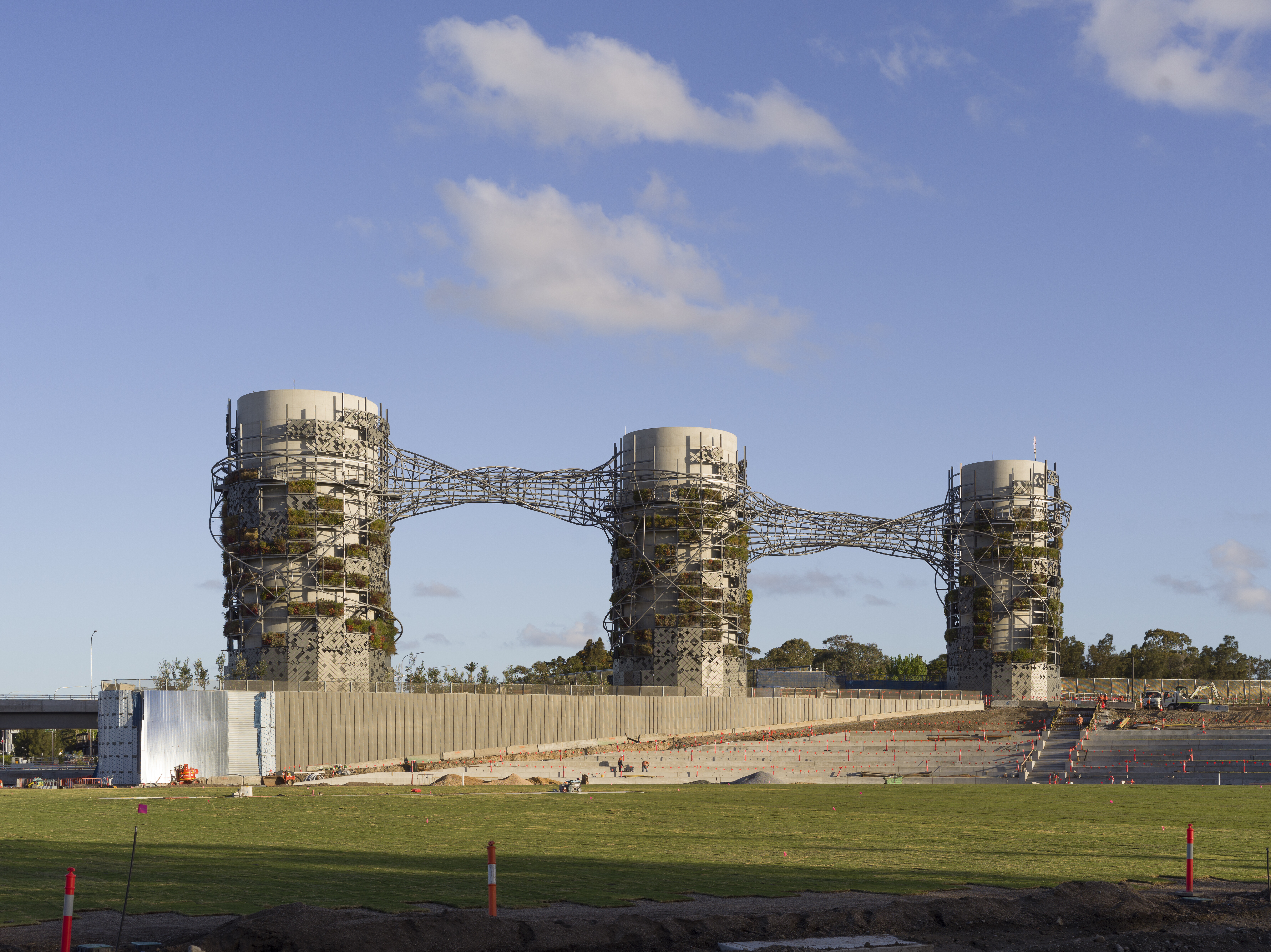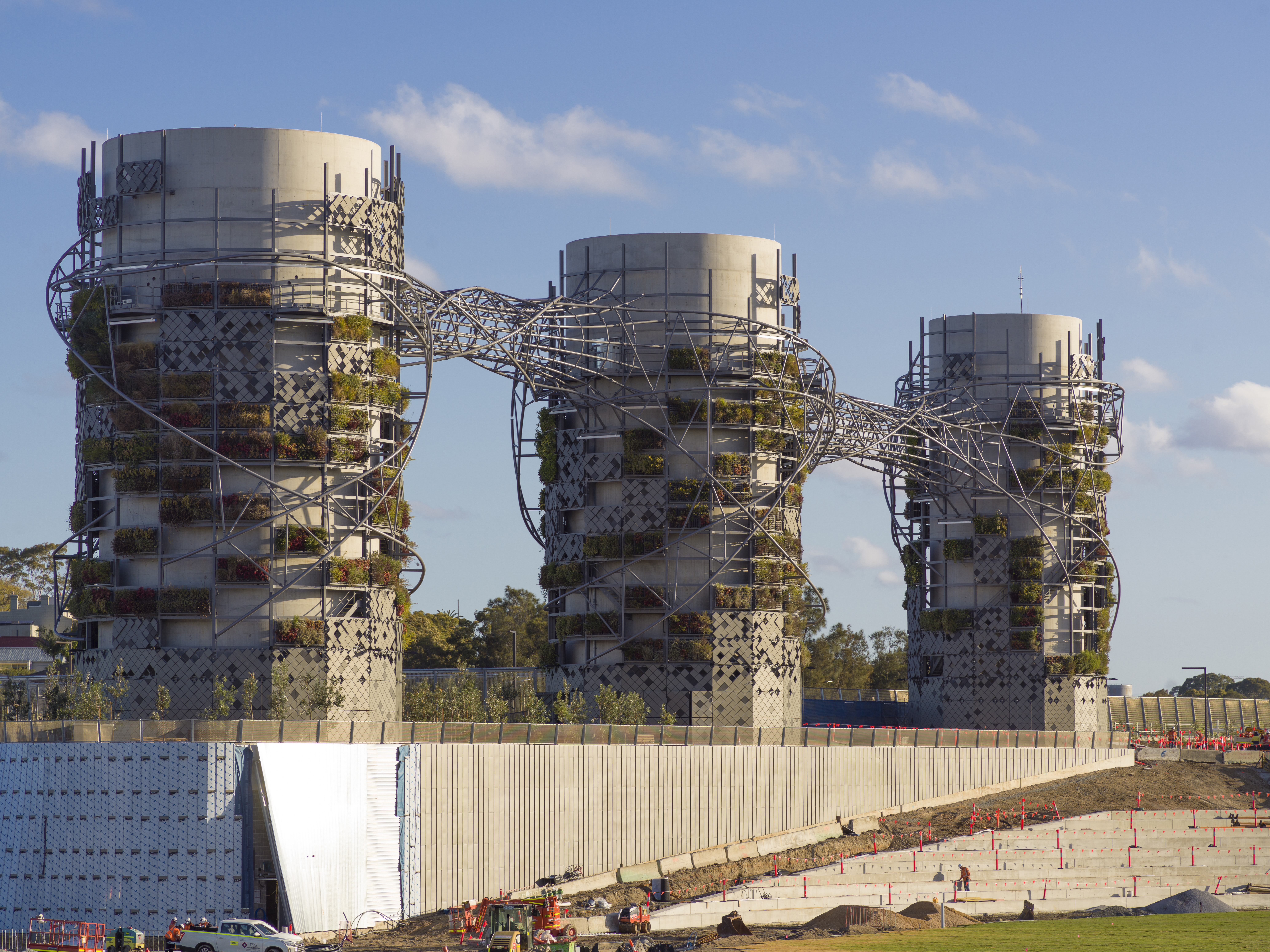 Arra kérték fel a Studio Chris Fox tervezőirodát, hogy álmodjanak meg egy olyan látványos acélszerkezetet, ami finomítja a durva vasbeton formákat és beolvasztja őket a környezetükbe. Mindebben pedig kiemelt szempont volt a fenntarthatóság: az anyagszükséglet minimalizálásával és a zöldfal elemek használatával is erősítették ezt. Az oszlopok tetejére mérőállomások kerültek, amelyek folyamatosan szondázzák a levegőminőséget, és szükség esetén beavatkoznak – akár forgalomkorlátozással. Így született meg egy a kéményeket hidakkal összekapcsoló, acélszerkezetű vázrendszer, amelyben csövekből képzett indaszerkezetek futnak végig. Ezek adják a fő látványvilágot.