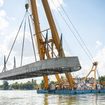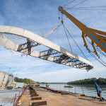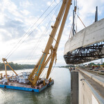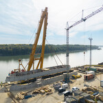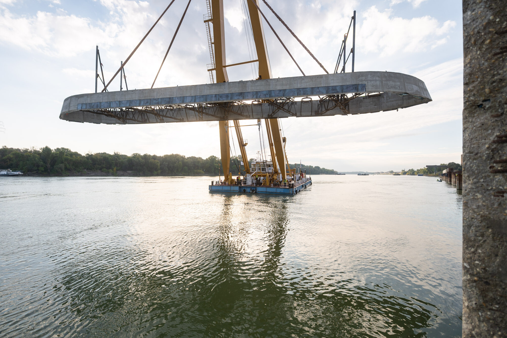 Kulcsfontosságú mozzanathoz érkezett a mohácsi Duna-híd építkezése: egyéves előkészítő munka után október 1-én beemelték a Duna medrébe a 3-as mederpillér első kéregelemét. A közel 30 kilométernyi útfejlesztést is magába foglaló projekt az Építési és Közlekedési Minisztérium beruházásában, a Duna Aszfalt Zrt. generálkivitelezésében valósul meg.