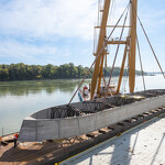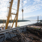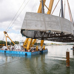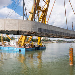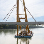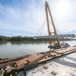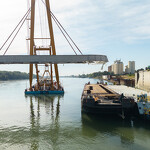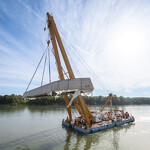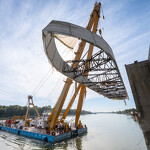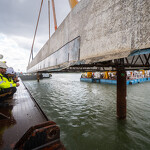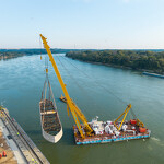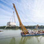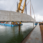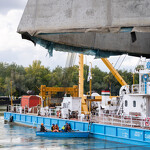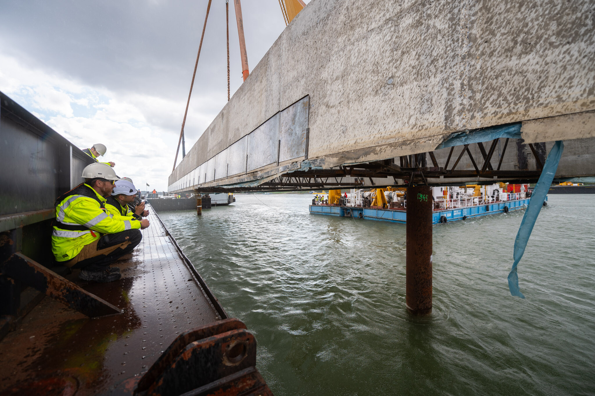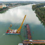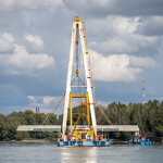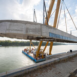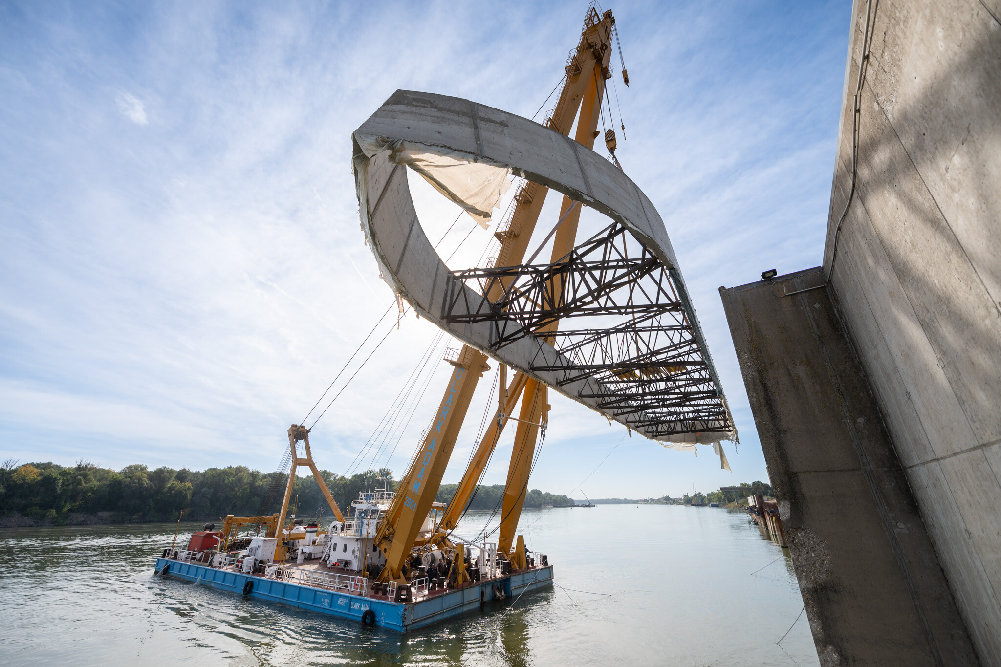 Október 1-én a Clark Ádám úszódaruval bárkára emelték a fent leírt módon előkészített A kéregelemet. „Majd a kedvező időjárási viszonyok miatt még ugyanezen napon elhelyeztük a Duna medrében a tervezett helyére a 155 tonna tömegű A elemet” – tette hozzá a projektvezető.