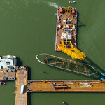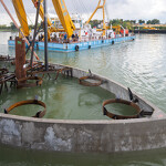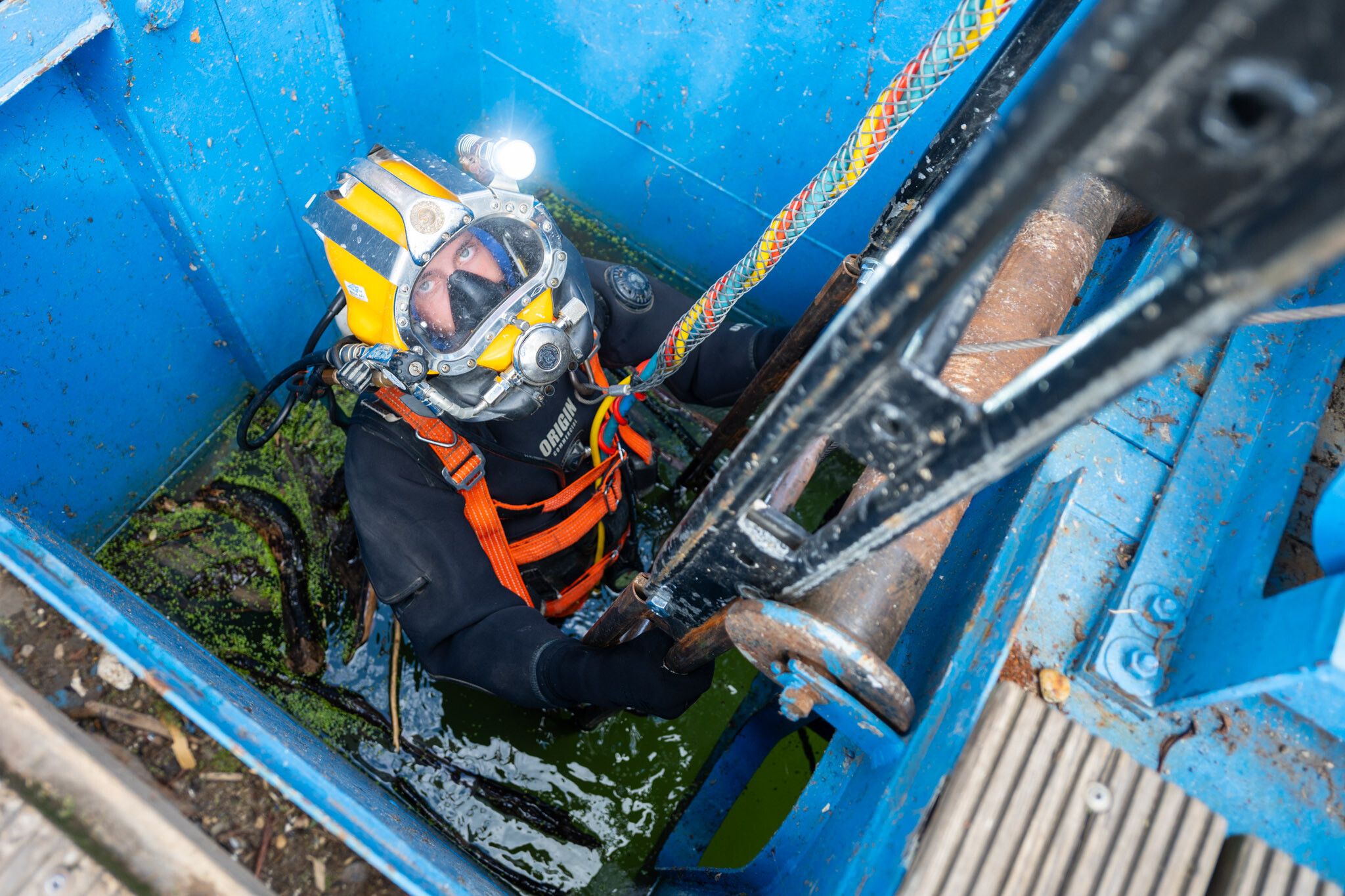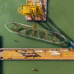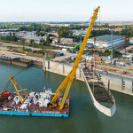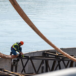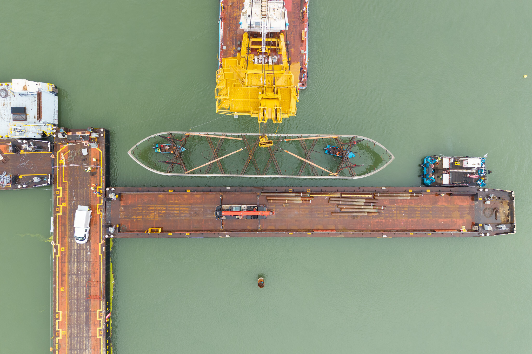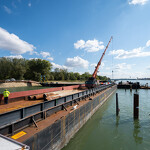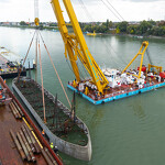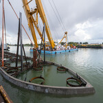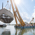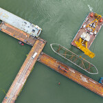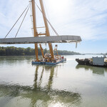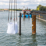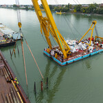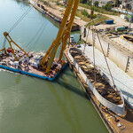 – tudatta lapunkkal Wunderlich István, projektvezető. „Ezután a búvárok a tervezett feltámaszkodási szinten visszavágták víz alatt a cölöpöket, és acélból készült merevített kupakot illesztettek a csőcölöpbe.”