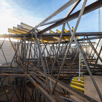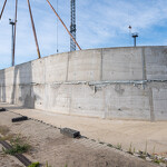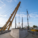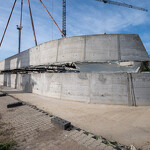 Ekkor került a helyére ugyanis a magassági finom beállítást lehetővé tevő 4 darab, egyenként 100 tonnás hidraulika munkahenger: ezek segítségével a mederbe lehelyezett A kéregelemet milliméter pontosan szintre lehet állítani.