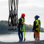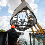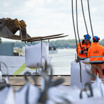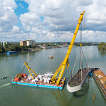 „A kéregelem elhelyezése elsőre sikeres volt, ezt a lehelyezést követően búvárokkal is ellenőriztük. A víz fölé nyúló árbócokon elhelyezett prizmák bemérésével a beemelés sikerességét geodéziailag is megerősítettük.”