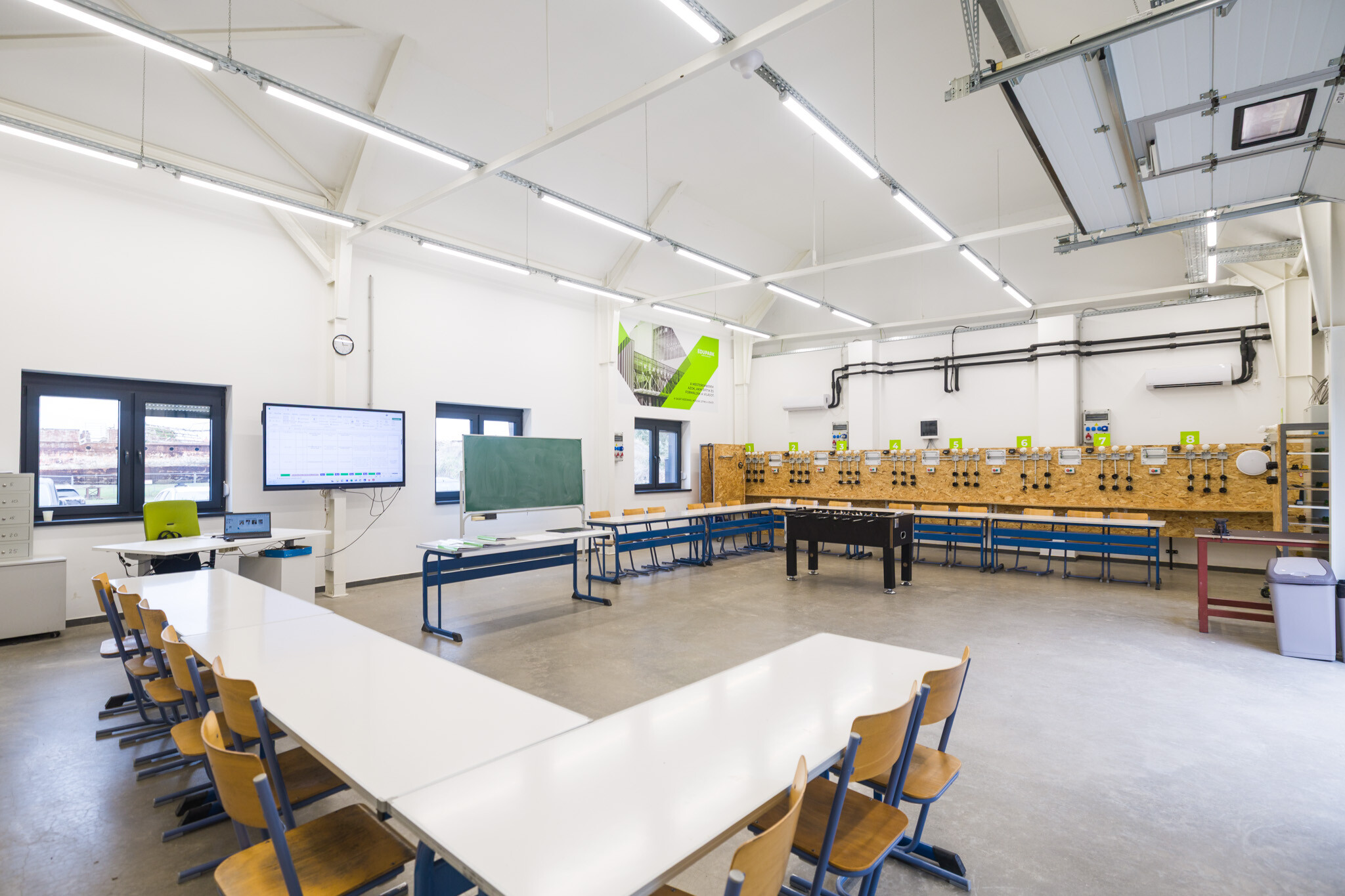 A fenti filozófiát komoly infrastruktúra egészíti ki: a szegedi központban 1300 négyzetméternyi terület áll rendelkezésre, jól felszerelt oktatási terekkel. „Van egy úgynevezett belépő ágazati műhelyünk, ahol a diákok gyakorlatban sajátítják el a szakma alapjait: az eszközhasználatot, anyaghasználatot és manuális műveleteket. Emellett van két modern épületgépészeti tanműhelyünk is, valamint egy hegesztő-lakatos és egy villanyszerelő tanműhelyünk. Ezt egészíti ki négy oktatóterem, továbbá közösségi terek.”