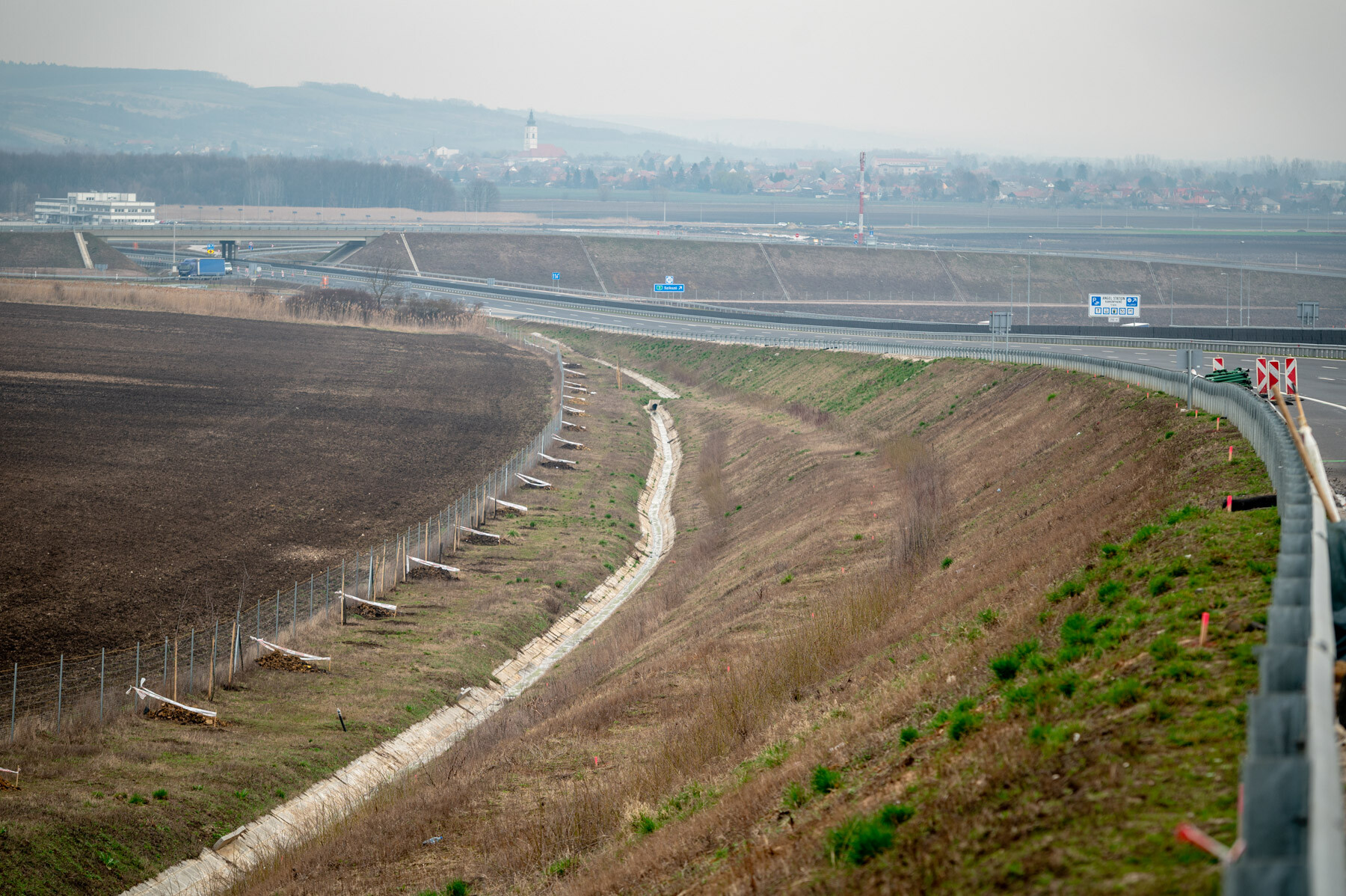 A kivitelező a korábban elvégzett, független szakértői vélemények alapján megkezdte a probléma elhárítását célzó javaslatok kidolgozását. Az elsődleges szakértői megállapítások után júniusig az úttöltés mentén megépítettek egy mélyszivárgót, ami a terepszint alatt a domb felől érkező vizeket, egy szivárgó fal közvetítésével egy szivárgó csőbe vezeti, összegyűjti, és elvezeti. Ezt hét méteres mélységig építették meg, mintegy 870 méter hosszan.
