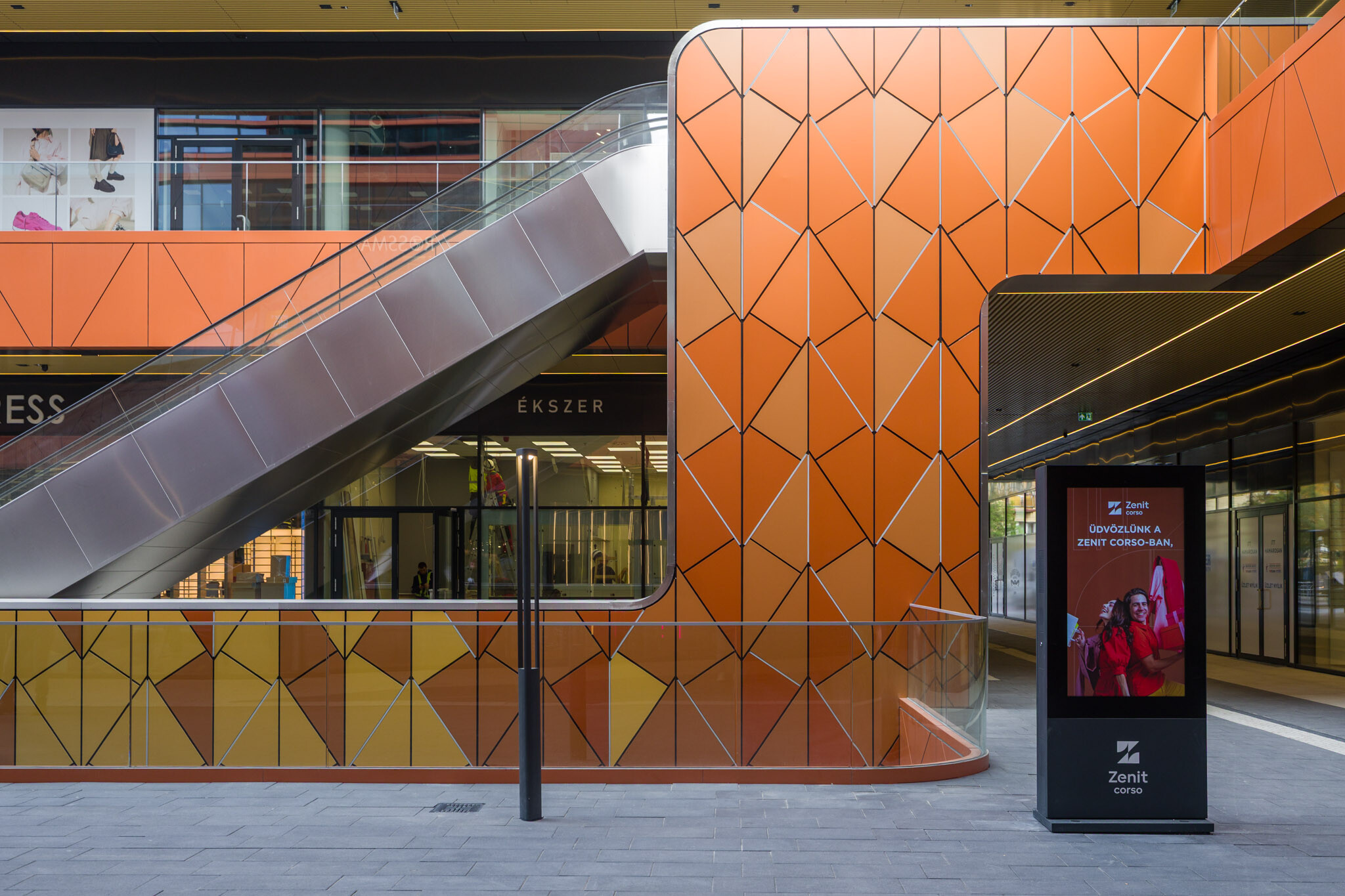 A Zenit Corso három szintű épület, további két szint mélygarázzsal kiegészítve. Herczeg András szavaiból kiderült, az alsó szinten Magyarország legnagyobb Aldi áruházát alakították ki, több mint 3000 négyzetméteren. Az épületben emellett bankok, kávézók és számos ruházati bolt kapott helyet. Elmondása szerint a bérlendő helyiségek 90 százaléka már elkelt. Külön kiemelte a Zenit Corso hátsó területén kiépített vízijátékot, amely exkluzívvá teszi a külső teret.