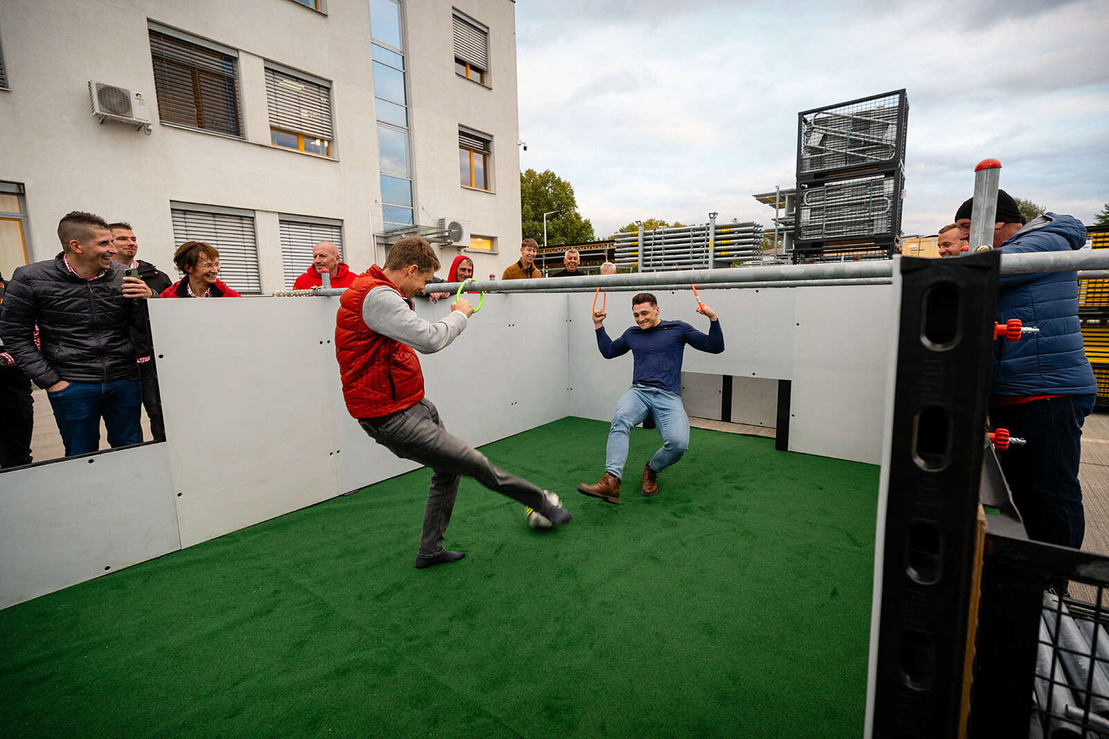 A rendezvény legemlékezetesebb pillanatai közé tartozott a DUO szerelési verseny, amelyre kétfős csapatok jelentkezhettek. Nagy érdeklődés övezte a kiterjesztett valóság (XR) bemutatót is, amelyet Szendrei Orsolya, a tervezési osztály vezetője mutatott be interaktív formában. A PERI XR-megoldásai lehetővé teszik, hogy a tervezett szerkezetek és rendszerek már a kivitelezés előtt valósághűen, digitálisan bejárhatók és ellenőrizhetők legyenek. Hatalmas sikerrel zajlott a DUO élőcsocsó körverseny is – ahol a vendégek voltak a játékosok, a pálya pedig a DUO elemekből készült felnagyított installáció.