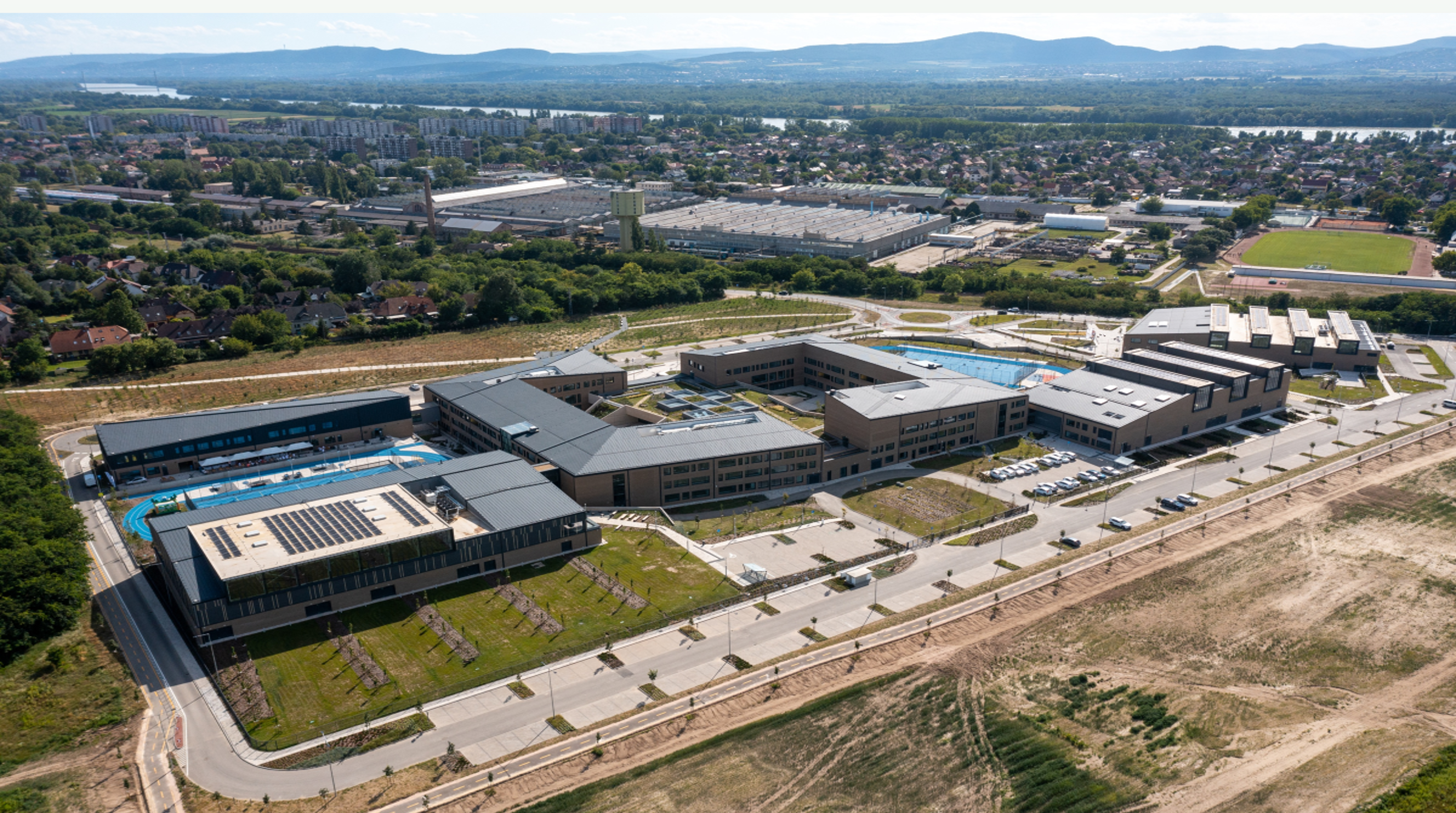 A növekvő város és környező agglomeráció oktatási és sportolási igényei indokolják ezt a szép együttest, a diáknegyedet. A zöldmezős mintegy 12,5 hektár nagyságú telken elhelyezkedő összetett épületegyüttes fő részei: a IV. Béla Gimnázium, VSZC Lányi Ferenc Technikum és Szakképző Iskola, a gimnáziumi és technikumi szárnyakhoz kapcsolódó egy-egy tornacsarnok, a konyha és étterem és a sportuszoda épülete. Elkészült a kapcsolódó közművek közlekedési és infrastrukturális létesítmények parkosítás és fásítás. Ezzel az épületegyüttessel a város oktatási kapacitásának bővítésekor olyan környezetet jött létre, amely mintaszerűen kapcsolja össze az iskolai és a közösségi funkciókat. A két fő szárny – a gimnázium és a technikum – világosan elkülönülő, mégis egységes tömegként jelenik meg. A sportcsarnokok és az uszoda esetében a multifunkcionalitás volt a vezérelv. Az oktatási intézményektől függetleníthető, önálló bejáratokkal és parkolókkal rendelkező sportlétesítmények az iskolák mindennapi használatán túl a város közösségi életéhez is szervesen kapcsolódnak. Nagyszerű körülmények között tanulhatnak a diákok.