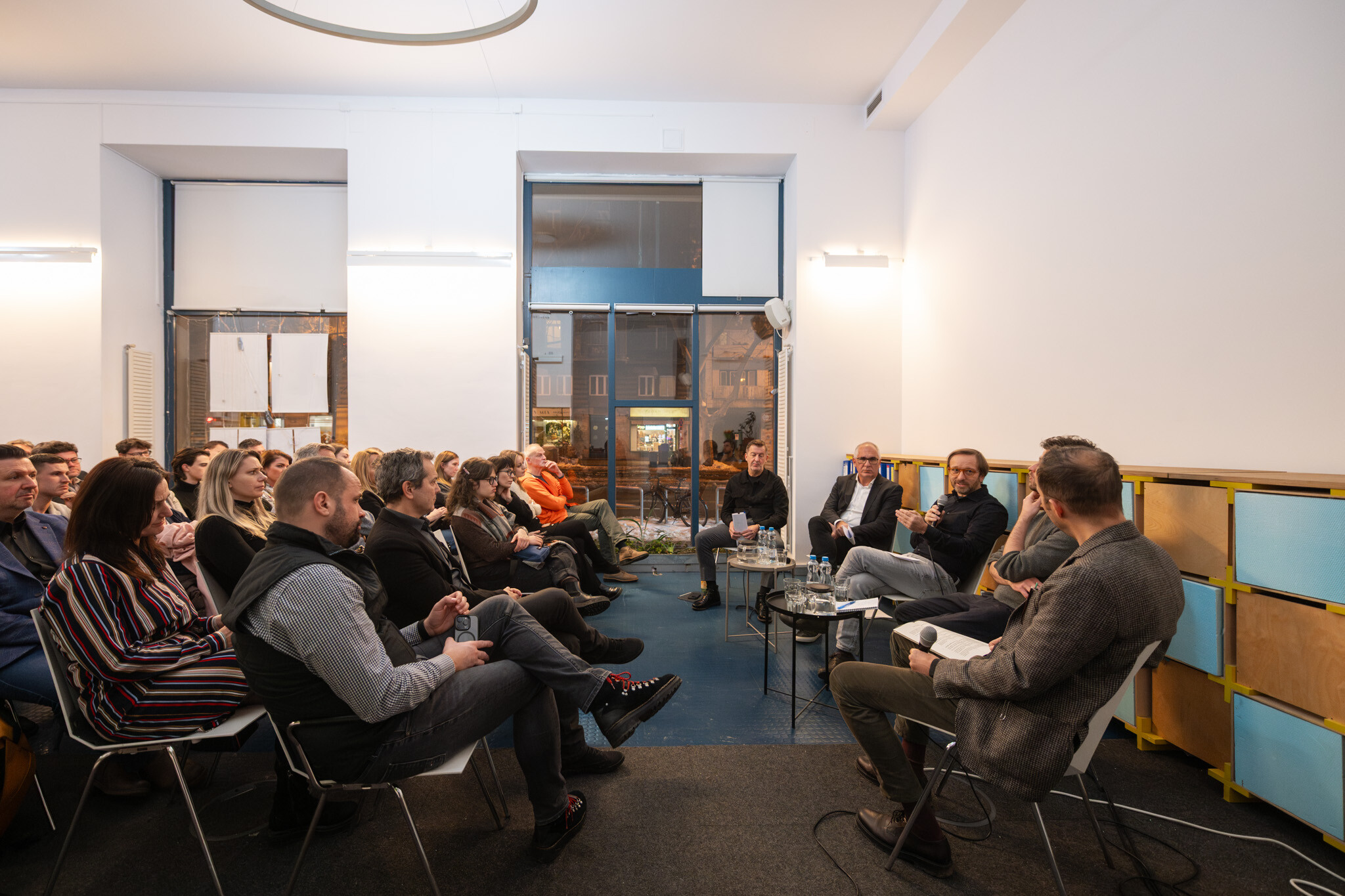 A lakhatási válság unalomig ismételt statisztikái helyett a piaci szereplők cselekvési lehetőségeire fókuszált a KÉK 11. évadának nyitóeseménye. A panelbeszélgetésben Scheer Sándor, a Market Építő Zrt. alapító-vezérigazgatója és Wolf András, a vállalat műszaki vezérigazgató-helyettese ütköztette álláspontját Fernezelyi Gergellyel, a FBIS vezető tervezőjével, valamint Jelinek Csaba szociológussal, a Periféria Központ társalapítójával. A beszélgetést Szemerey Samu moderálta.