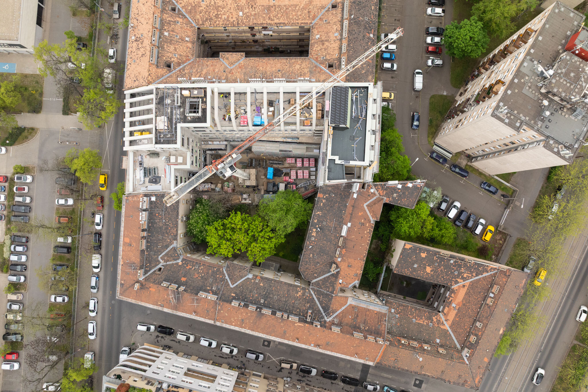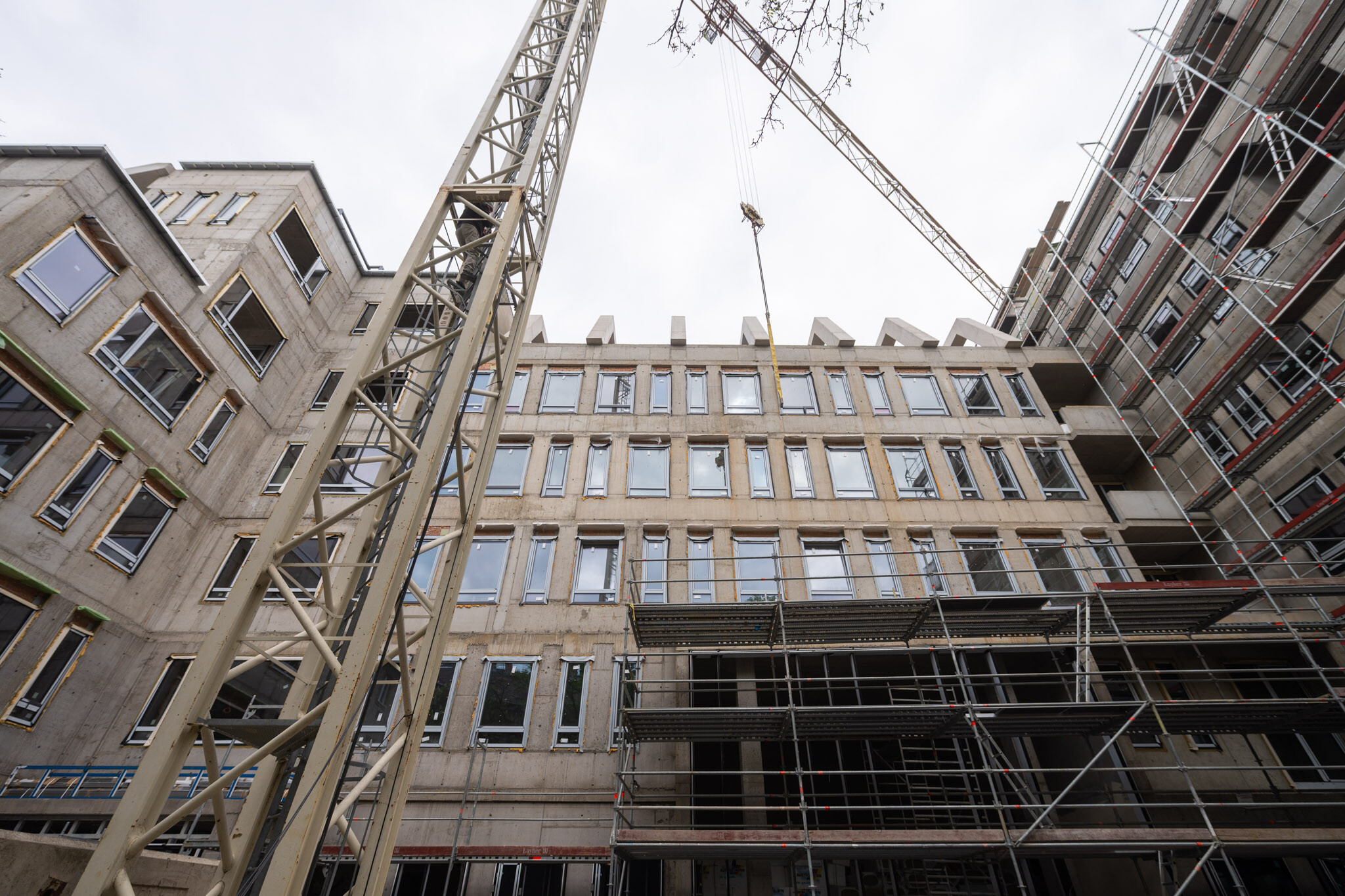 A kivitelezés egyik legnagyobb kihívását a sűrűn beépített belvárosi környezet jelenti. Az építési terület mindössze egy irányból közelíthető meg, az organizációs tér rendkívül szűk, így a helyszíni anyagtárolás gyakorlatilag nem megoldható. Az építési folyamat ennek megfelelően szinte „just-in-time” rendszerben zajlik: