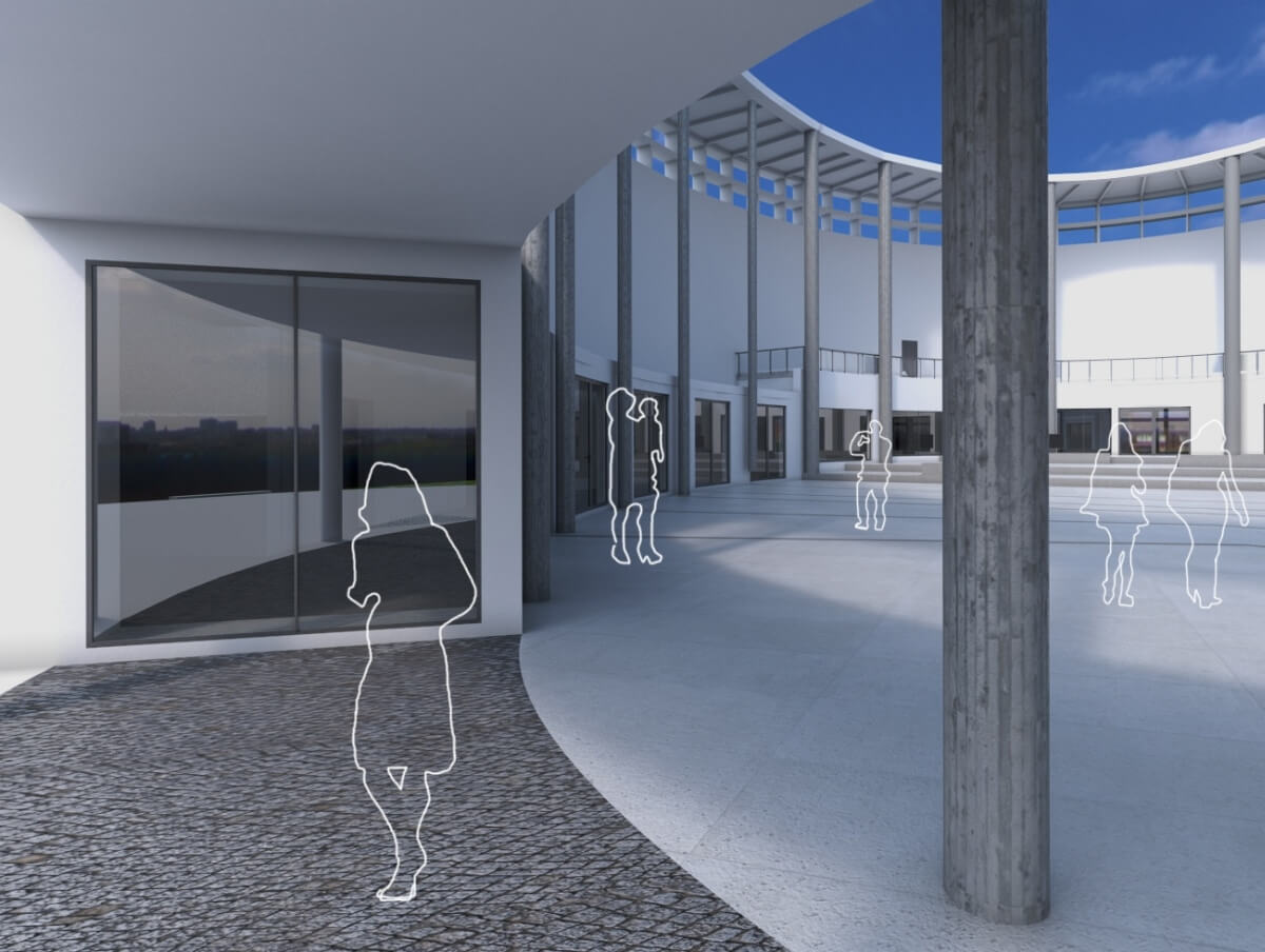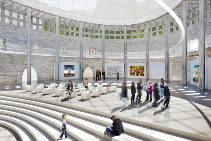 A kiállítótér leendő helyszínét monumentális méretű templomnak tervezték, teljesen körbejárható belső terét a kupola alatt körbefutó ablaksorral kívánták megvilágítani, hasonlóan a jeruzsálemi bazilika kiképzéséhez. A szakrális térbe 20 oszlop került, és minden oszlopközbe egy-egy kápolna is épült volna.